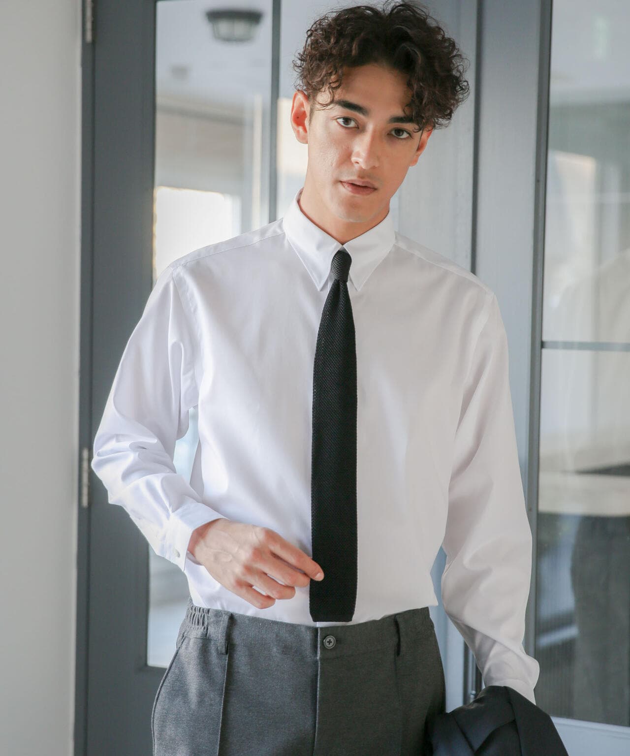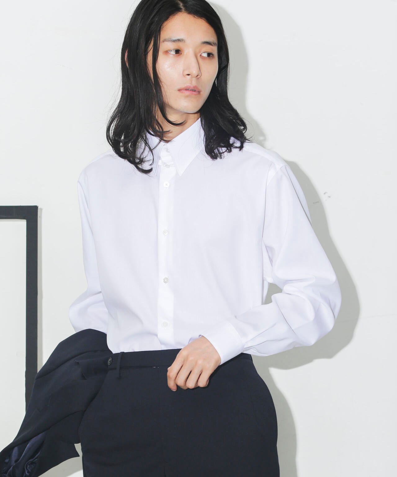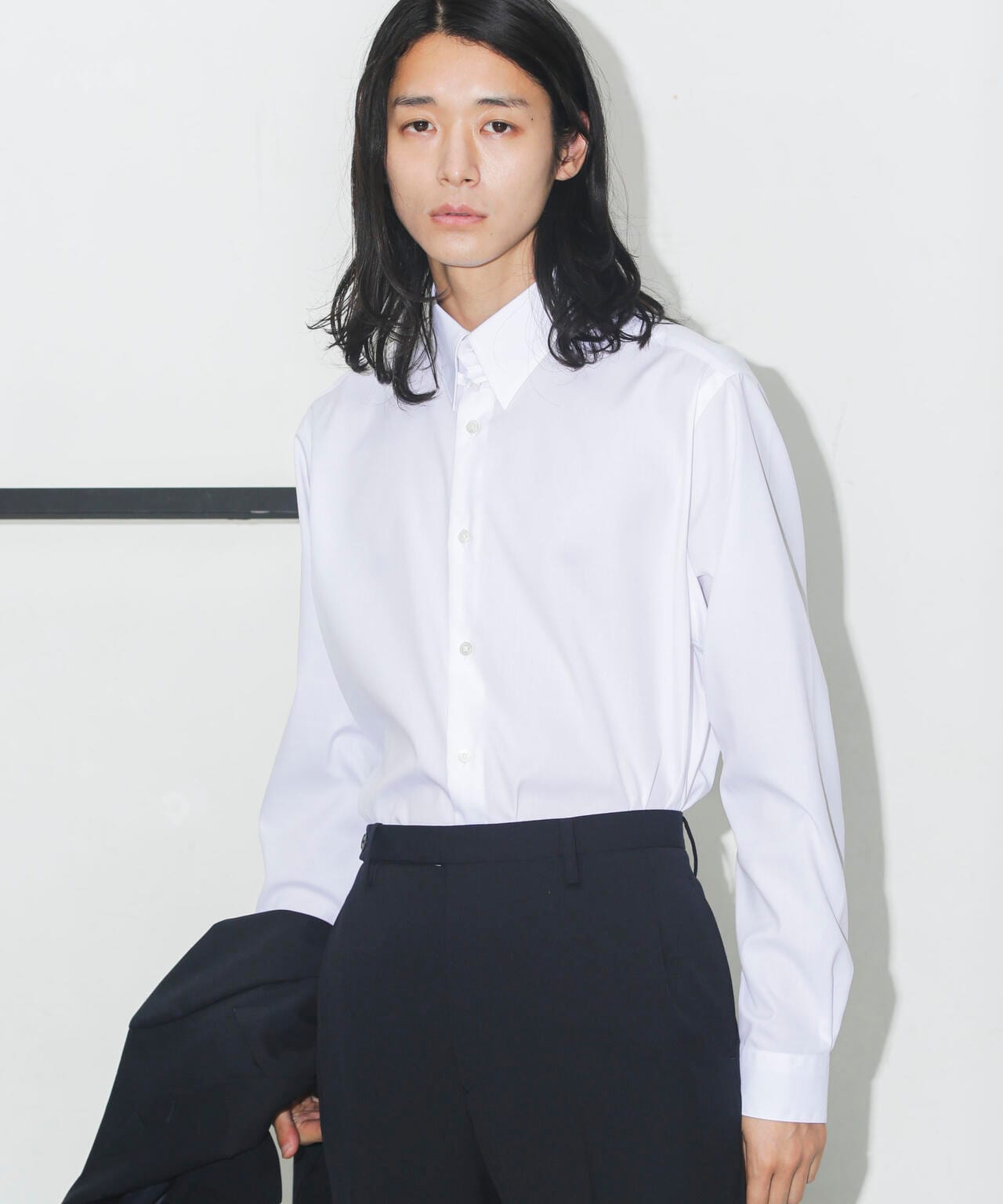 ・「The Taylor」のジャケットやニットにもマッチするタブカラーシャツ