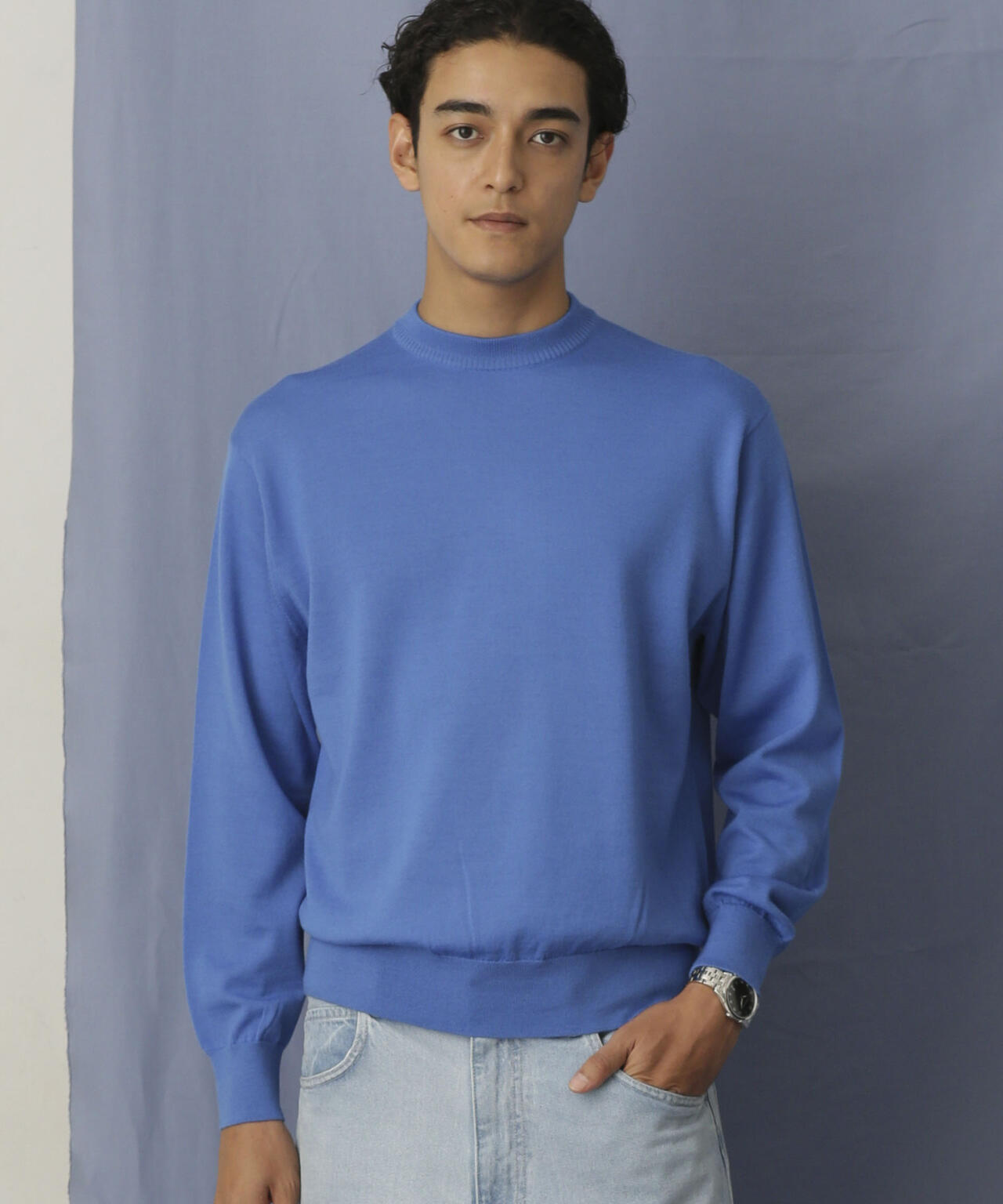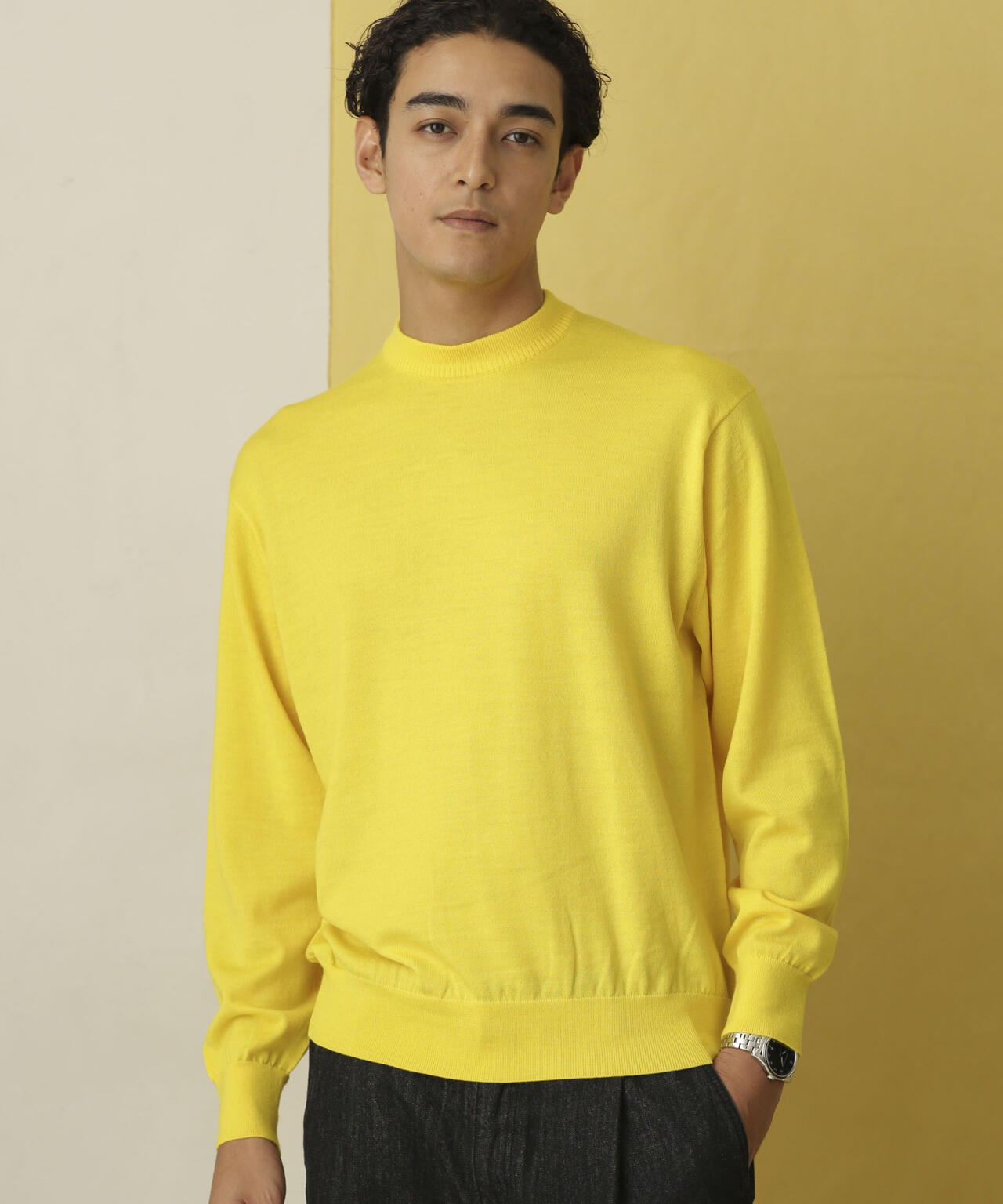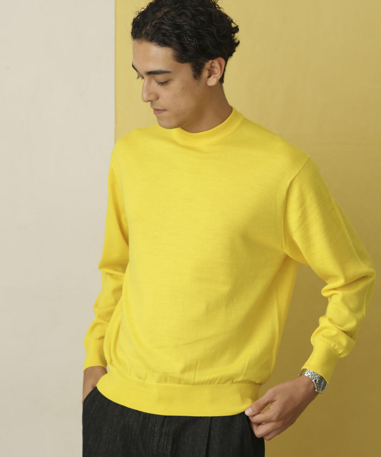 程よくリラックスしたサイズ感、丸みあるシルエットを作り、アイコニックとして背面に繊細なタック編みでヨークを表現。 襟リブもアレンジしたデザインでアクセントを加え、シンプルなビジュアルの中に細かなこだわりを感じられる1枚です。