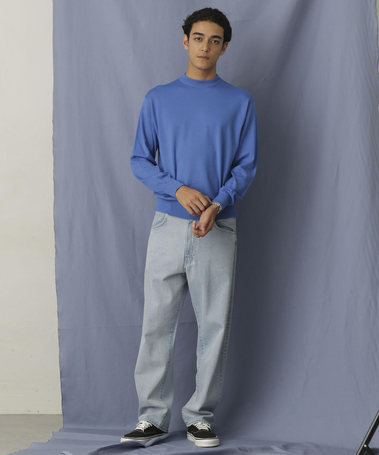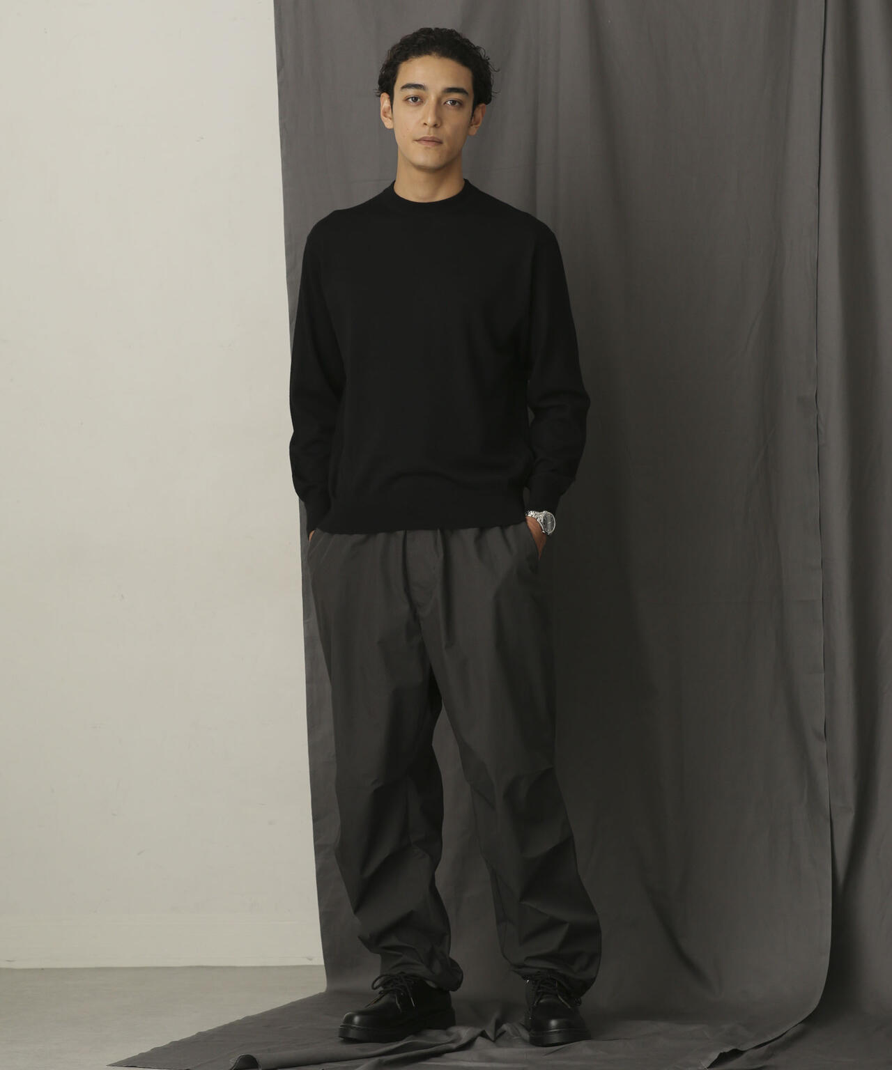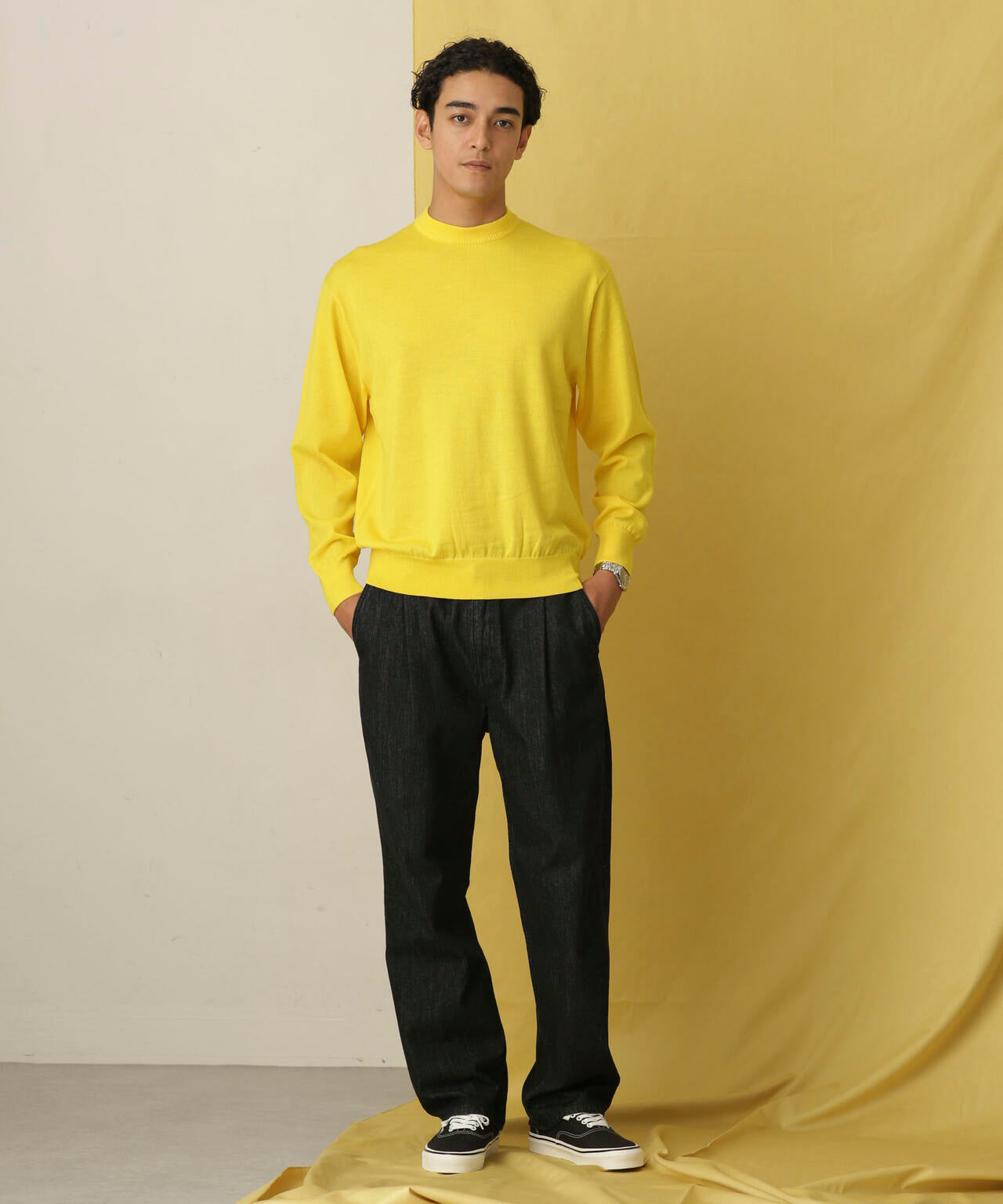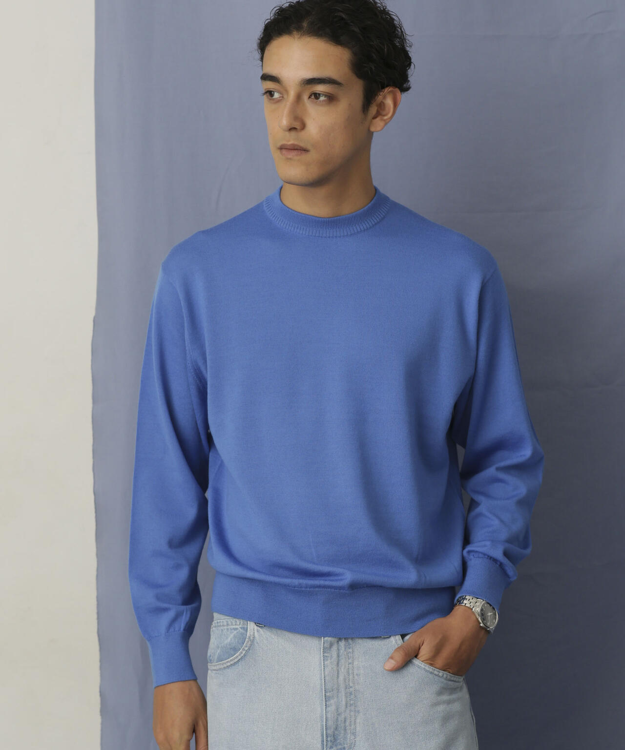 程よくリラックスしたサイズ感、丸みあるシルエットを作り、アイコニックとして背面に繊細なタック編みでヨークを表現。 襟リブもアレンジしたデザインでアクセントを加え、シンプルなビジュアルの中に細かなこだわりを感じられる1枚です。