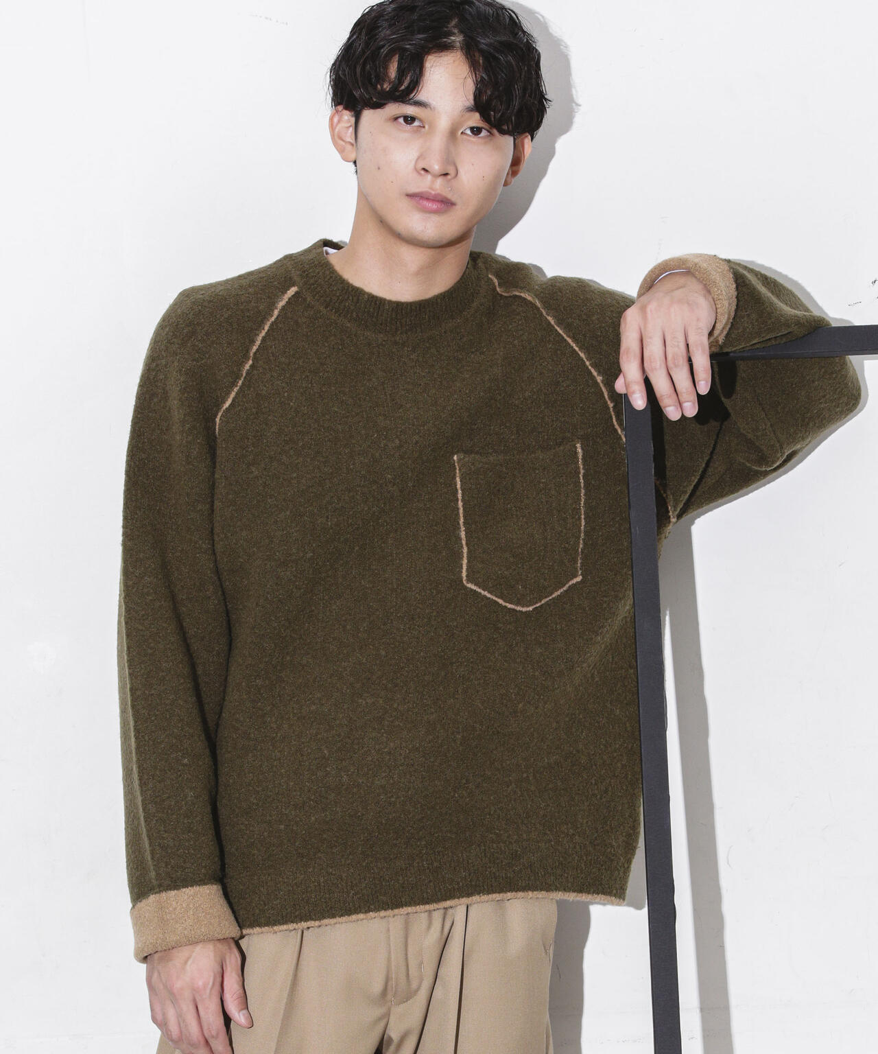 ブークレラグランスリーブクルーネックニット