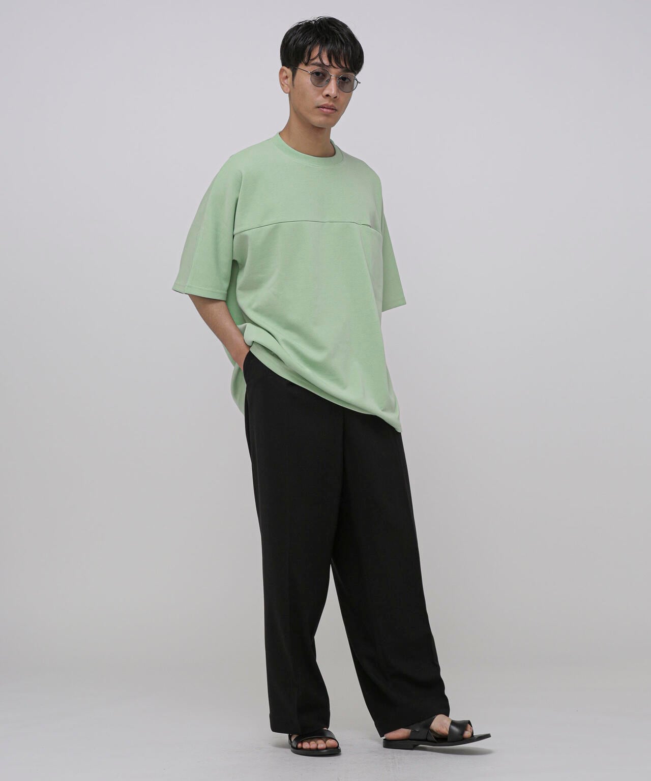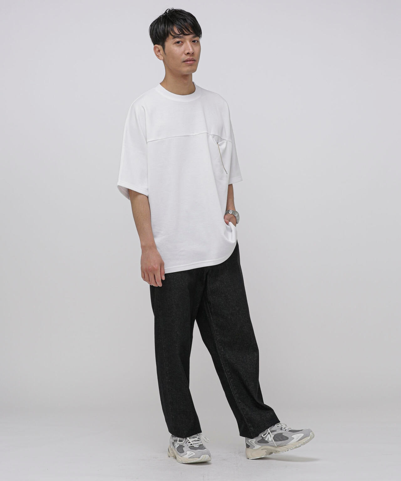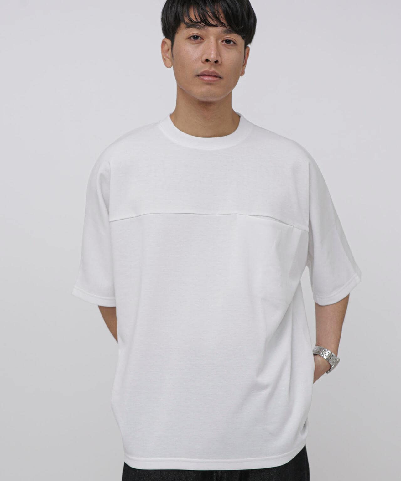ハリのあるポンチ素材を使用したドルマンスリーブTシャツ。シンプルなデザインながら、ドルマンスリーブとビッグシルエットで個性を演出できるのが魅力的。大人のコーディネートに程よく個性を加えられる一枚です。
