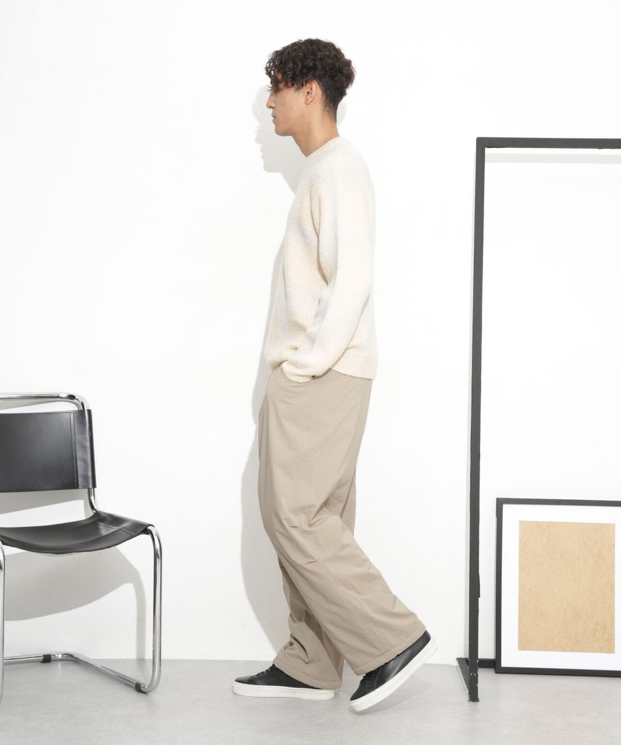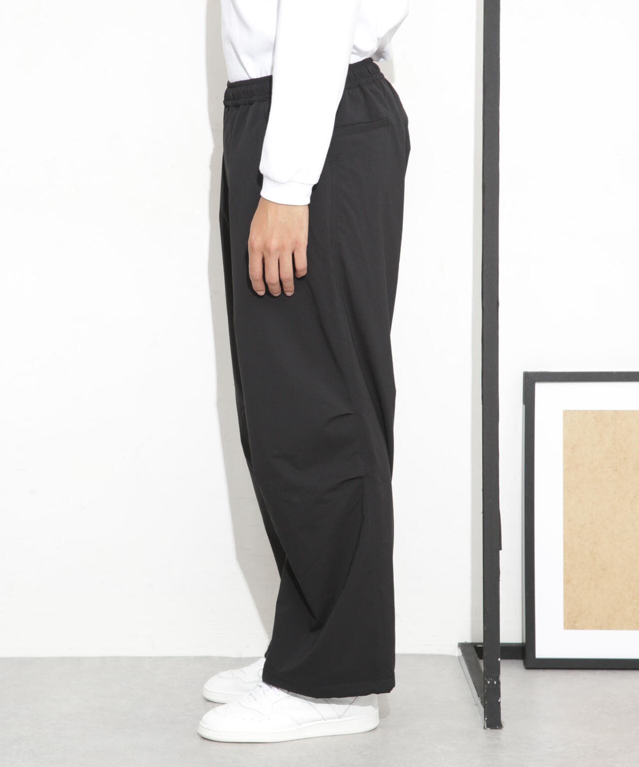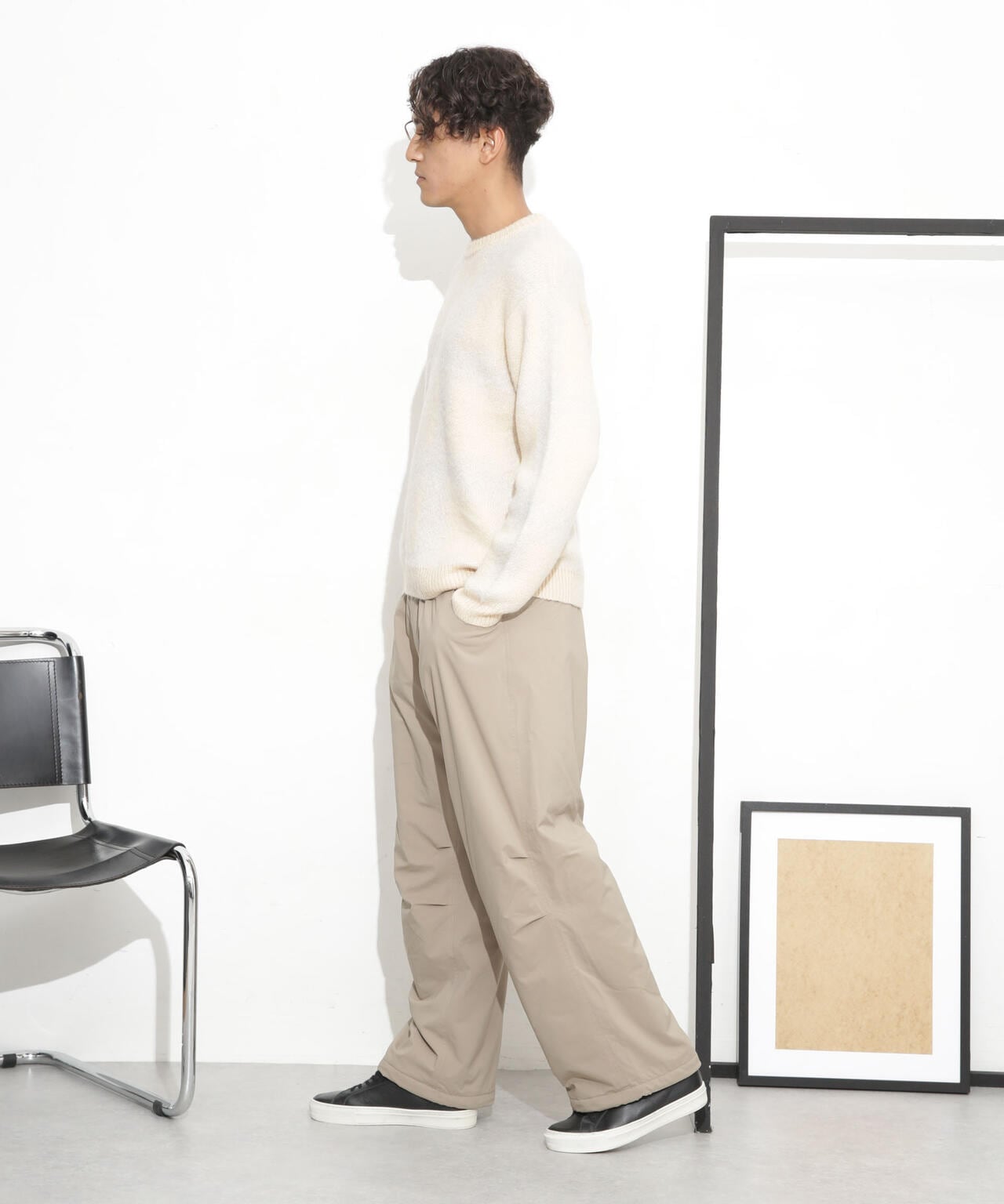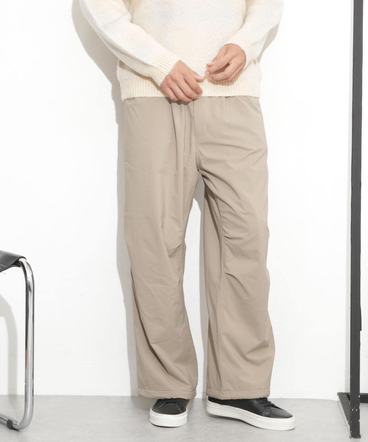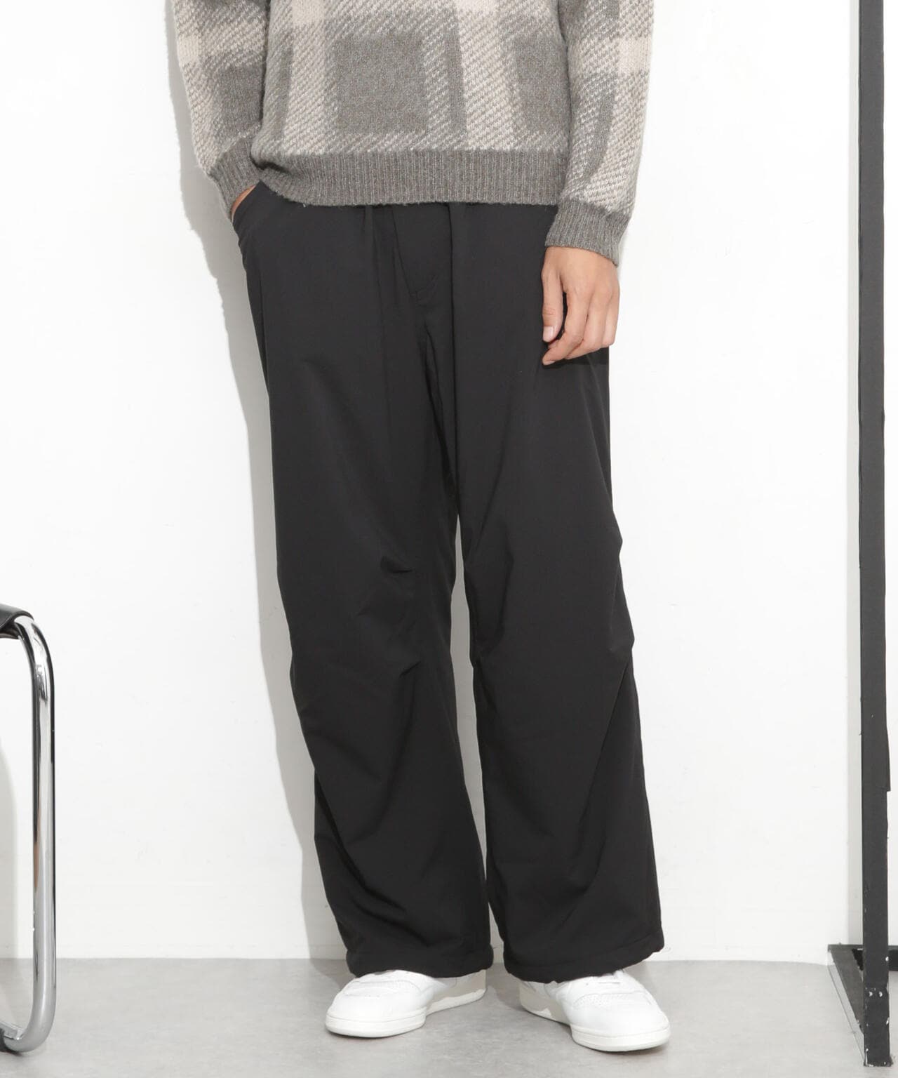 耐久撥水性のある生地と保温性・通気性を兼ね備えたOcta(R)CPCPを使用したワイドパンツ。
