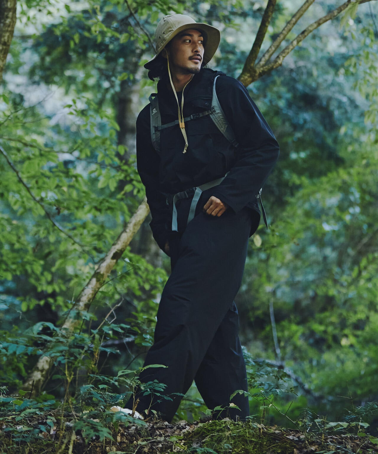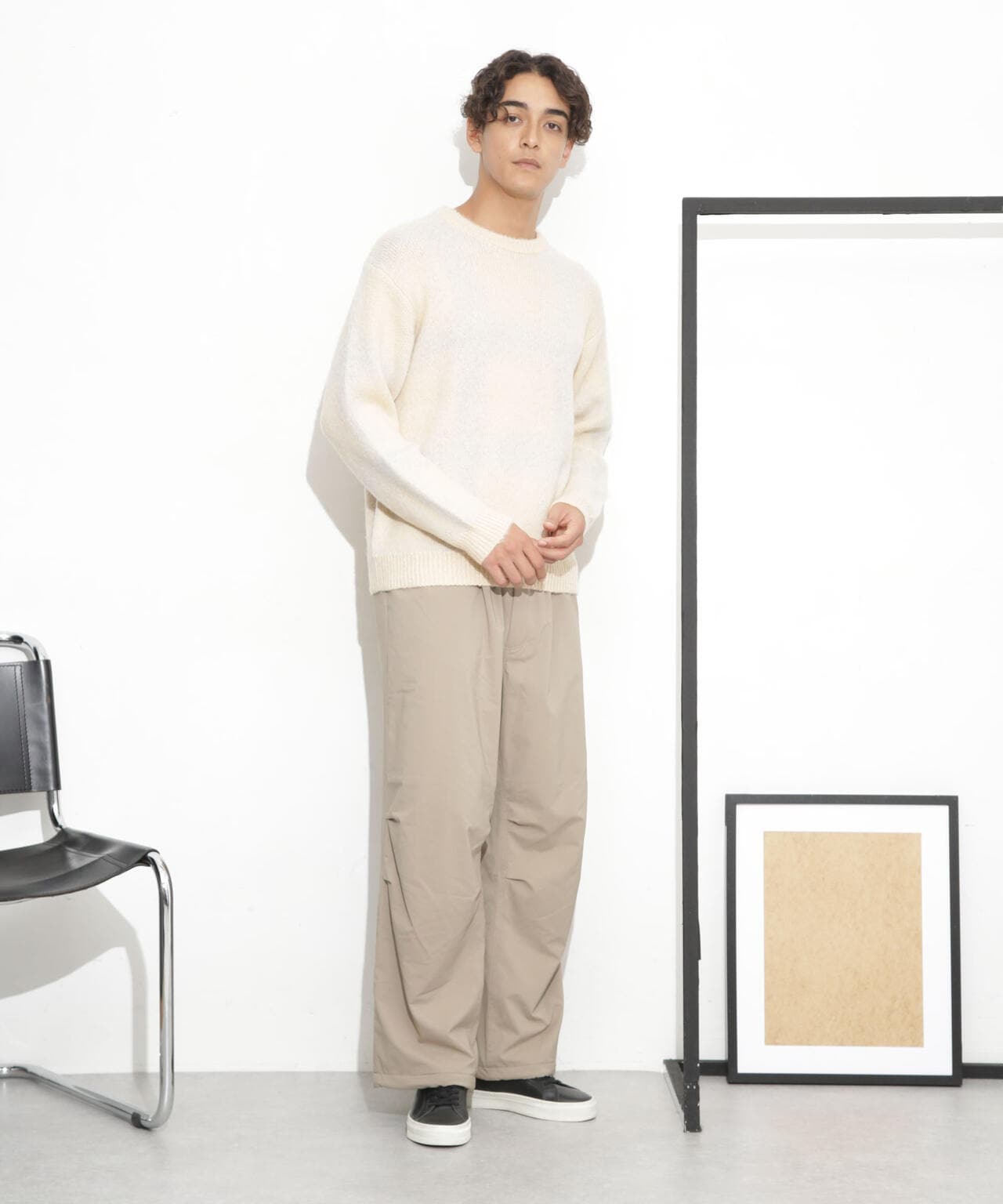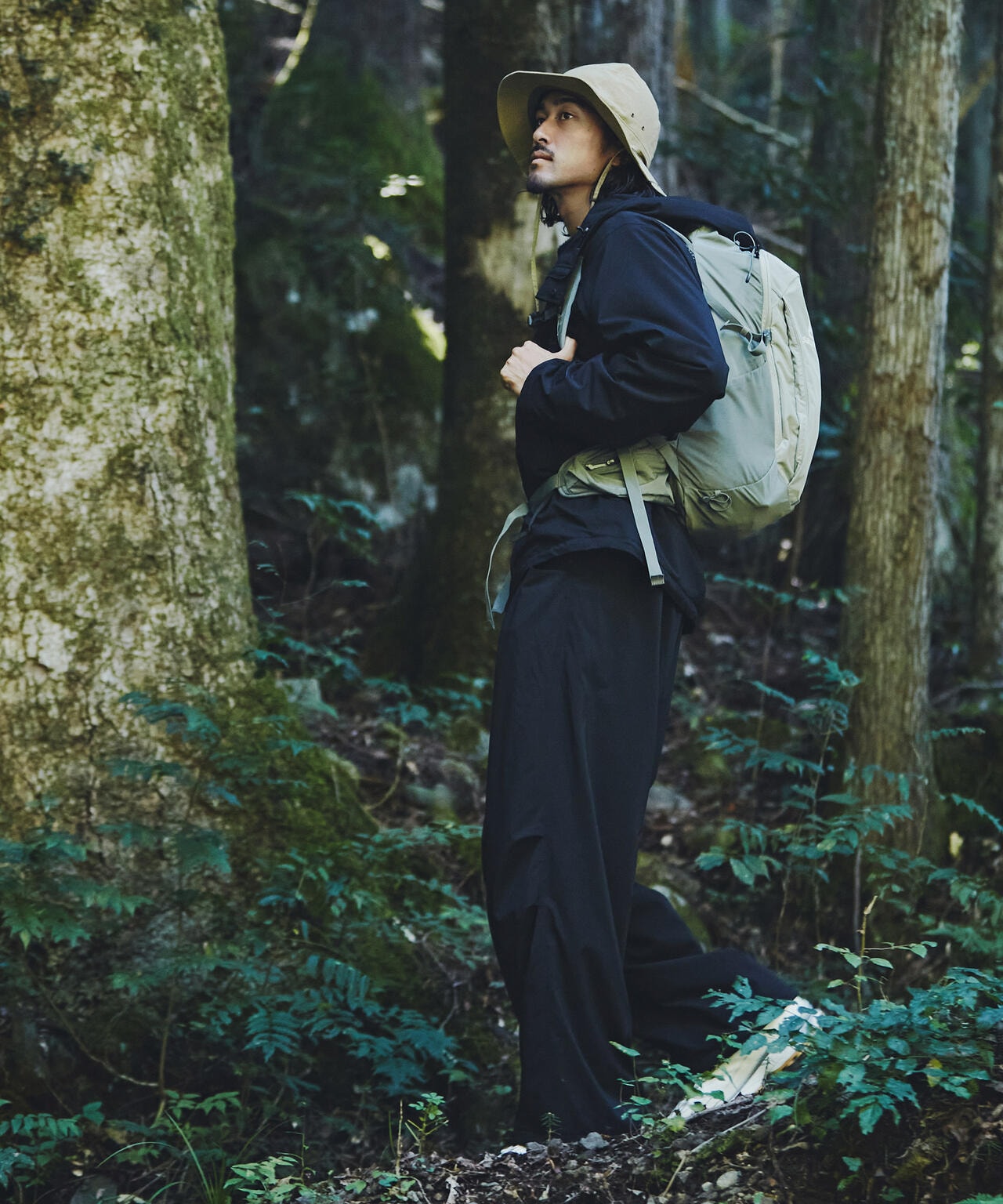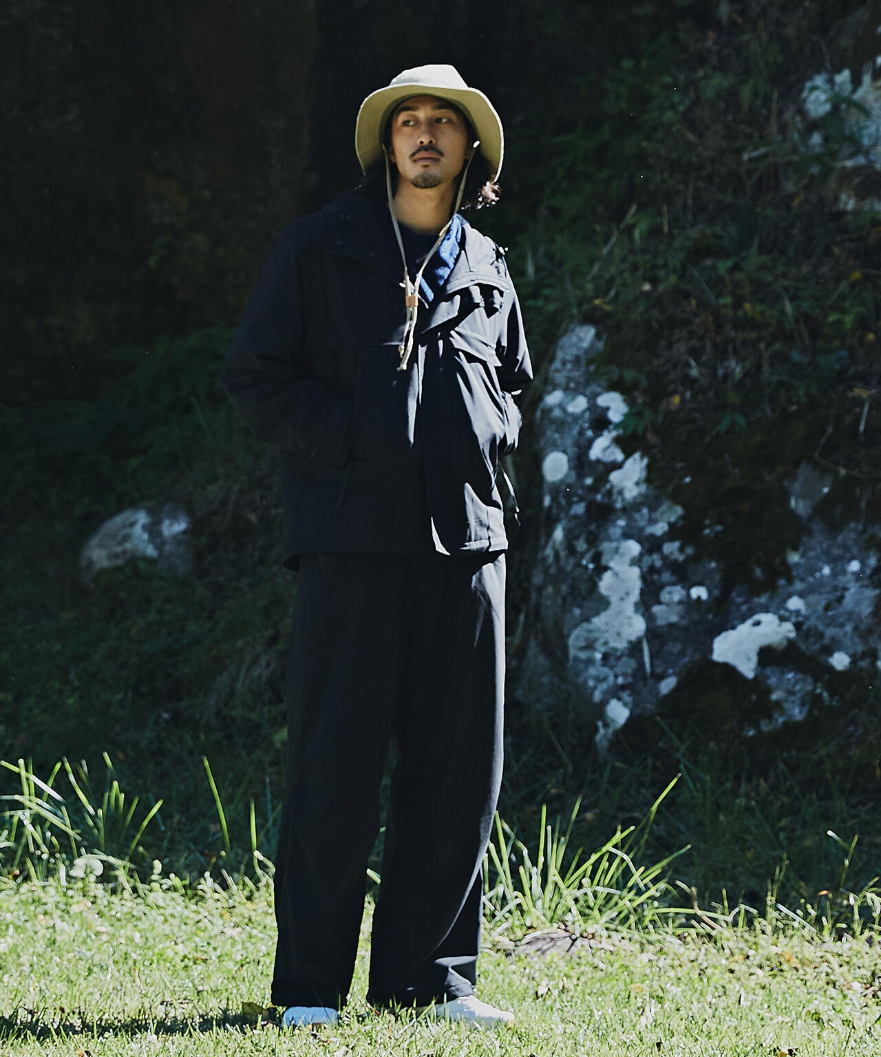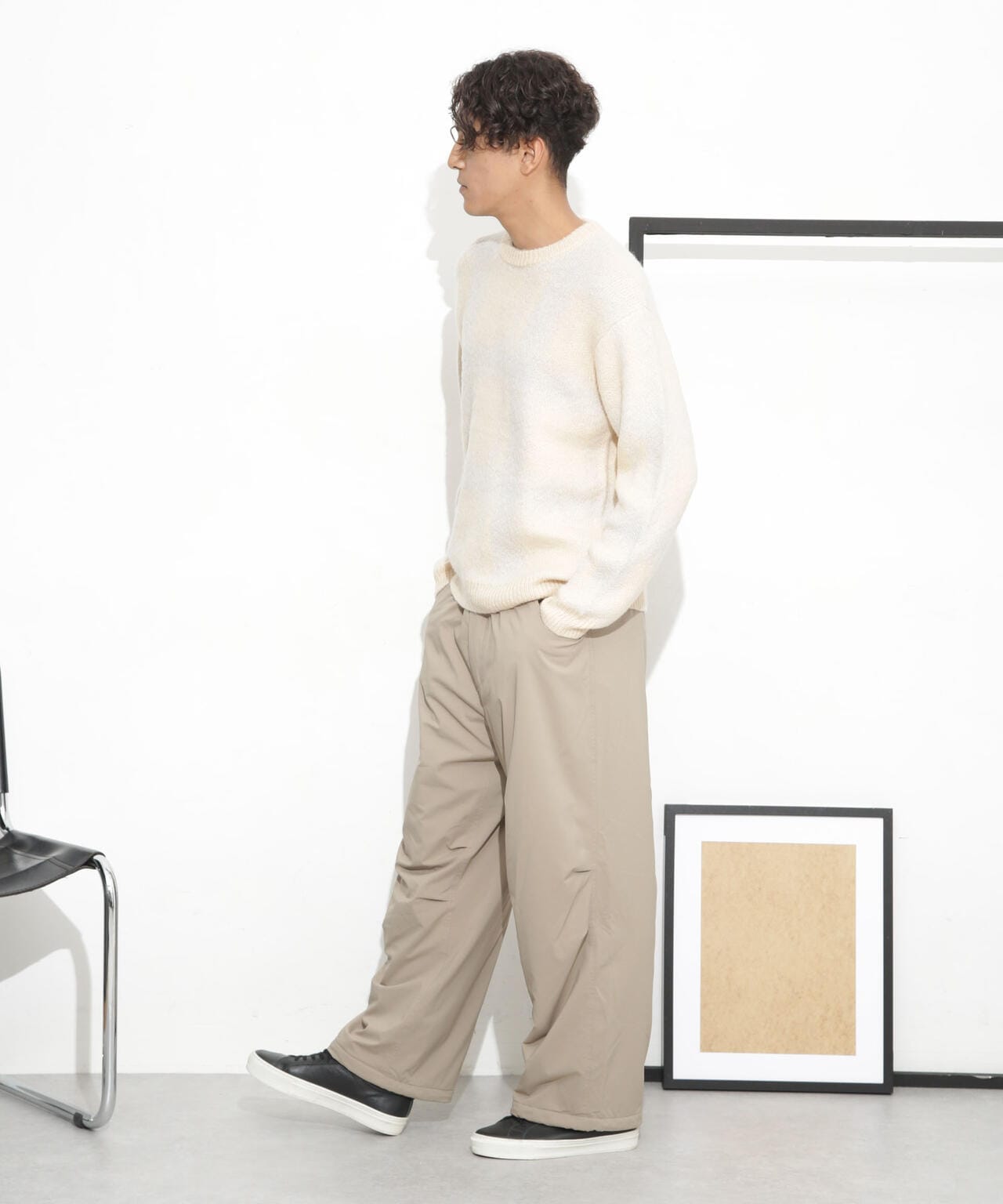 耐久撥水性のある生地と保温性・通気性を兼ね備えたOcta(R)CPCPを使用したワイドパンツ。