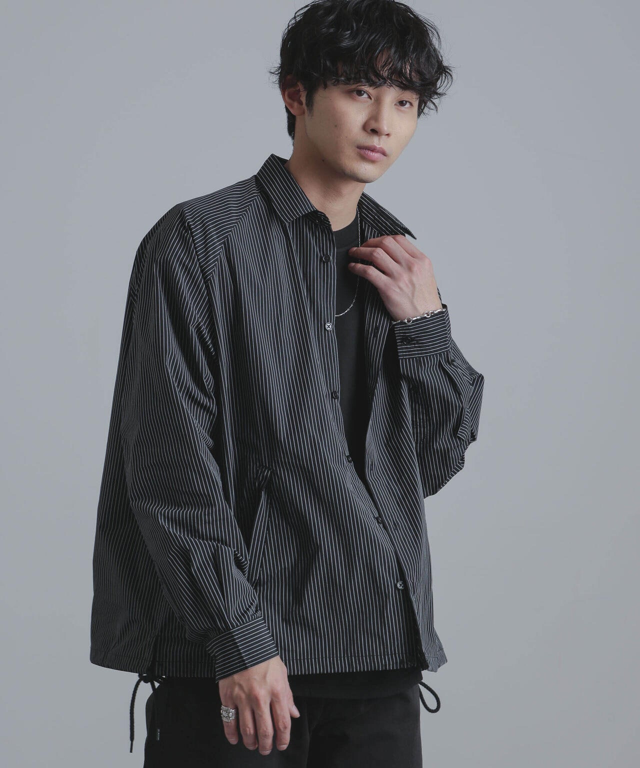 ・裾がギャザーになっていてシルエットの調整が出来るコーチシャツ