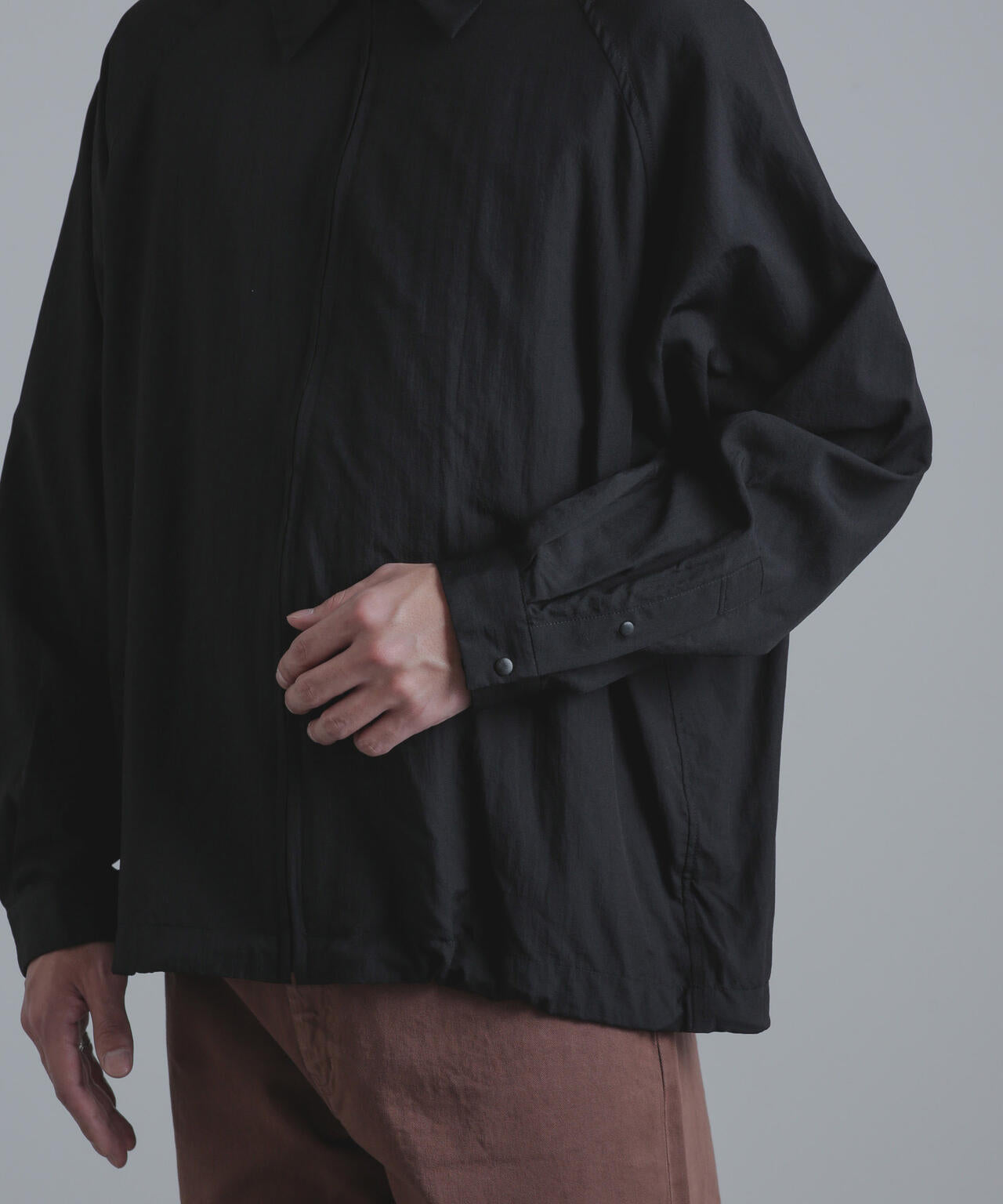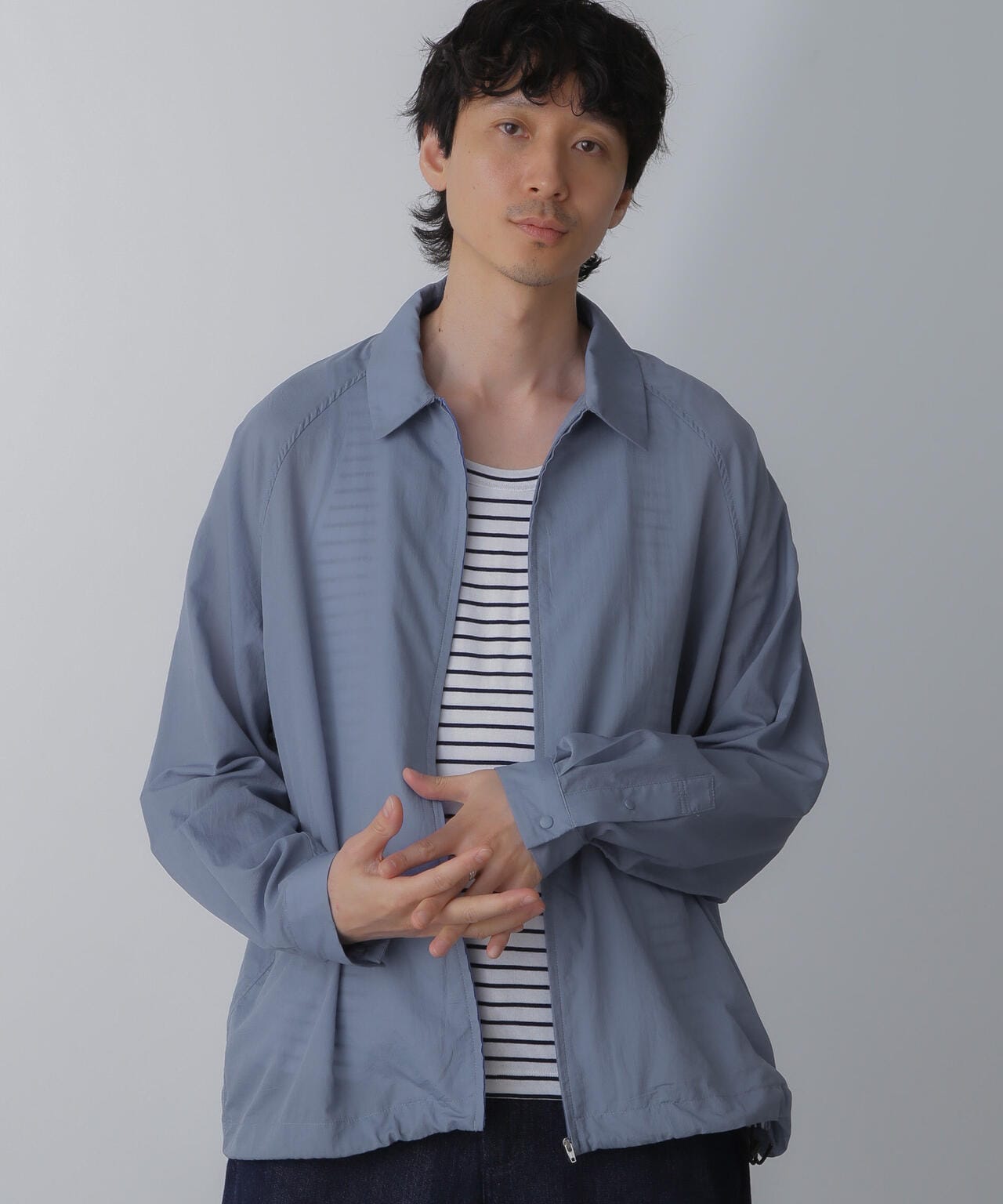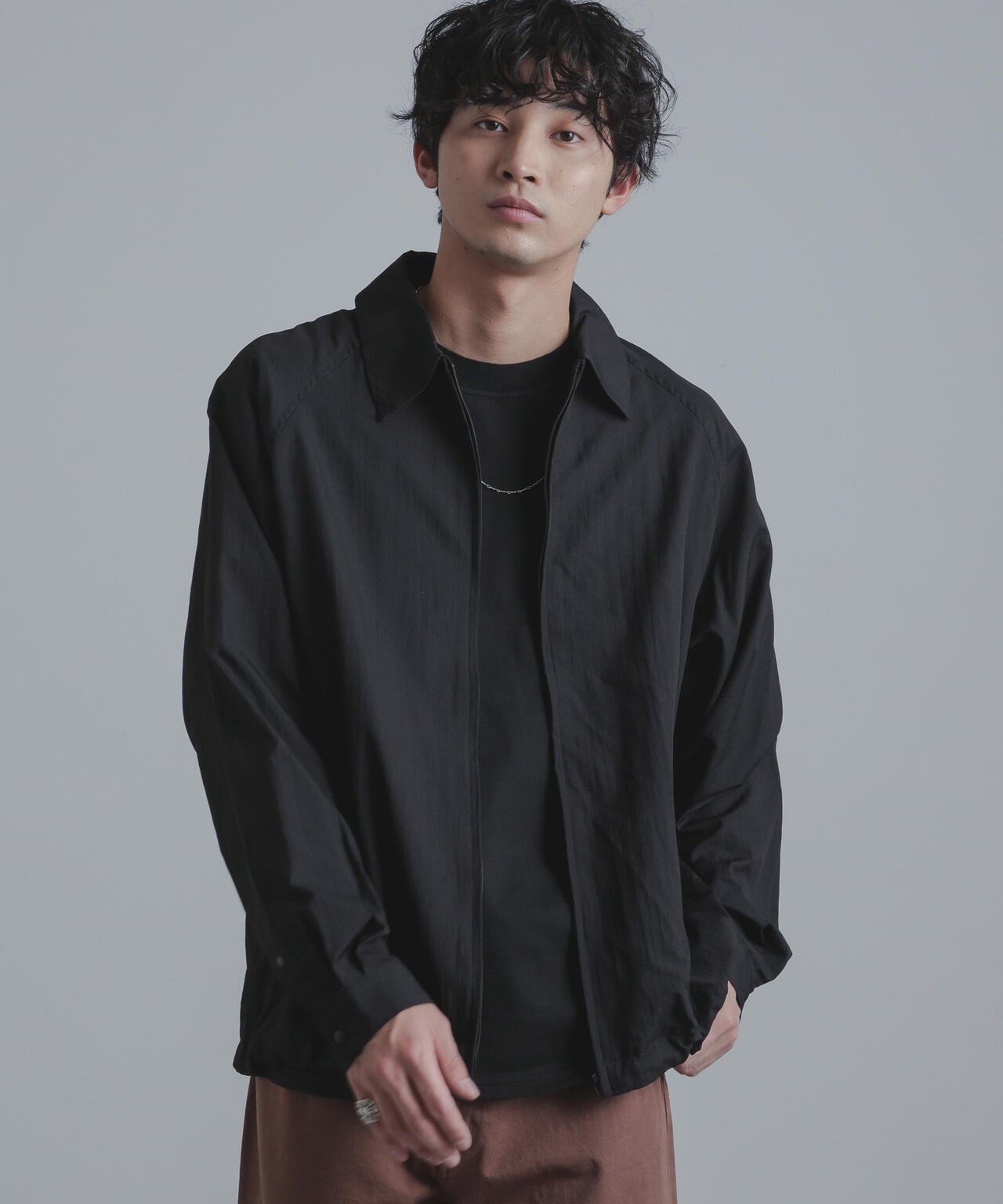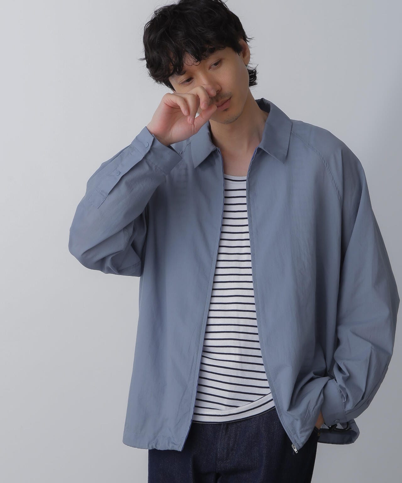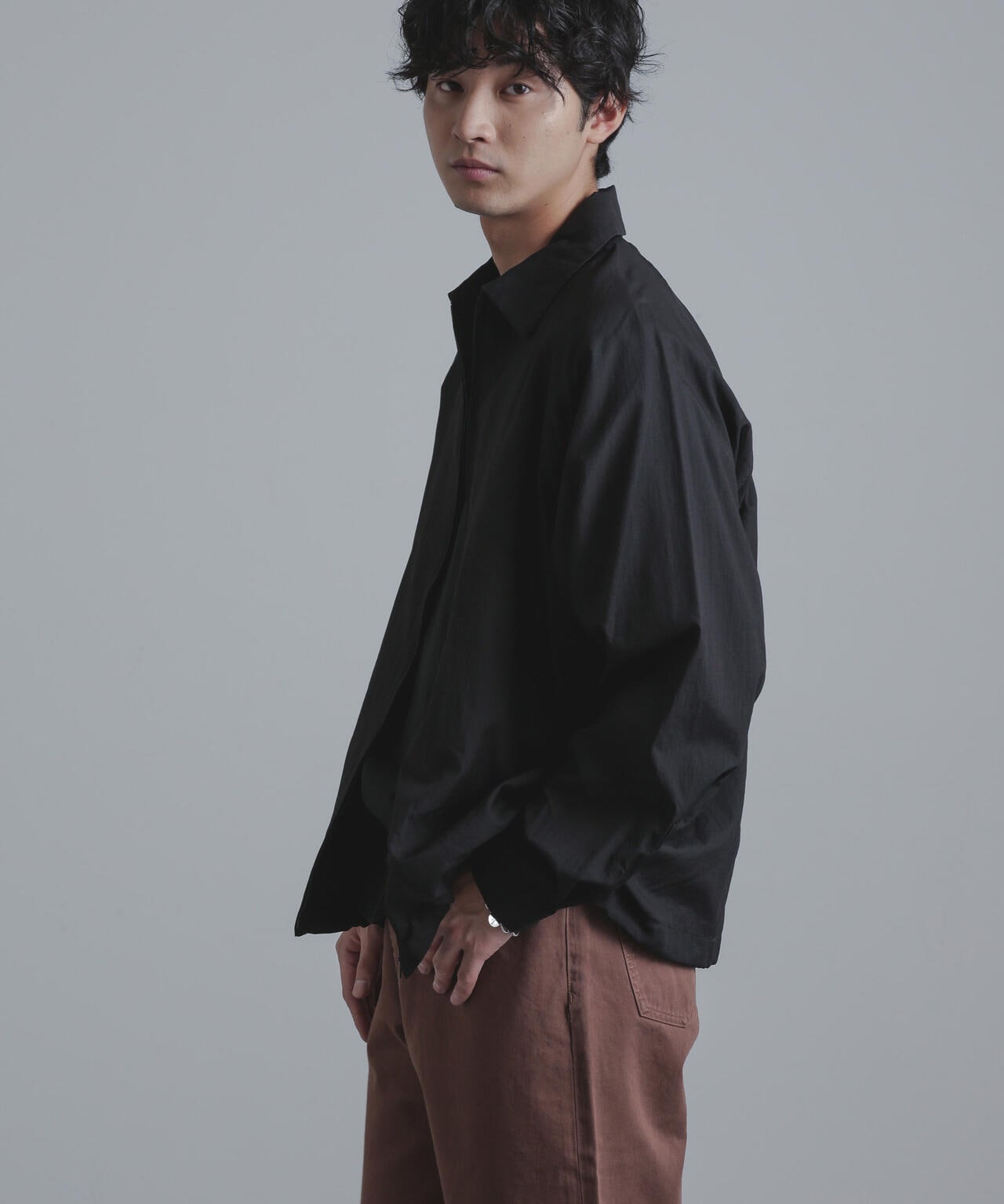 極薄のナイロン生地を使用したジップアップシャツブルゾン。