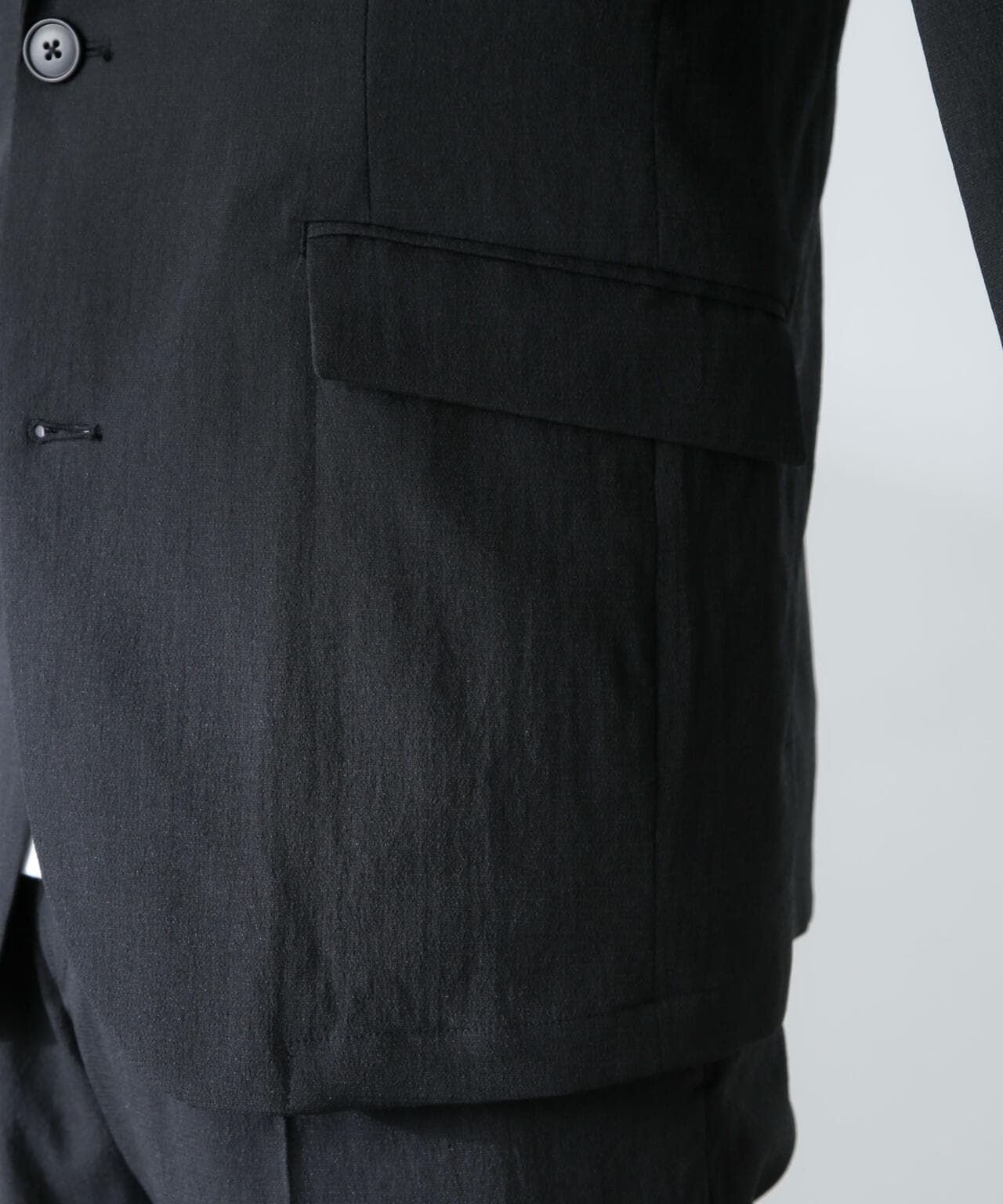 腰ポケットをジャケットに対して平行ではなく、中心から外側に向けて斜めにデザインしたスラント型を採用することで、シャープな腰回りを演出した、スタイリッシュな1着です。