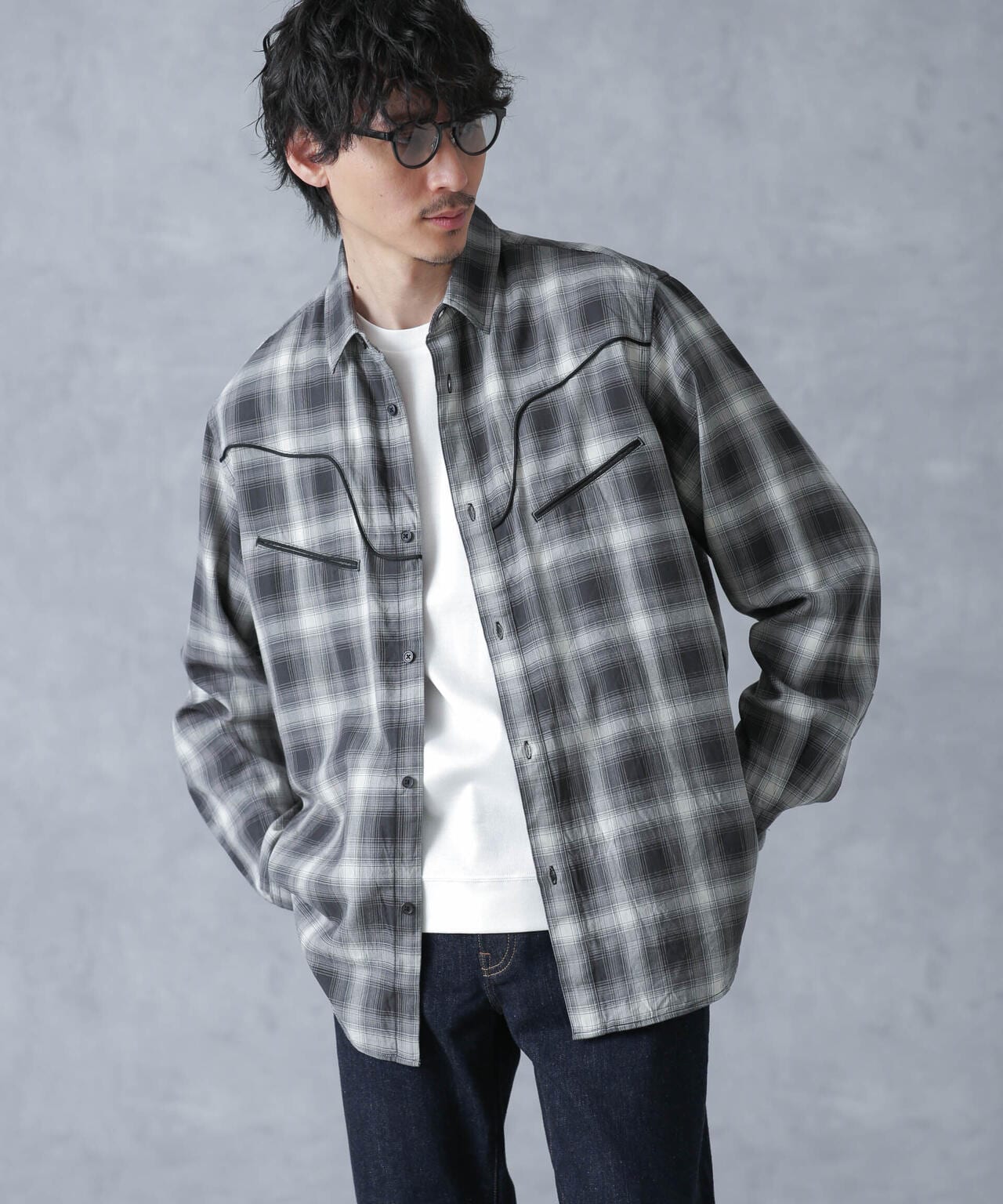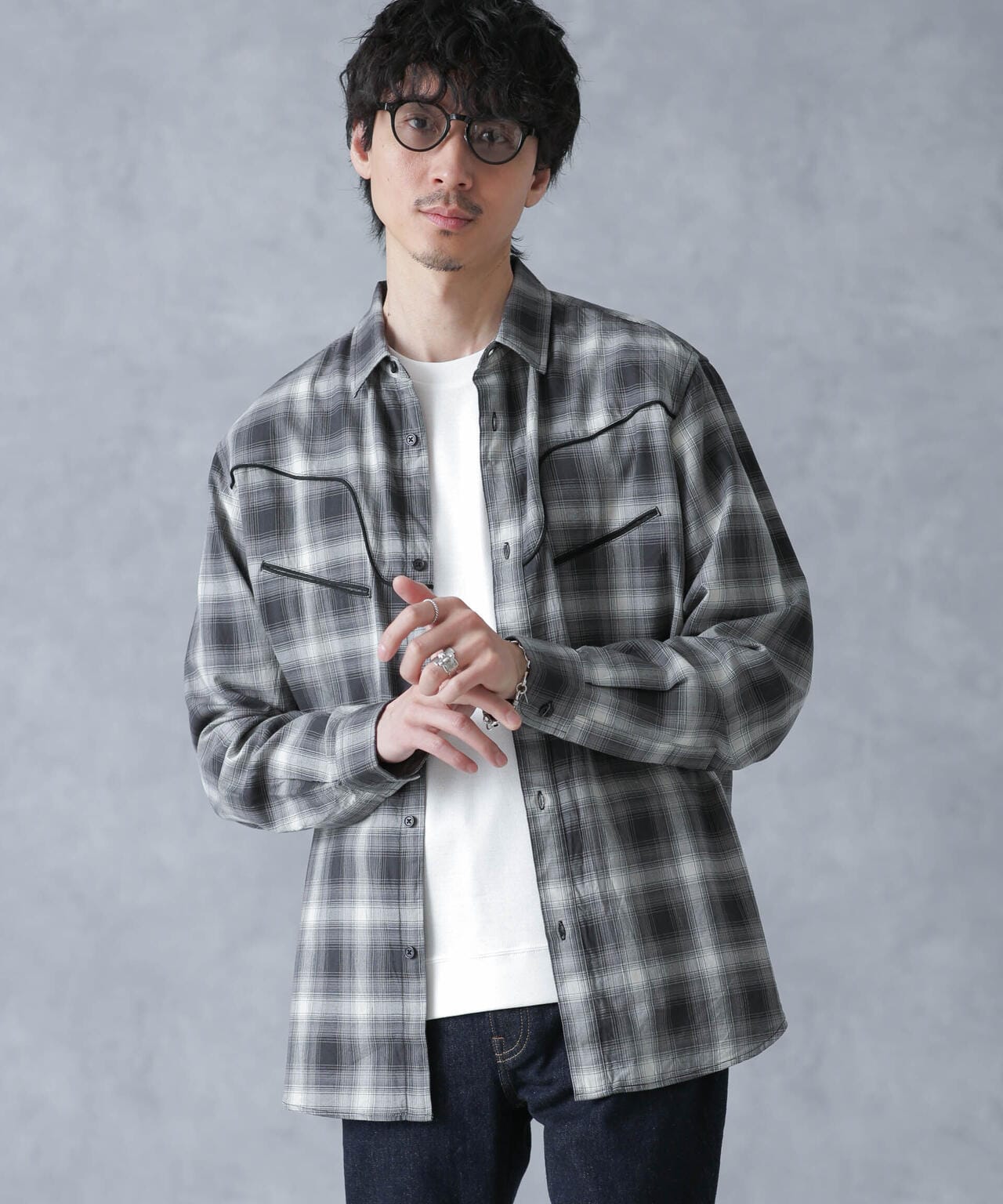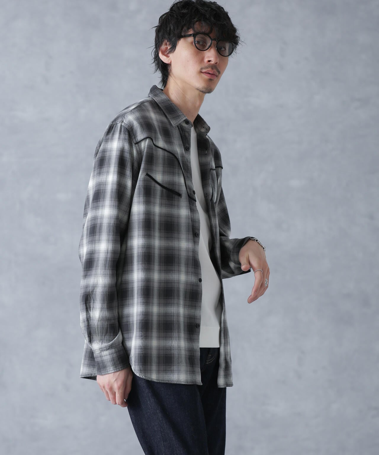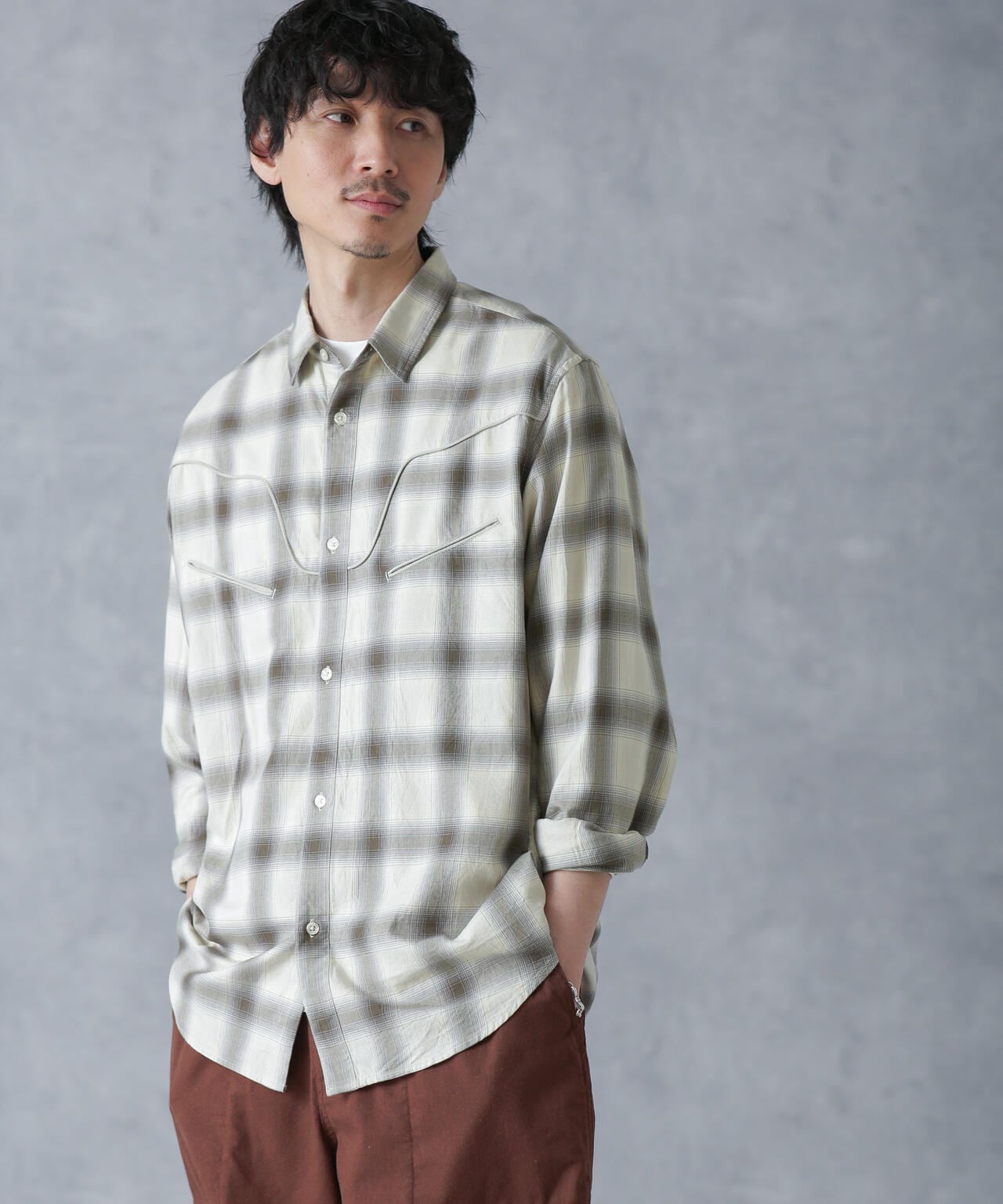 ・大人な雰囲気のオンブレチェックのウエスタンシャツ