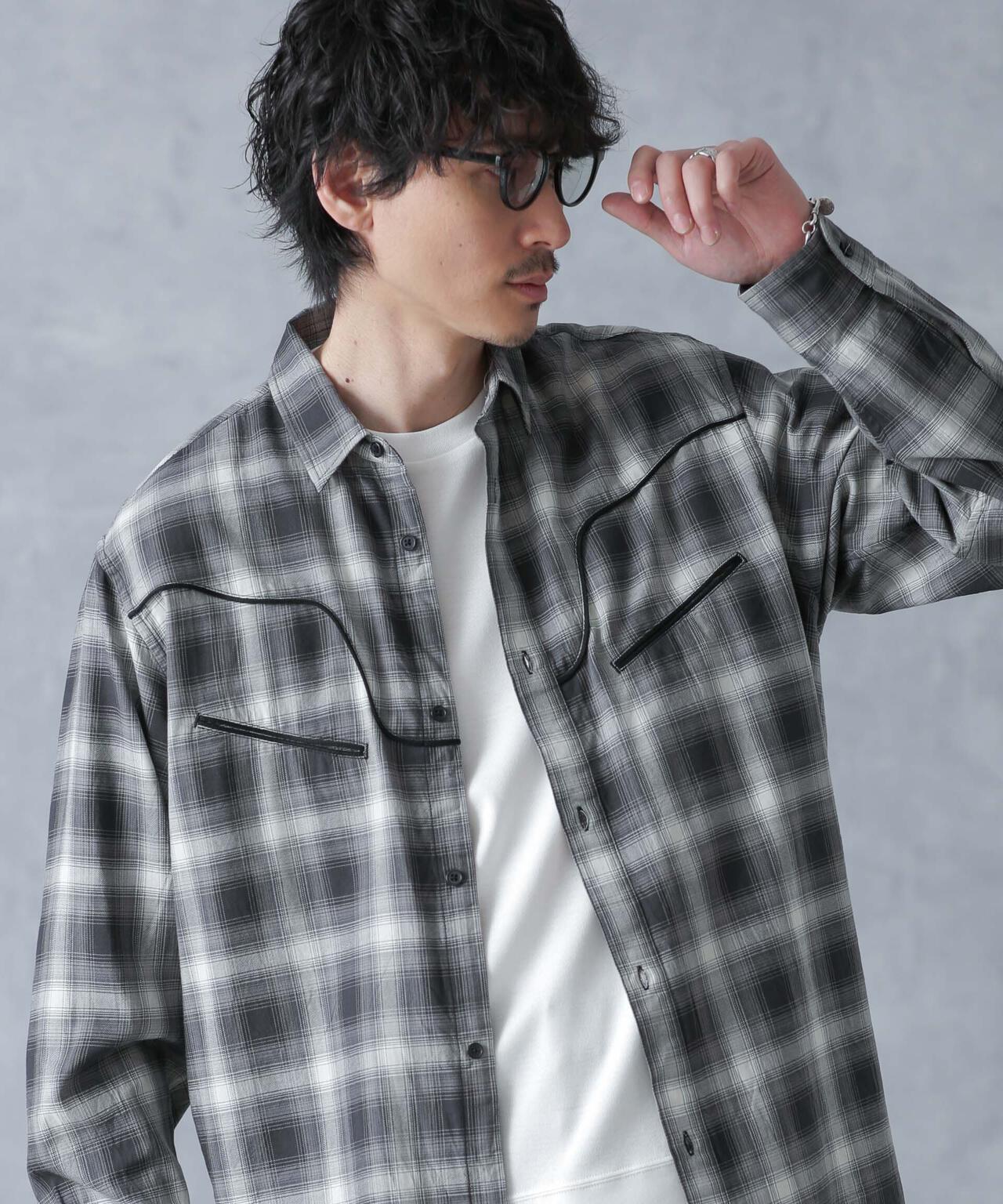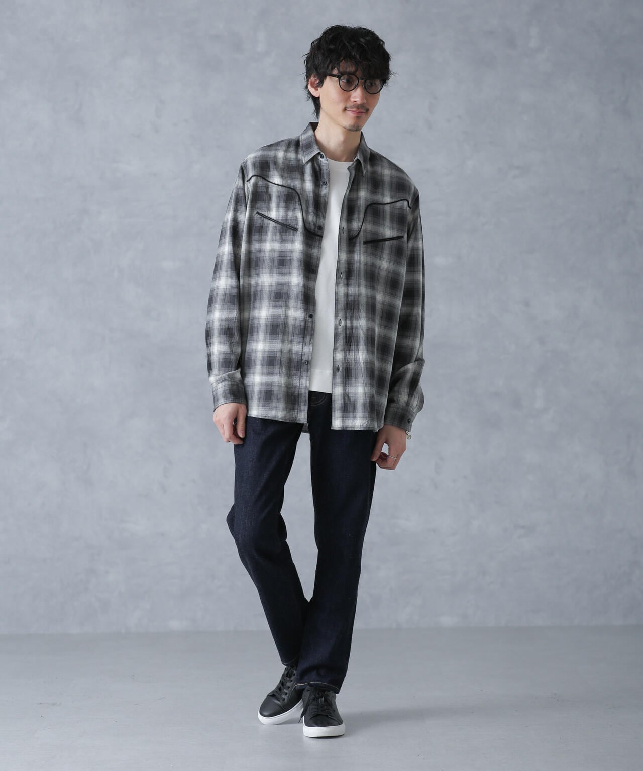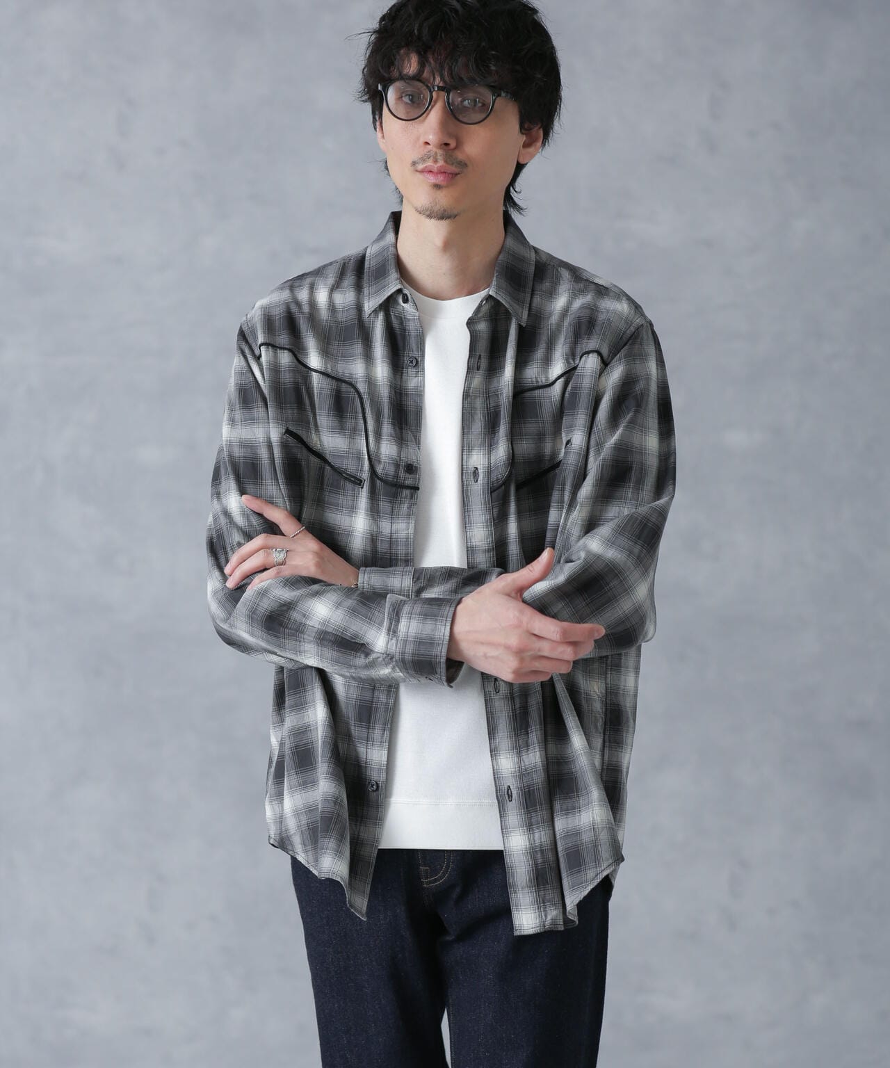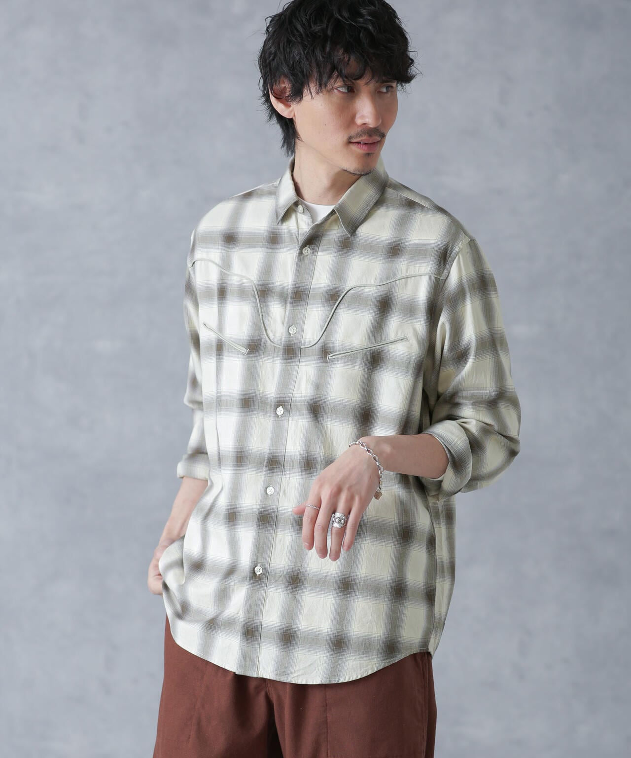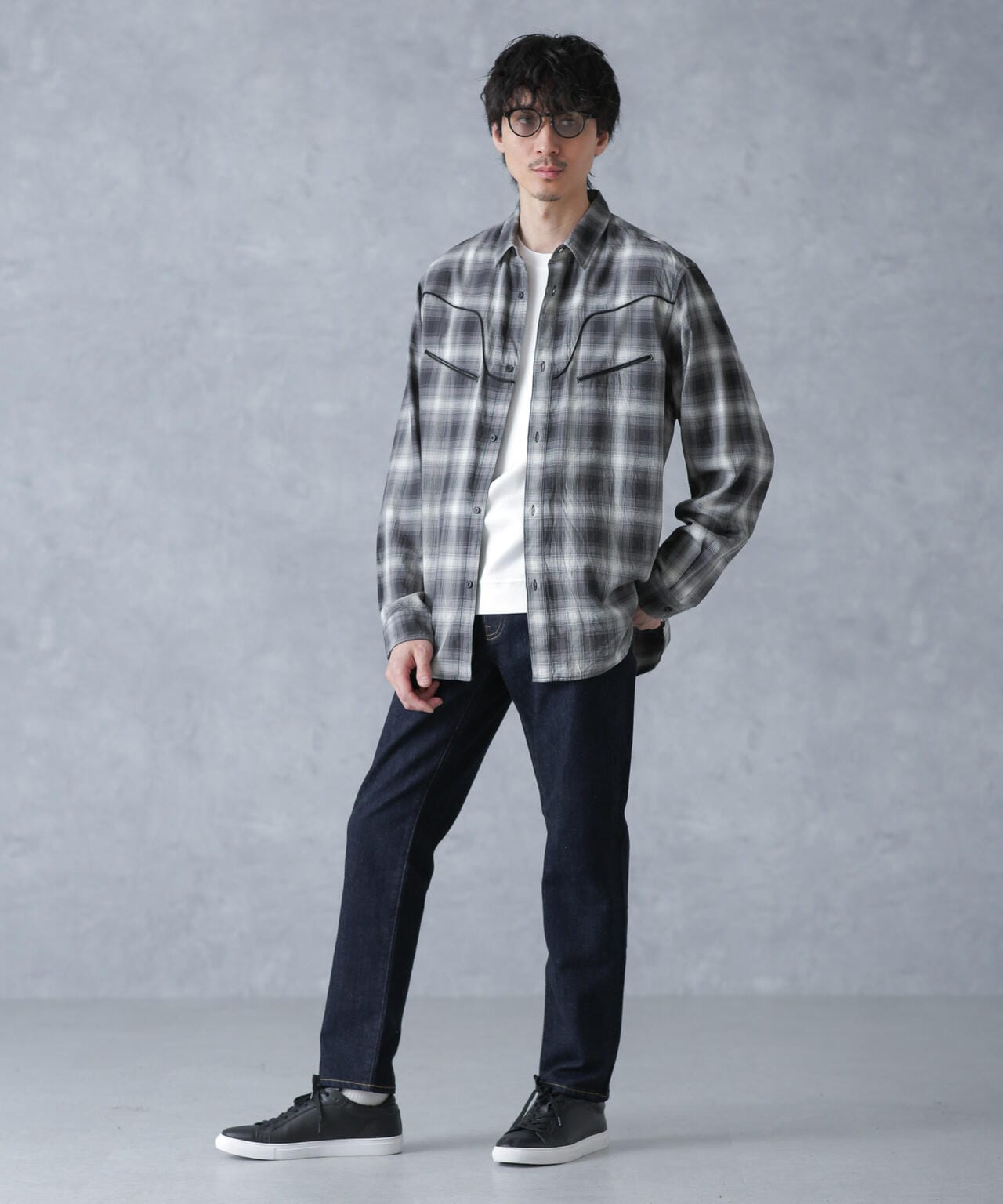 ・大人な雰囲気のオンブレチェックのウエスタンシャツ