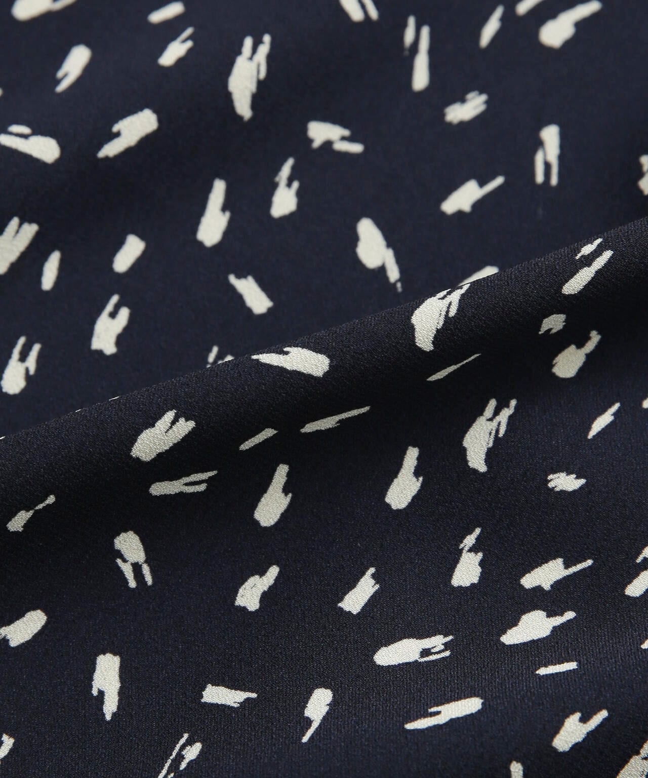 シルエットはハリとドレープ感のあるサテン素材を生かしたリラックスシルエットで春らしい軽やかな印象の一枚。
