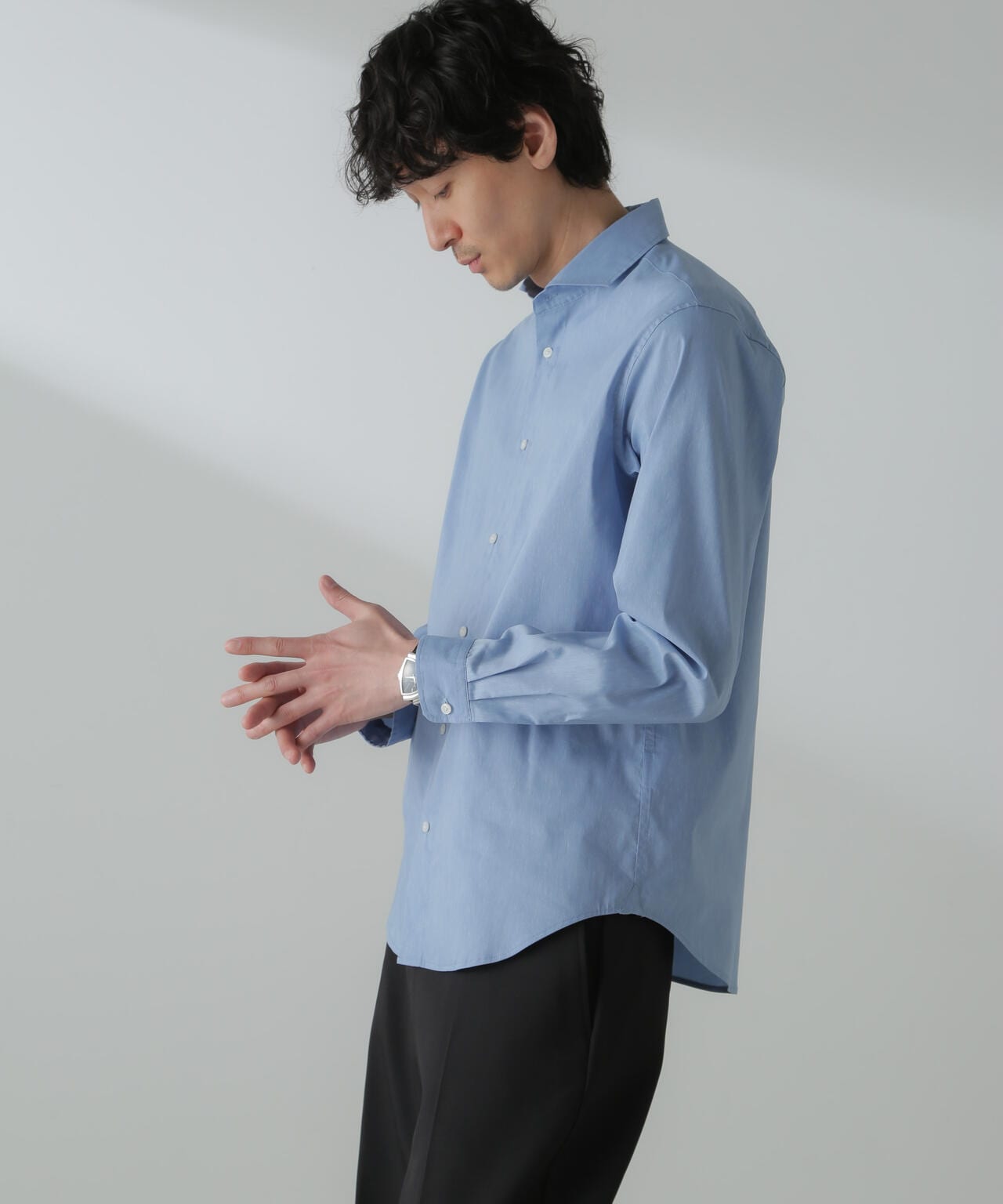 シンプルに仕上げたデザインは一枚着はもちろん、ジャケット合わせなど活躍の場が広がるシャツに仕上がっています。