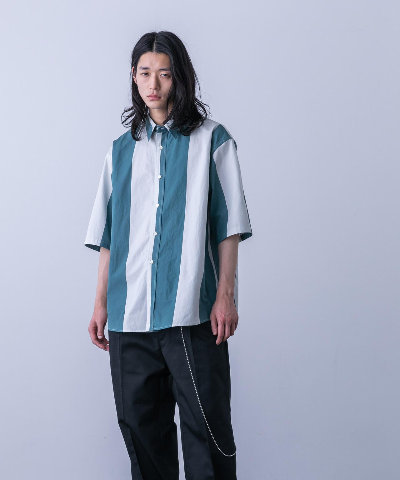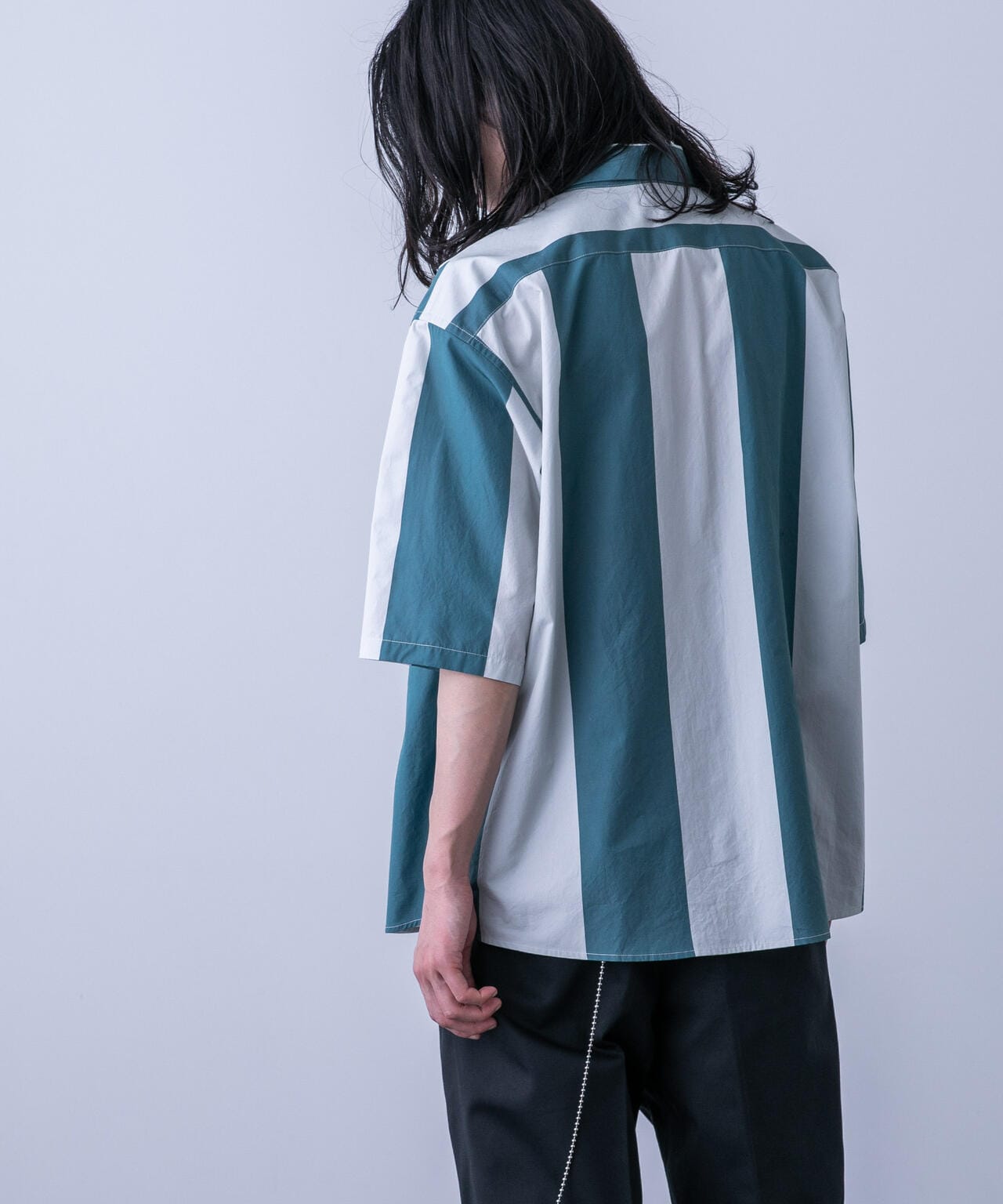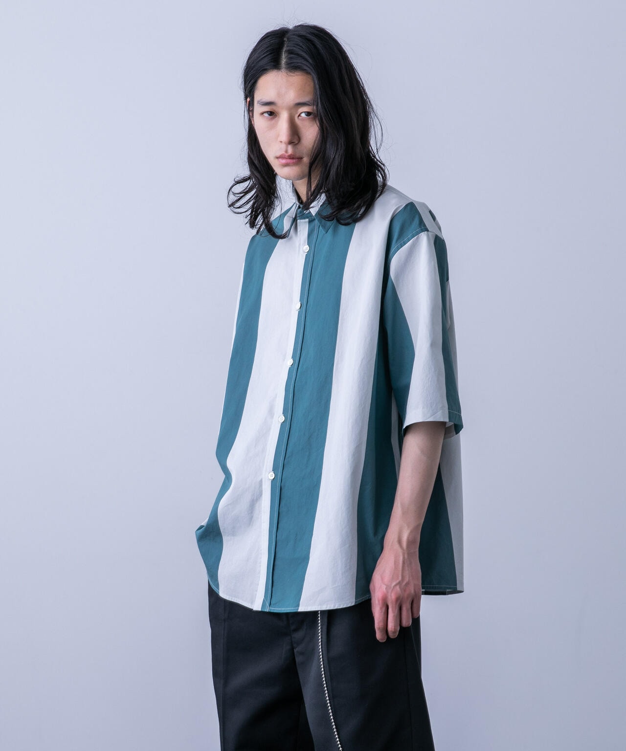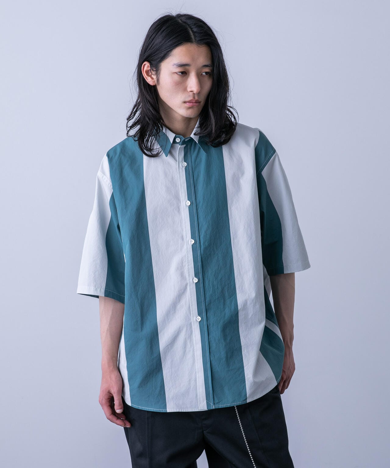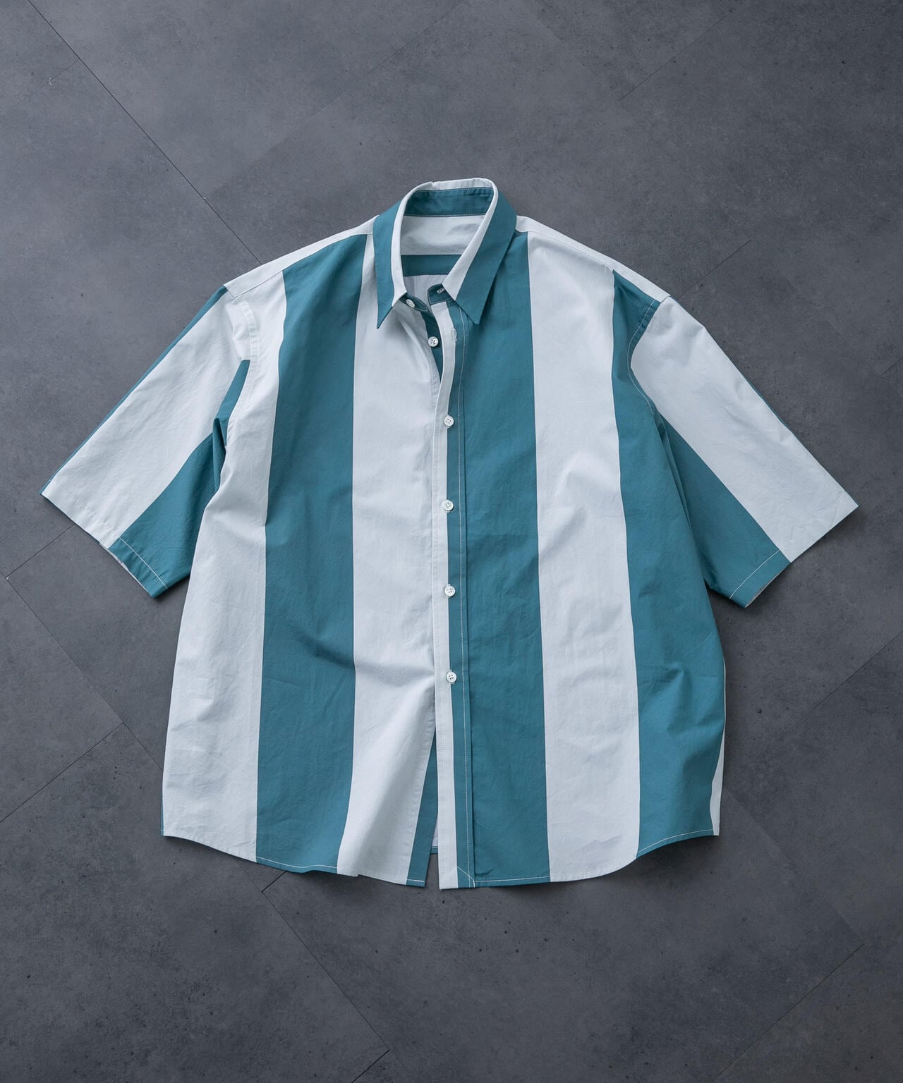 前シーズンでも人気のレギュラーカラーシャツを、リゾート感あるオリジナルビッグストライプにブラッシュアップした半袖シャツ。