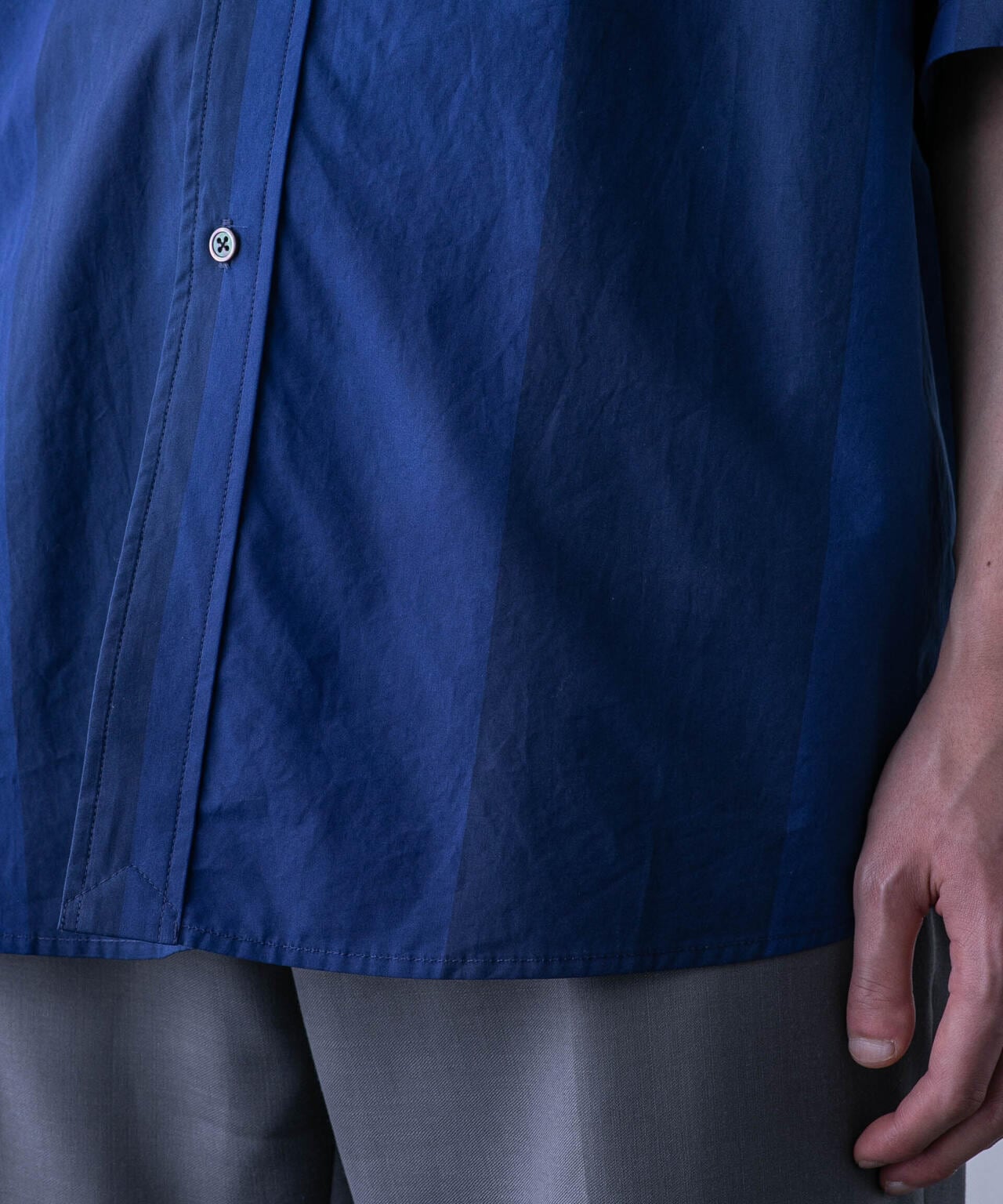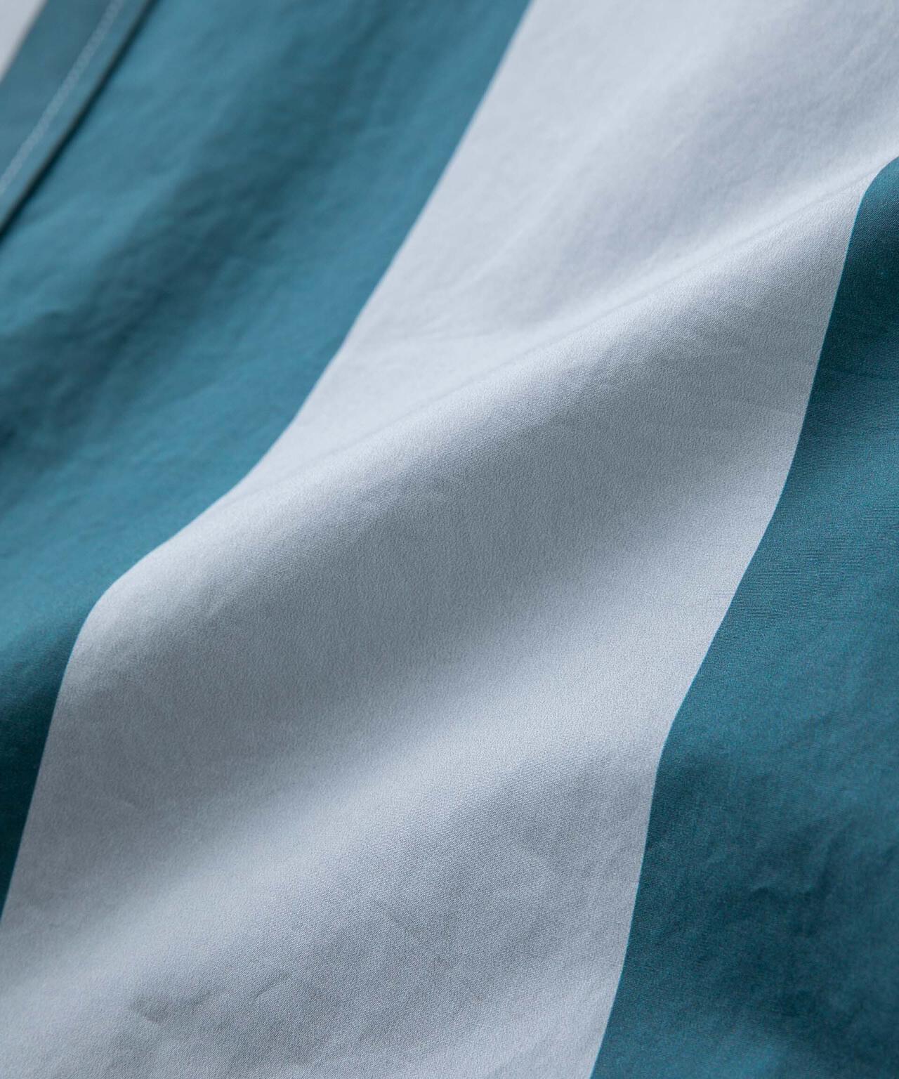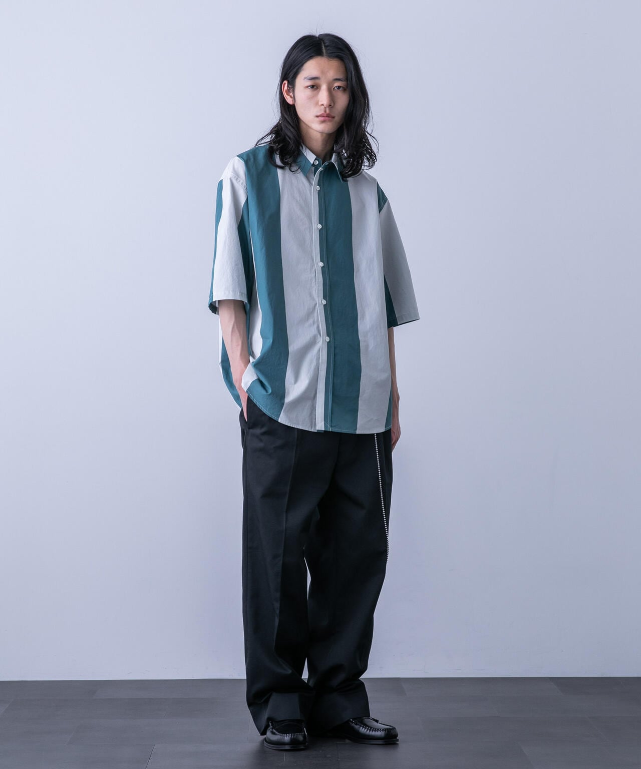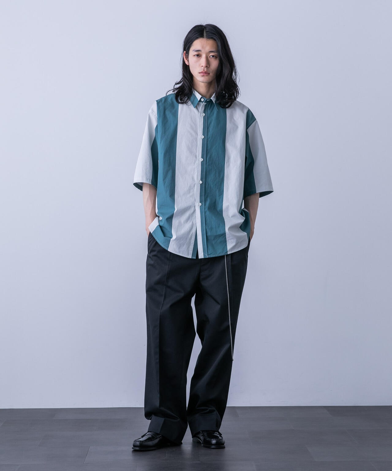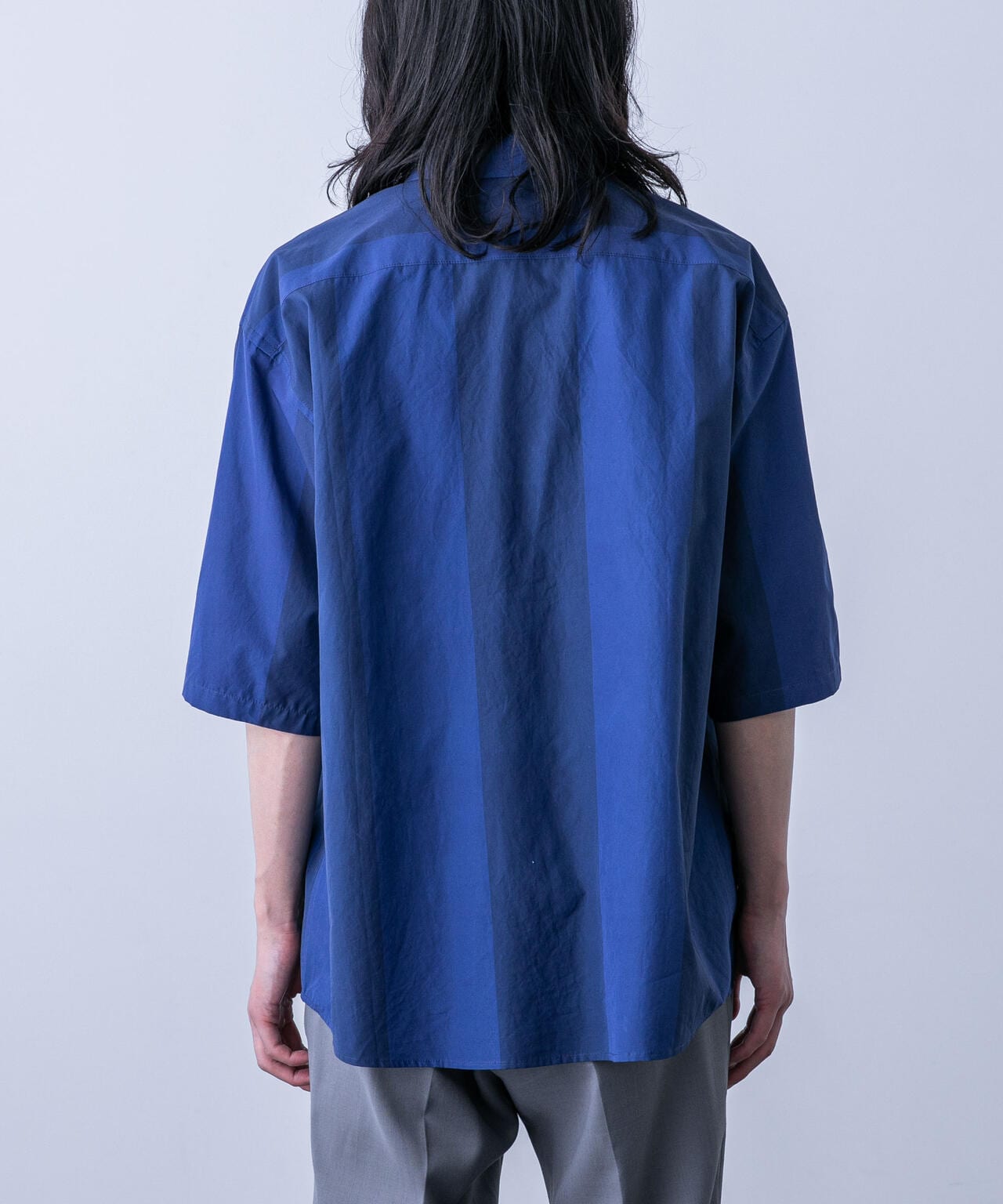 前シーズンでも人気のレギュラーカラーシャツを、リゾート感あるオリジナルビッグストライプにブラッシュアップした半袖シャツ。