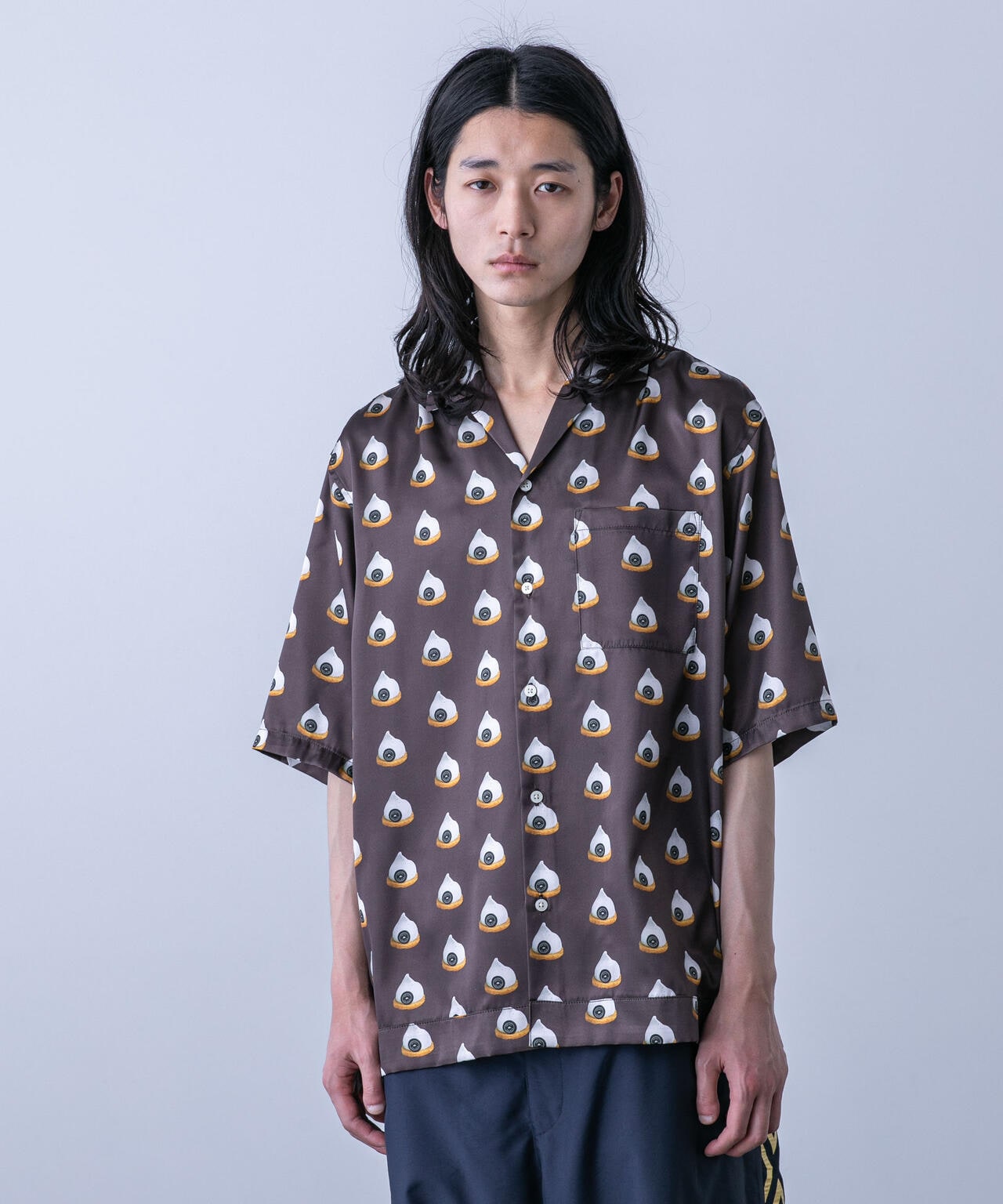 スイーツモチーフのユニークなオープンカラーシャツ。