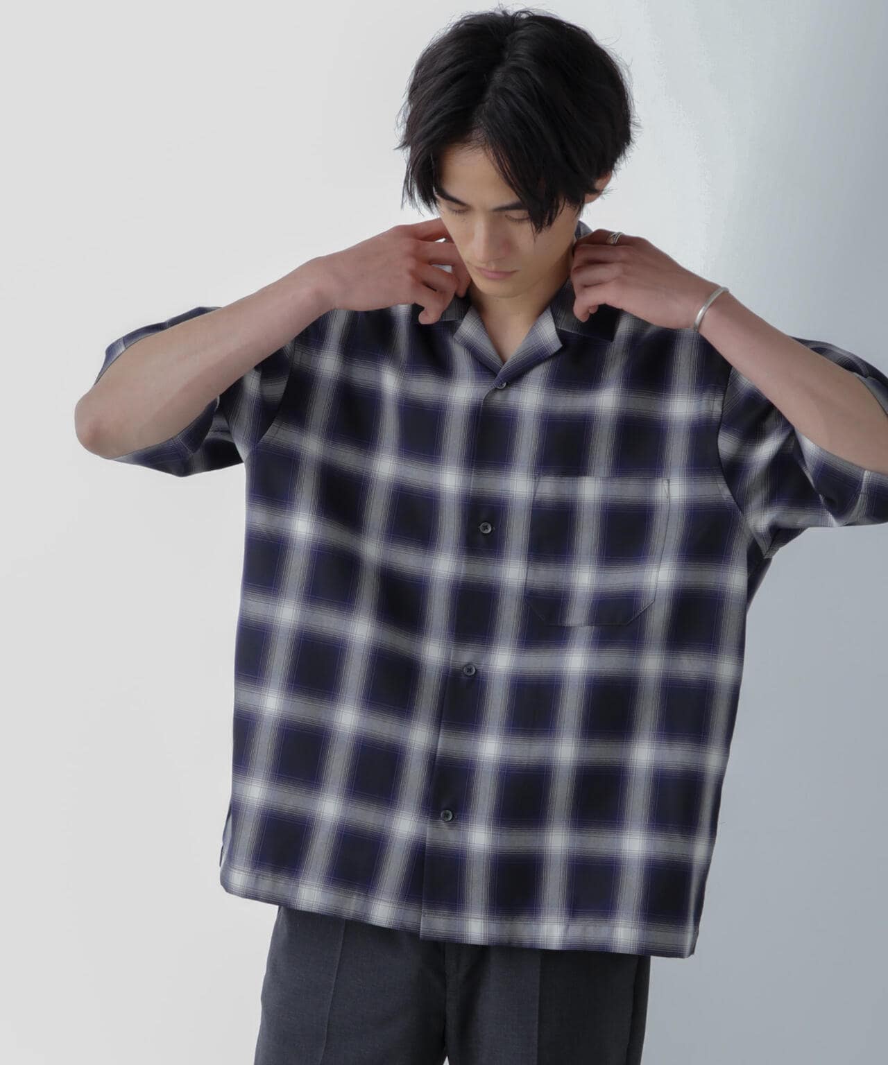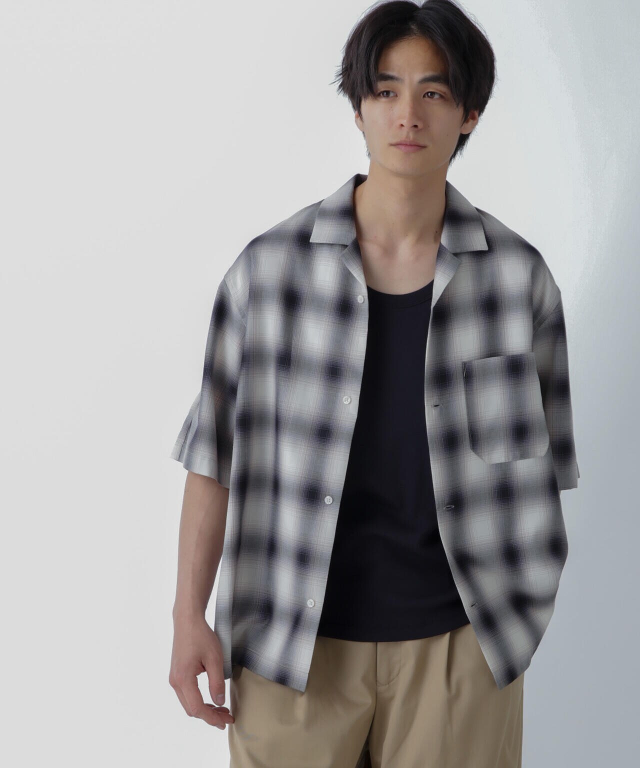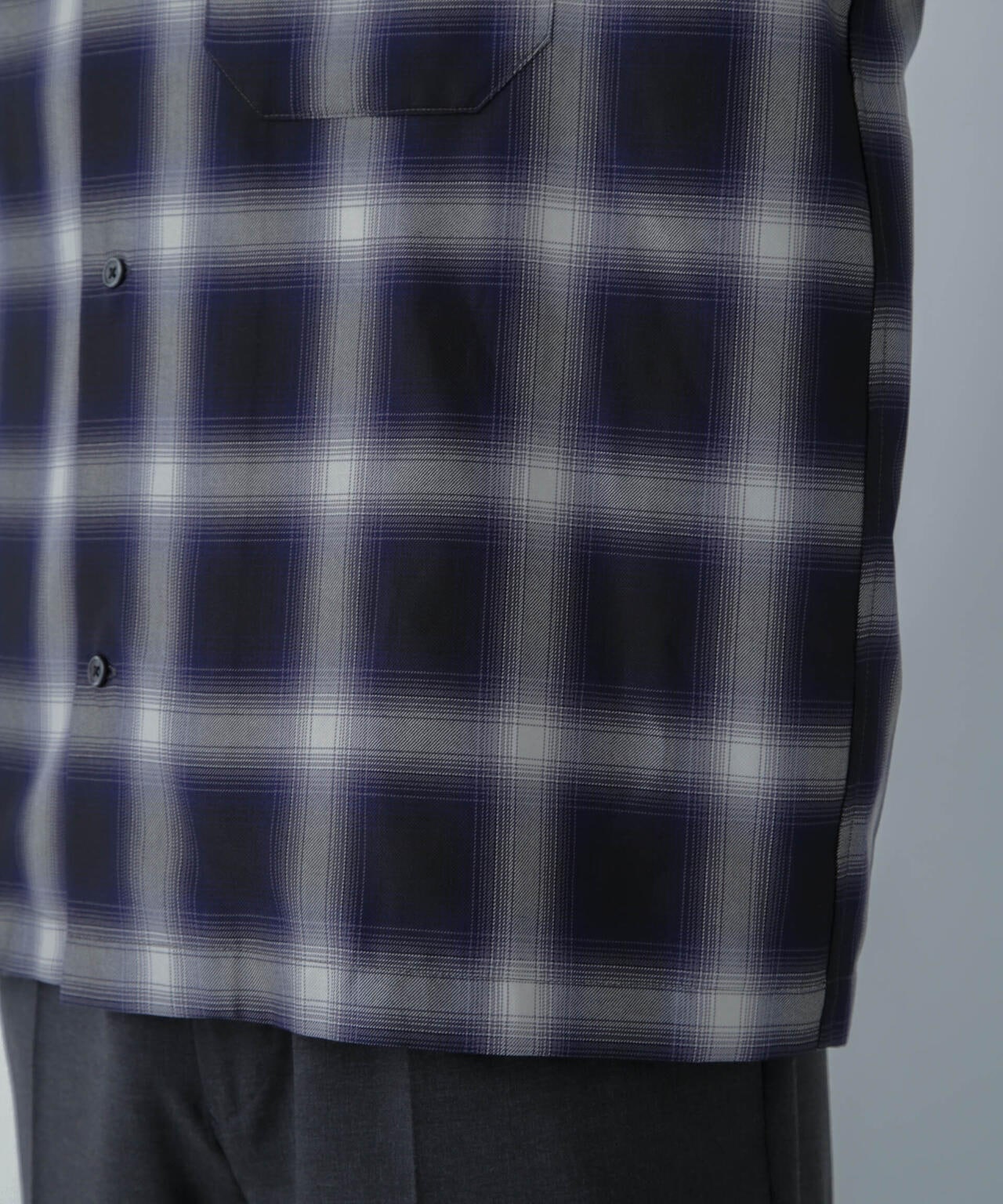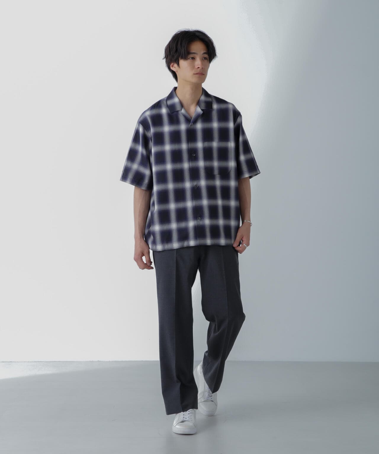 リラックスシルエットで、クリーンな色味のオンブレチェックを用いてトレンド感も表現した1着です。