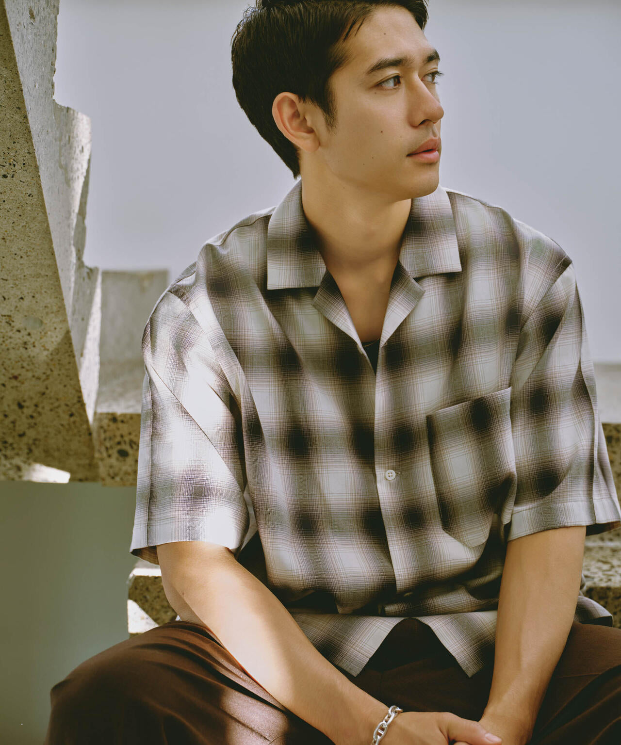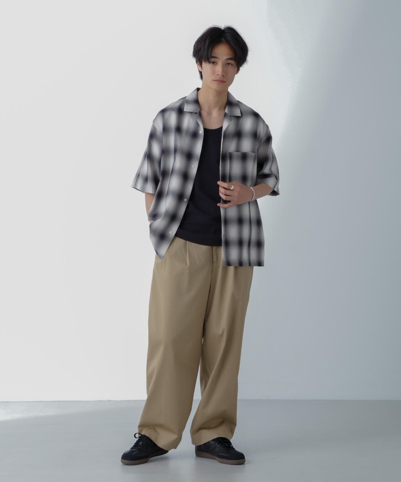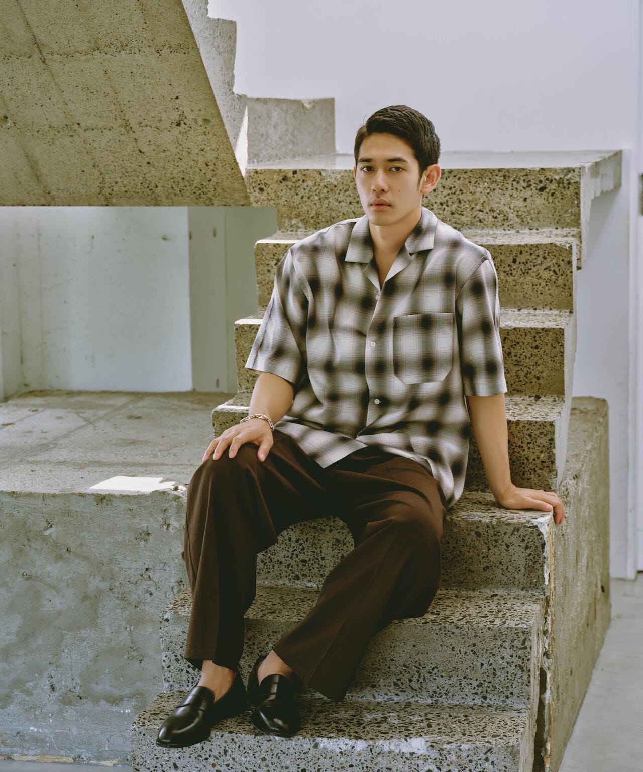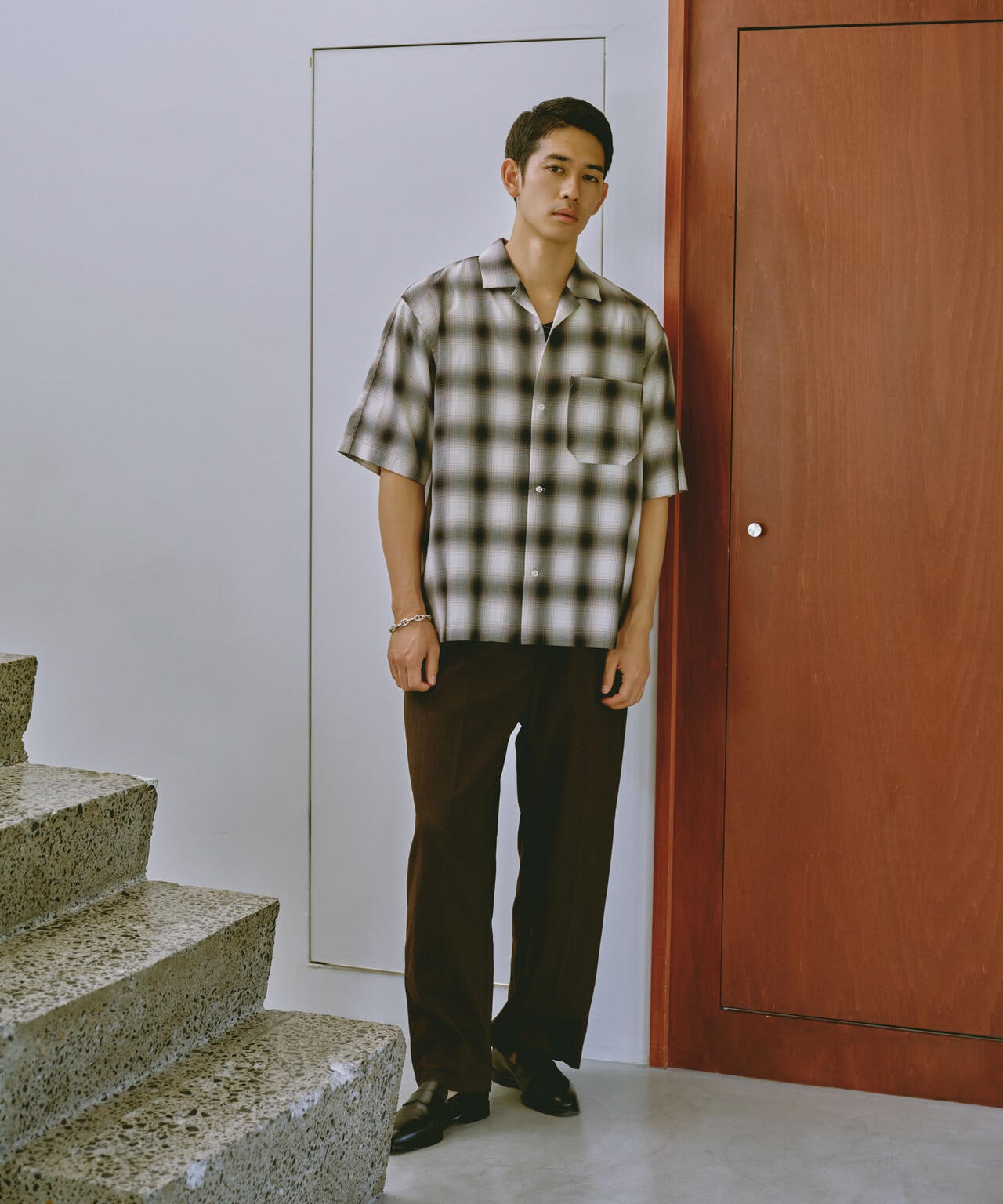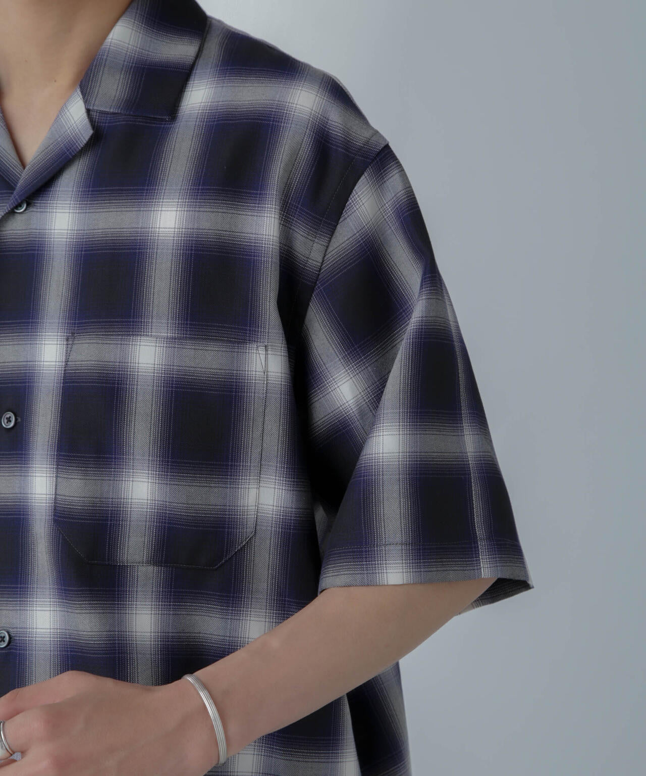 リラックスシルエットで、クリーンな色味のオンブレチェックを用いてトレンド感も表現した1着です。
