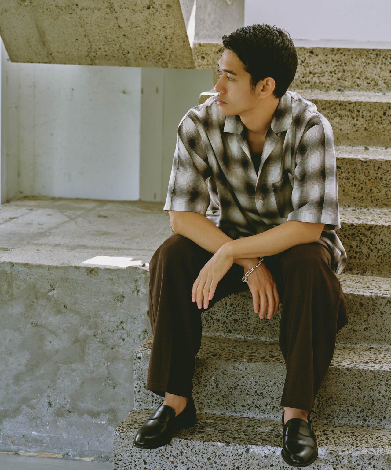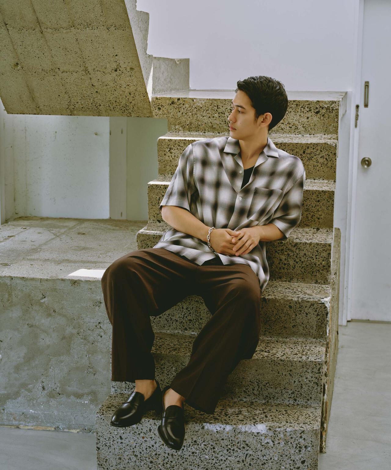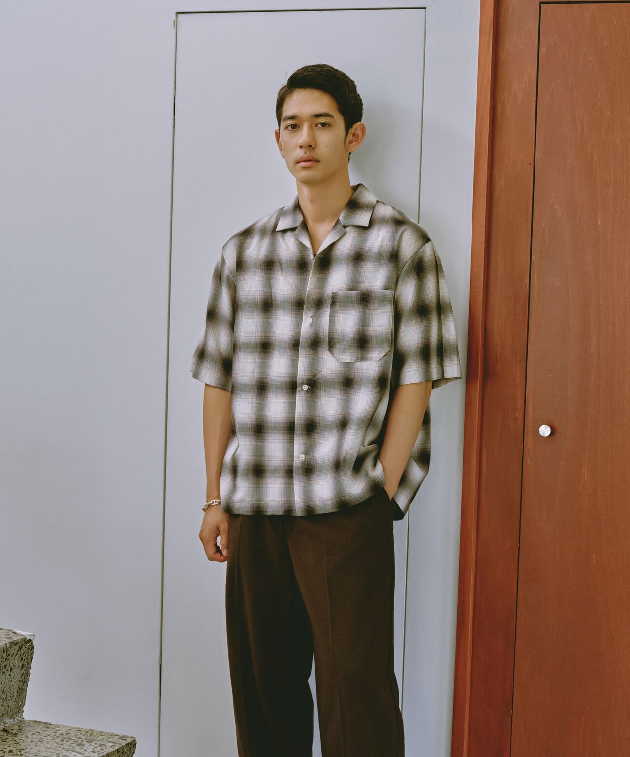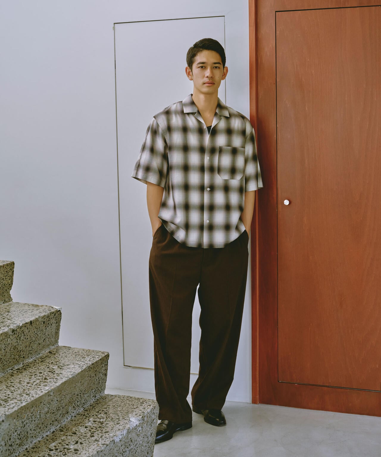 リラックスシルエットで、クリーンな色味のオンブレチェックを用いてトレンド感も表現した1着です。