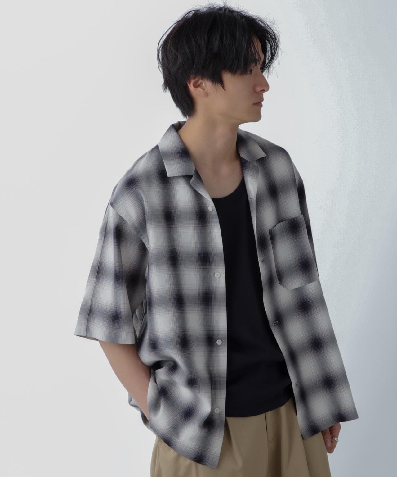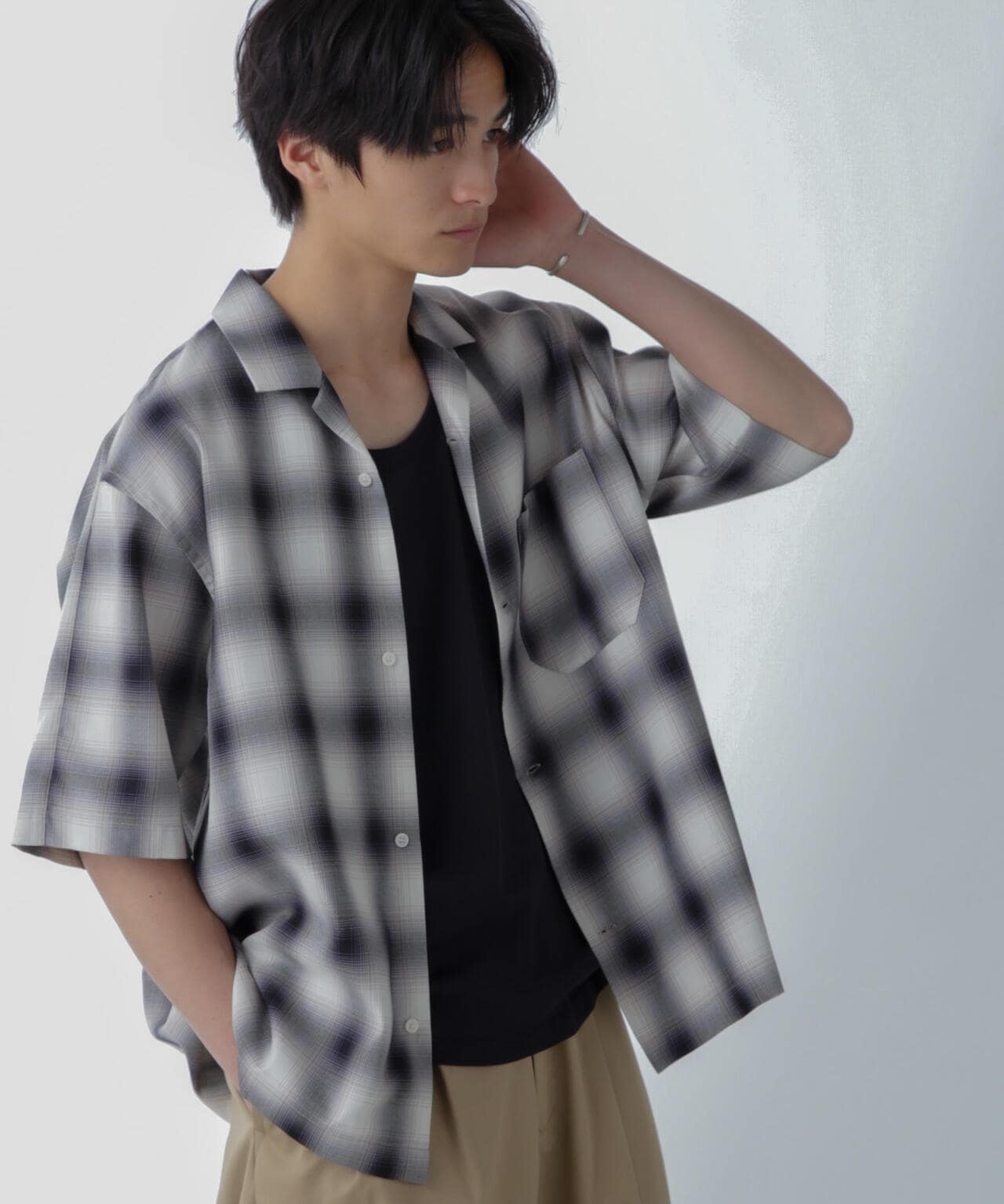 オンブレーチェックハーフスリーブシャツ
