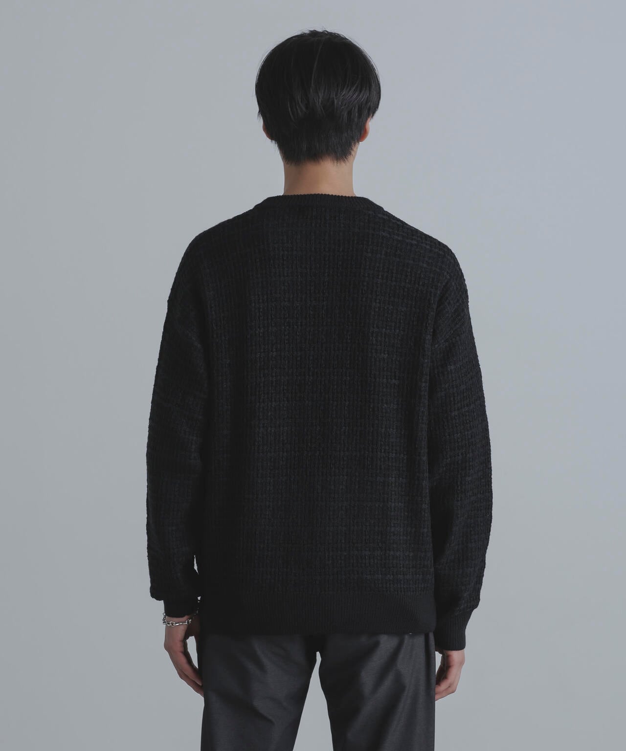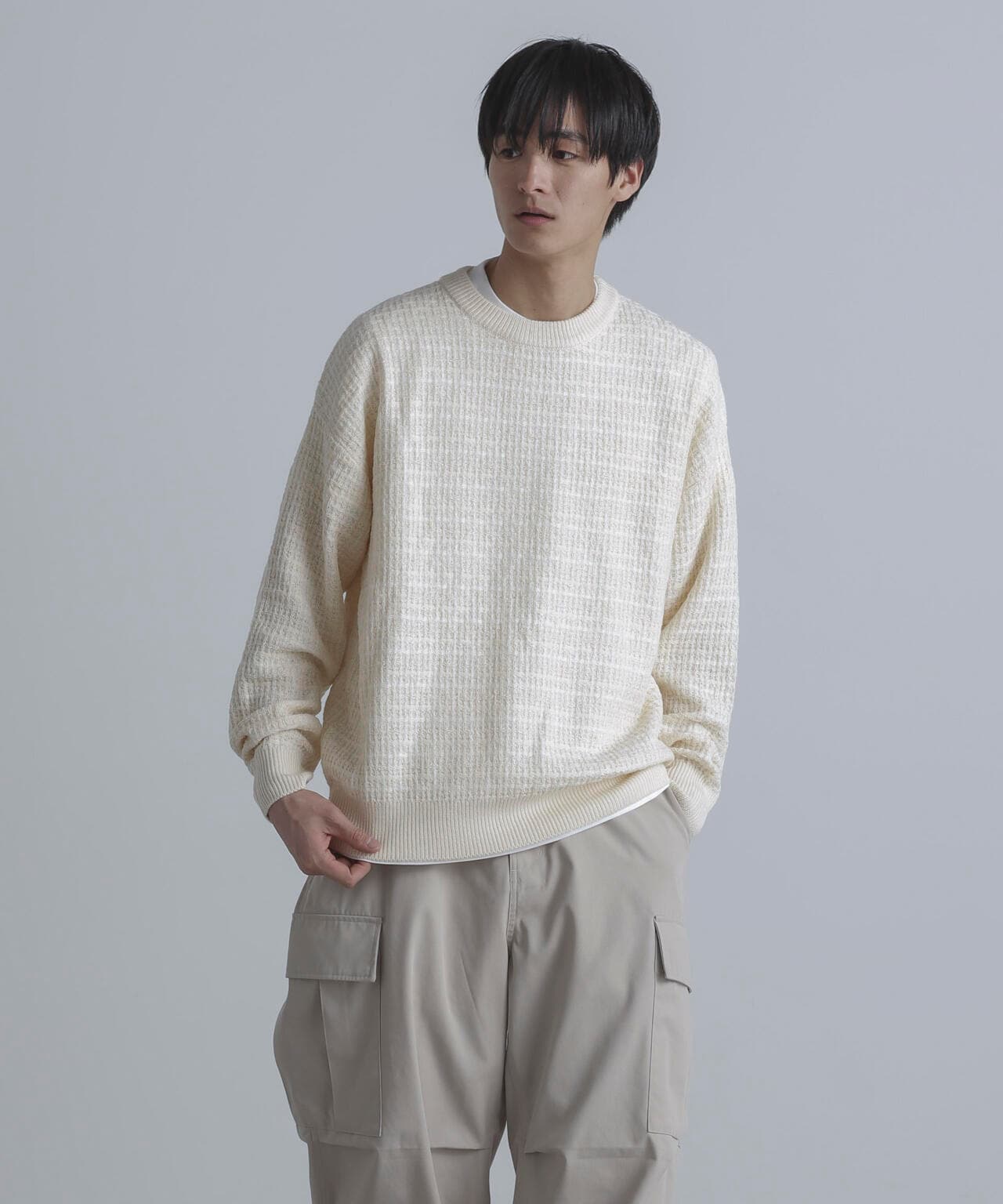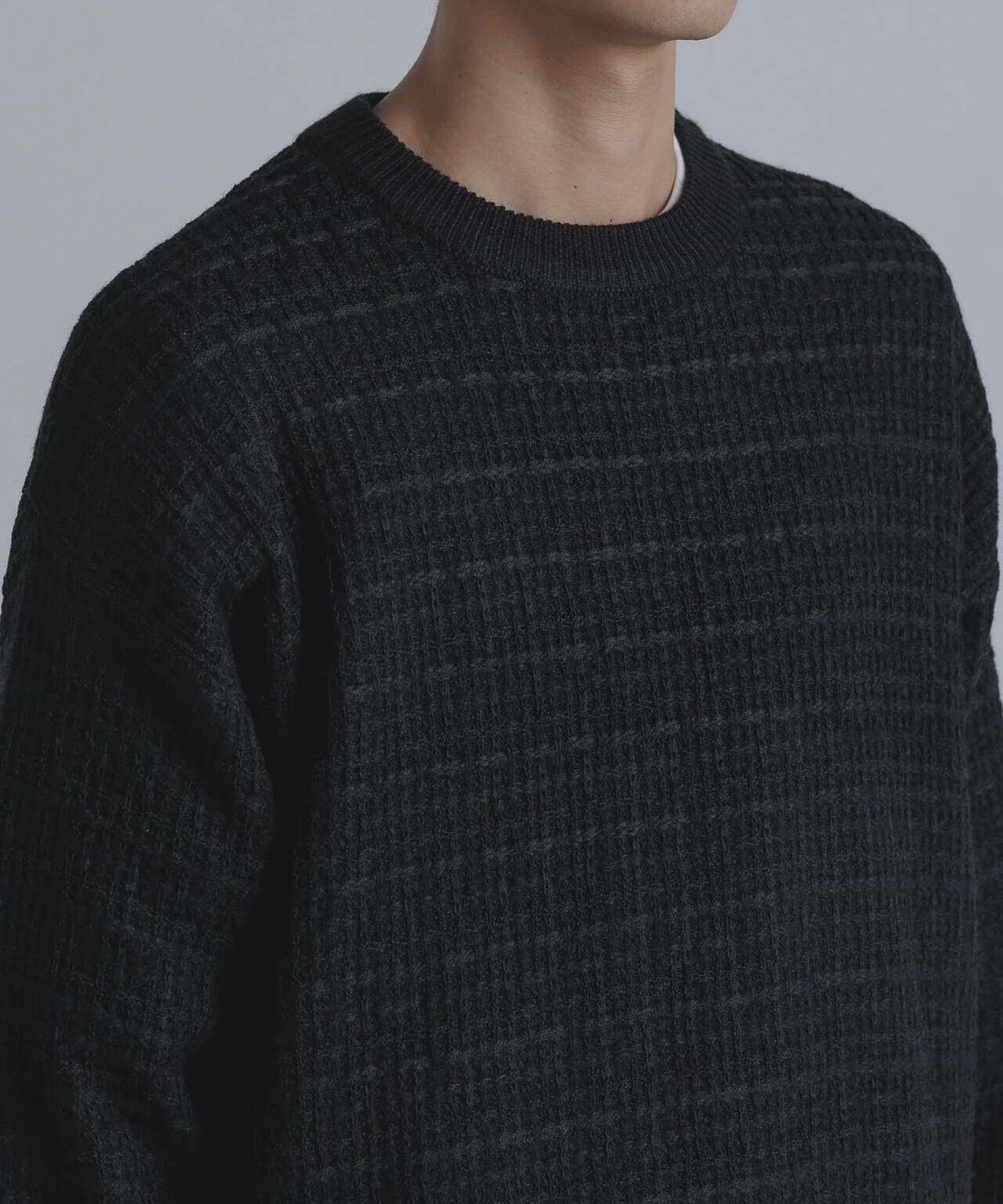 ・格子状の凸凹した編地を使用したニット