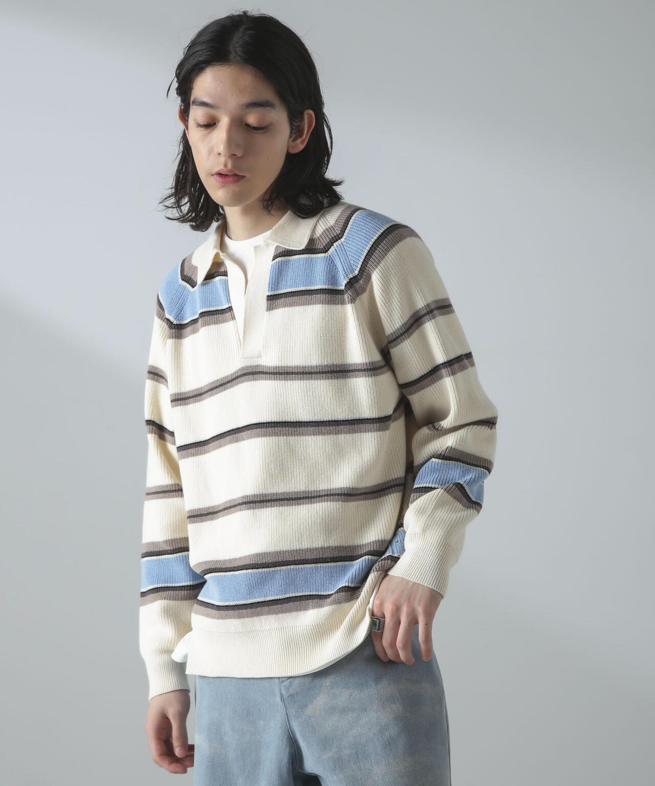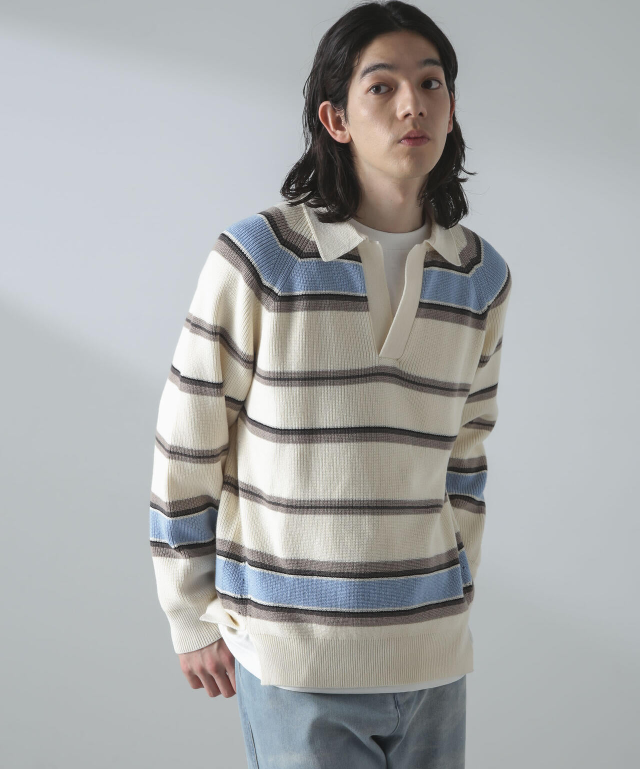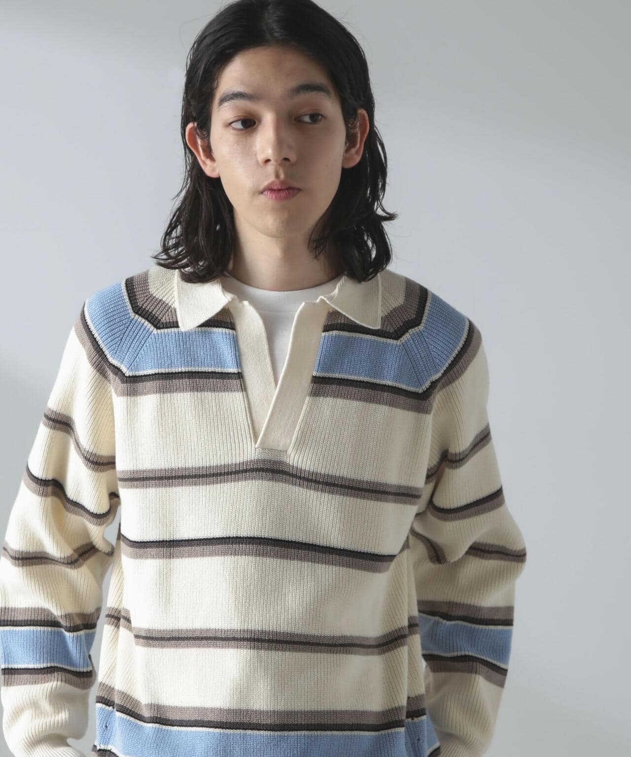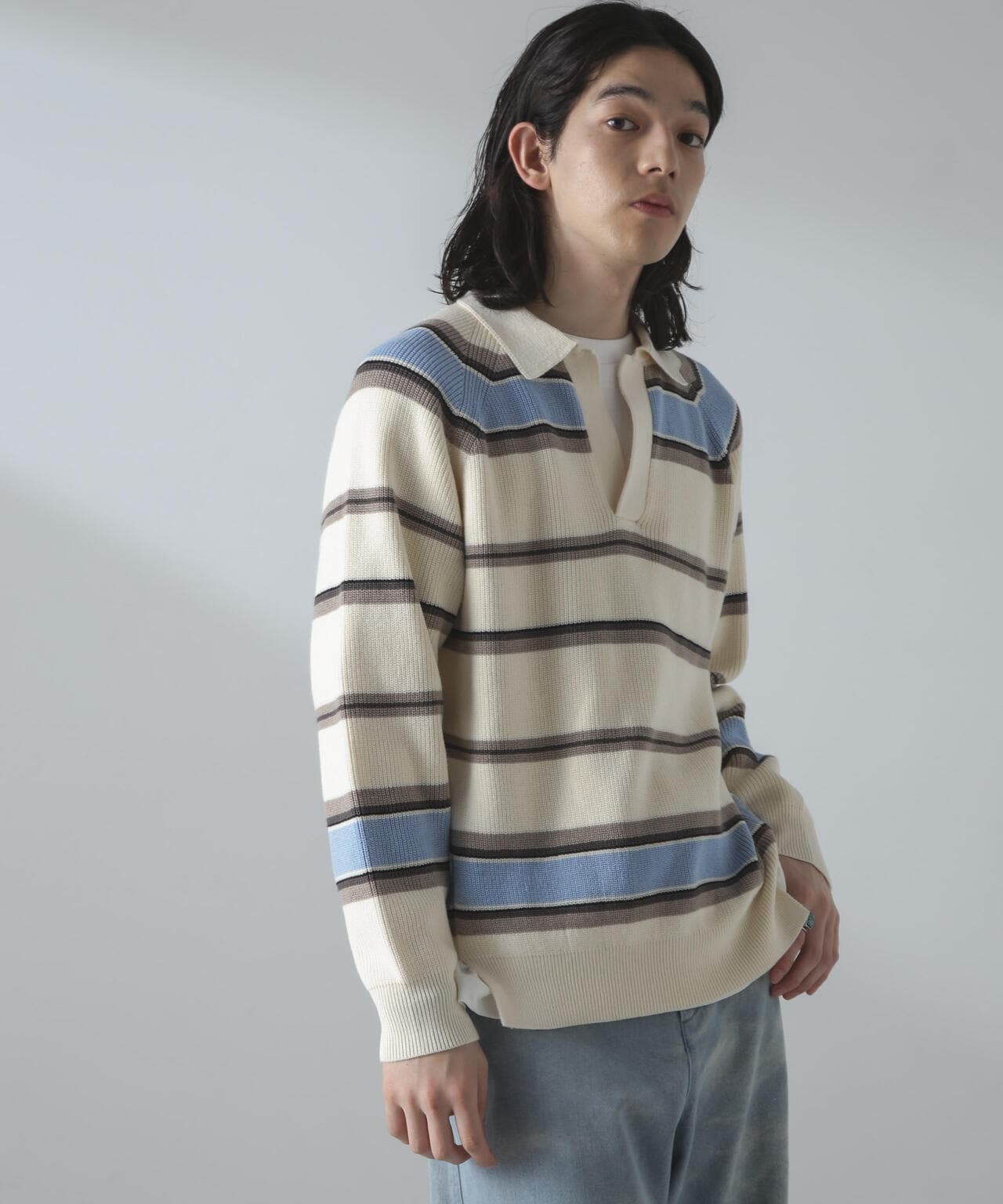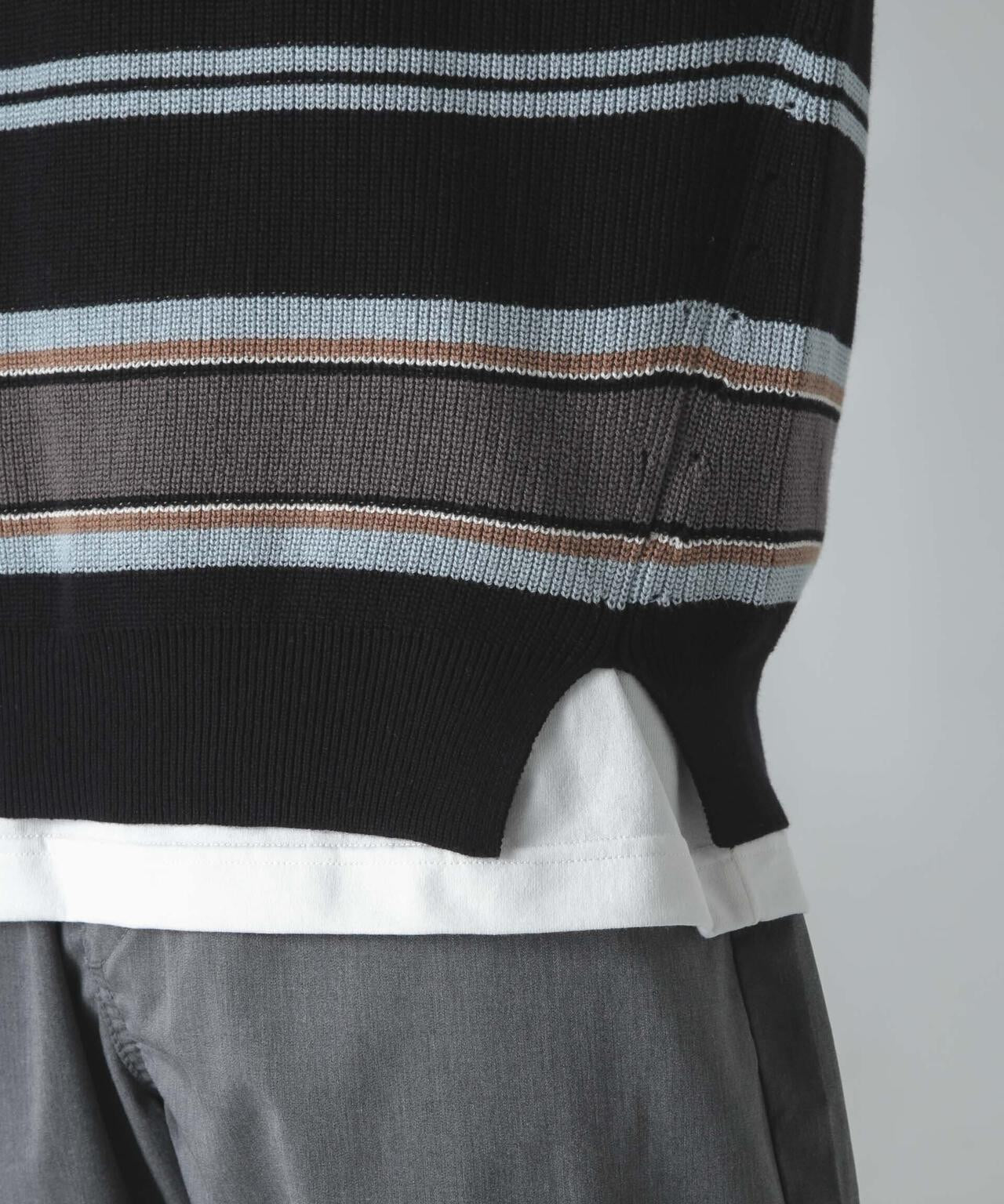ドライコットンランダムボーダーポロニット