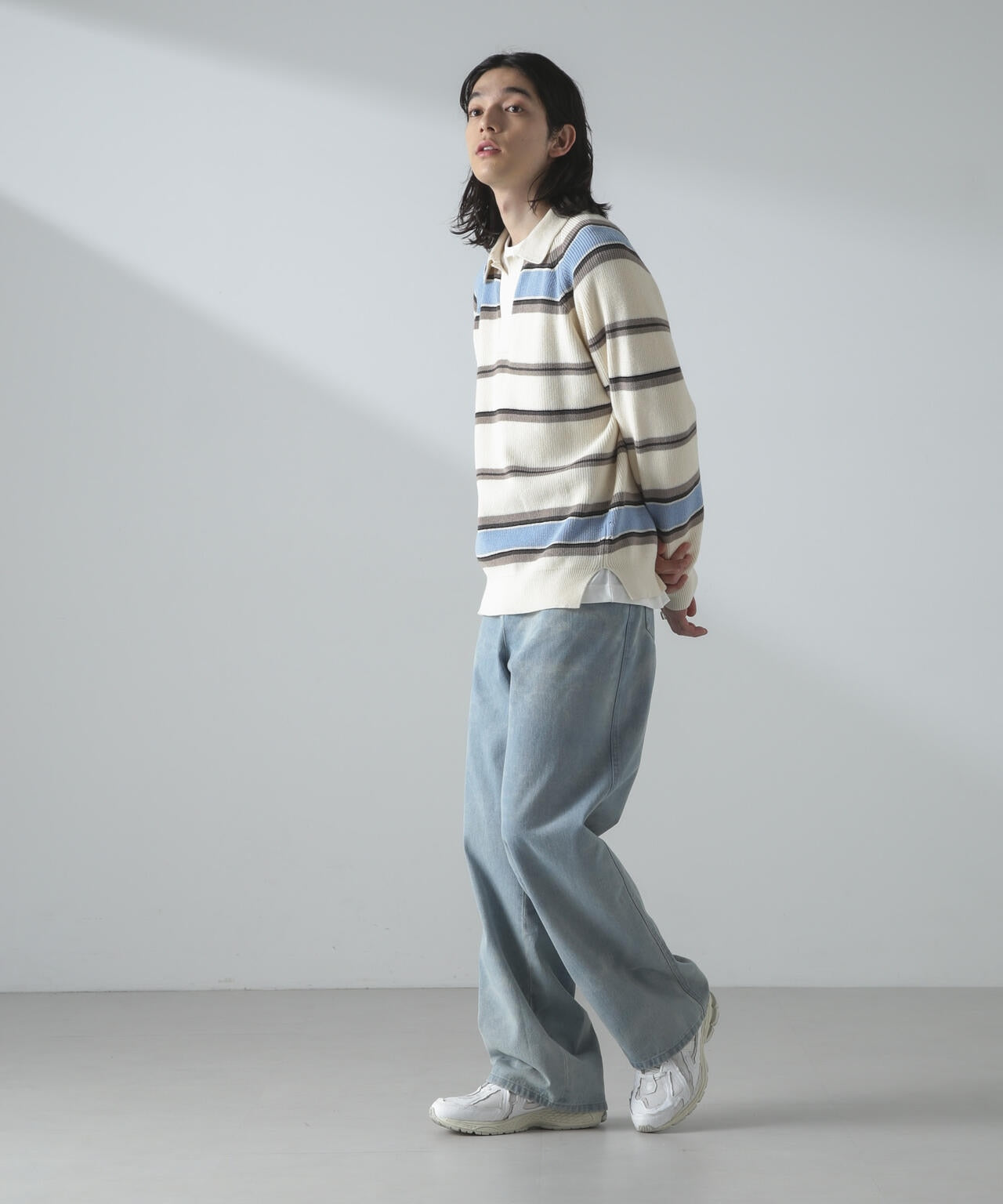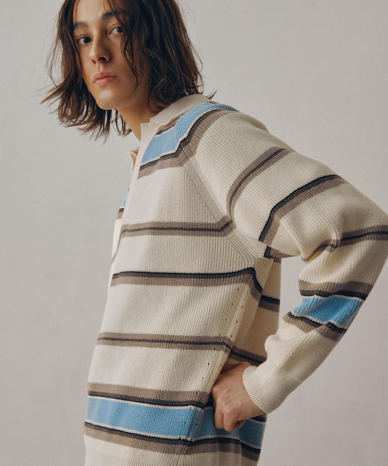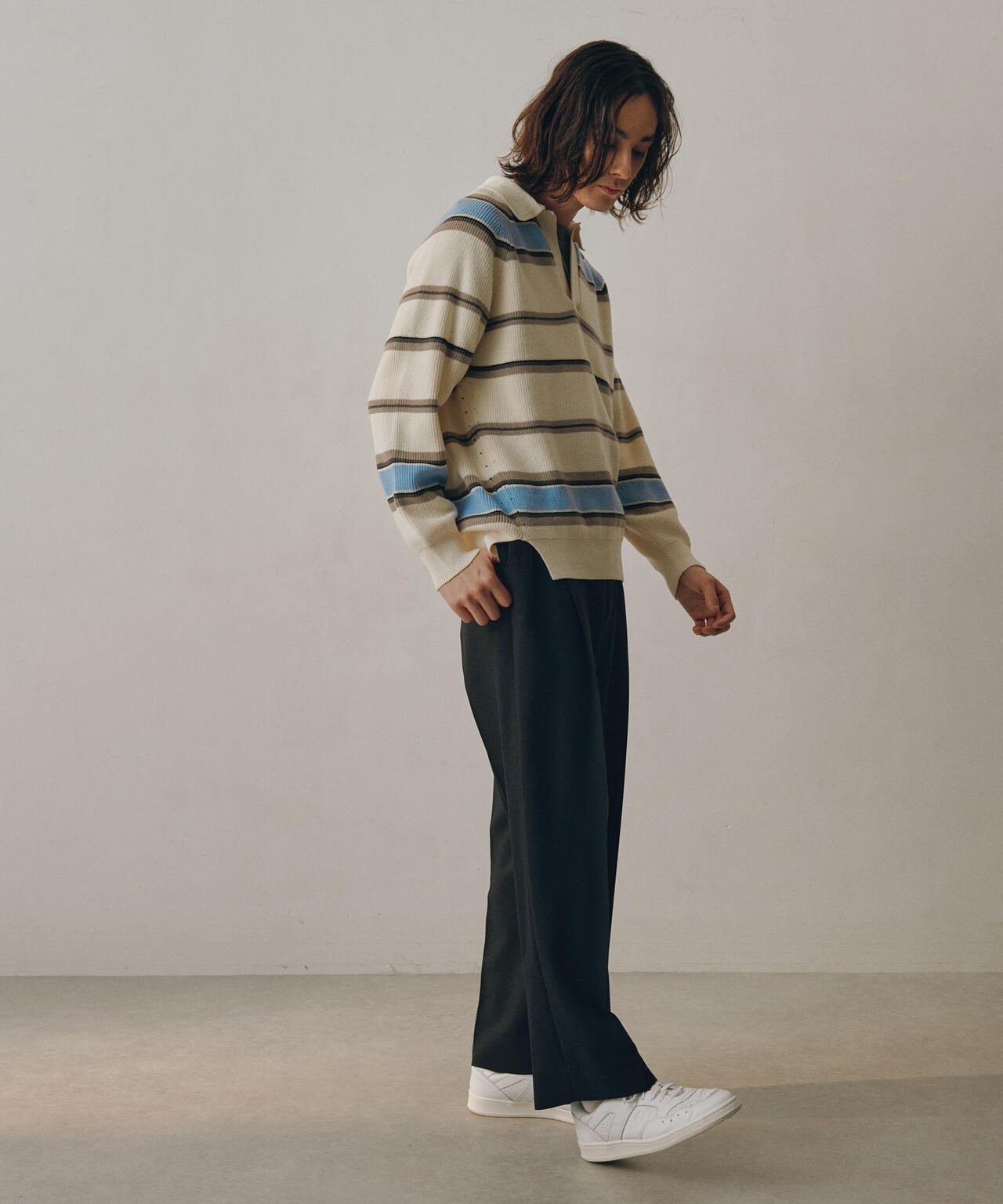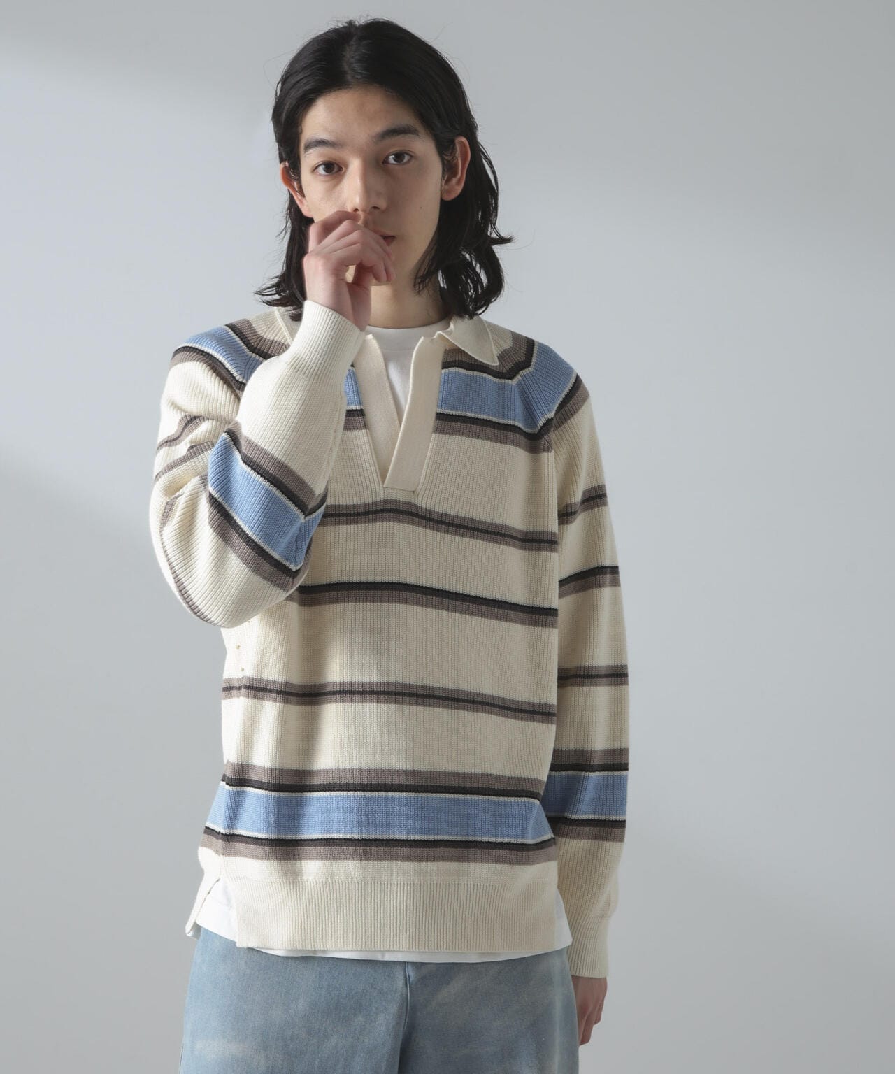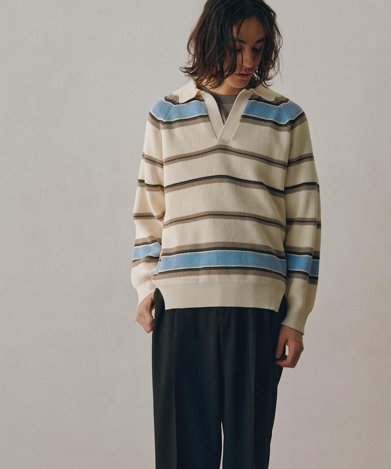 ドライコットンランダムボーダーポロニット