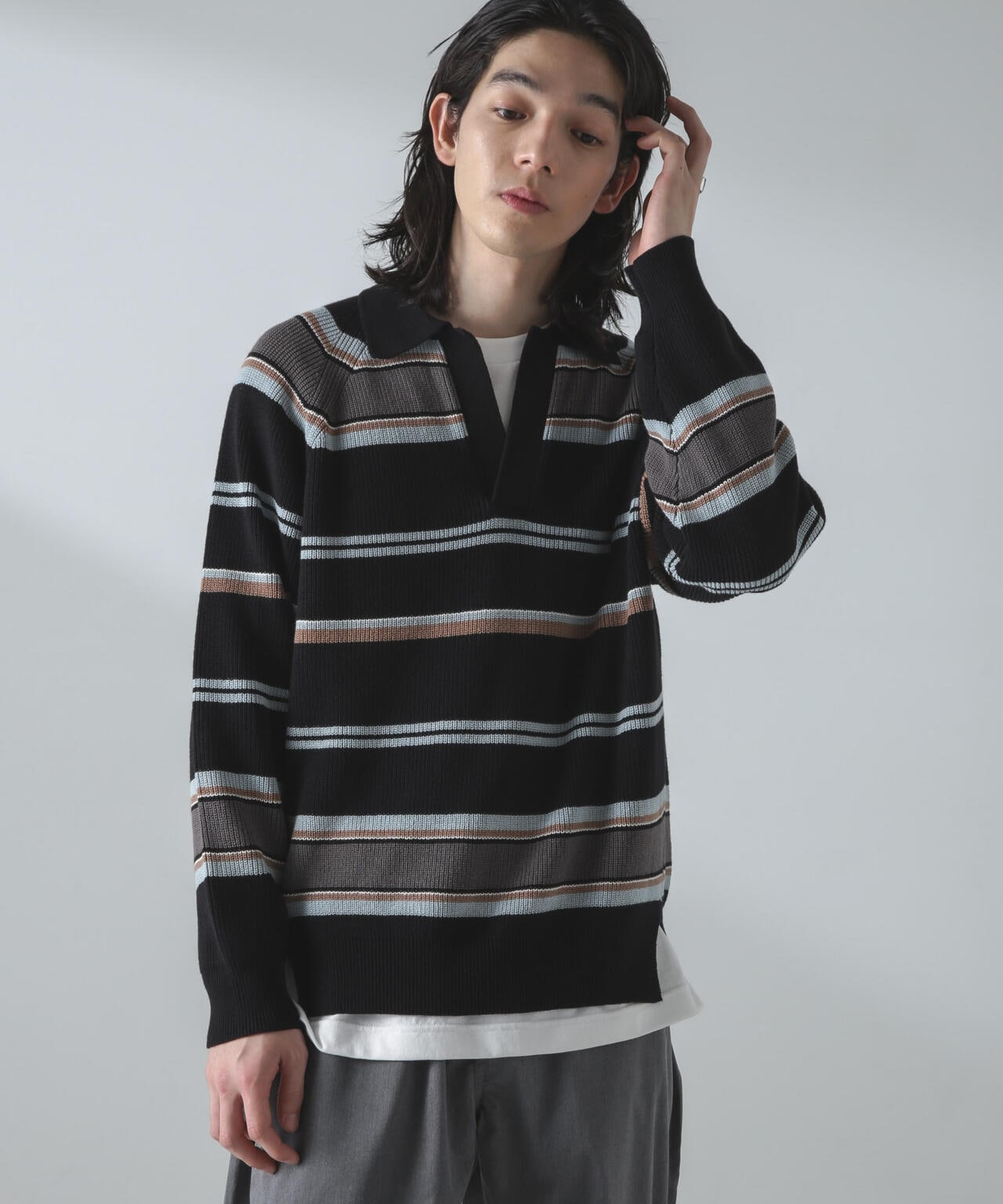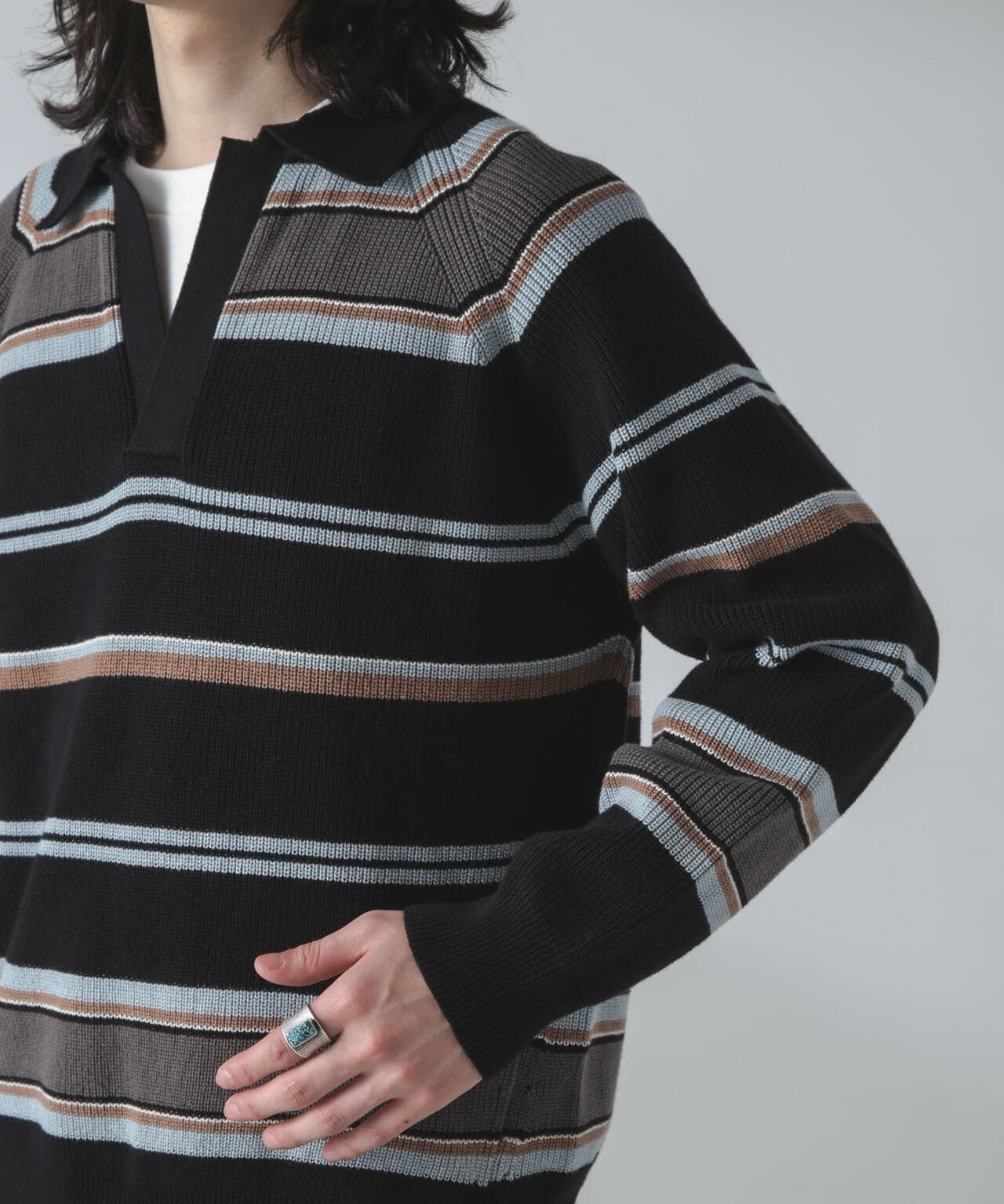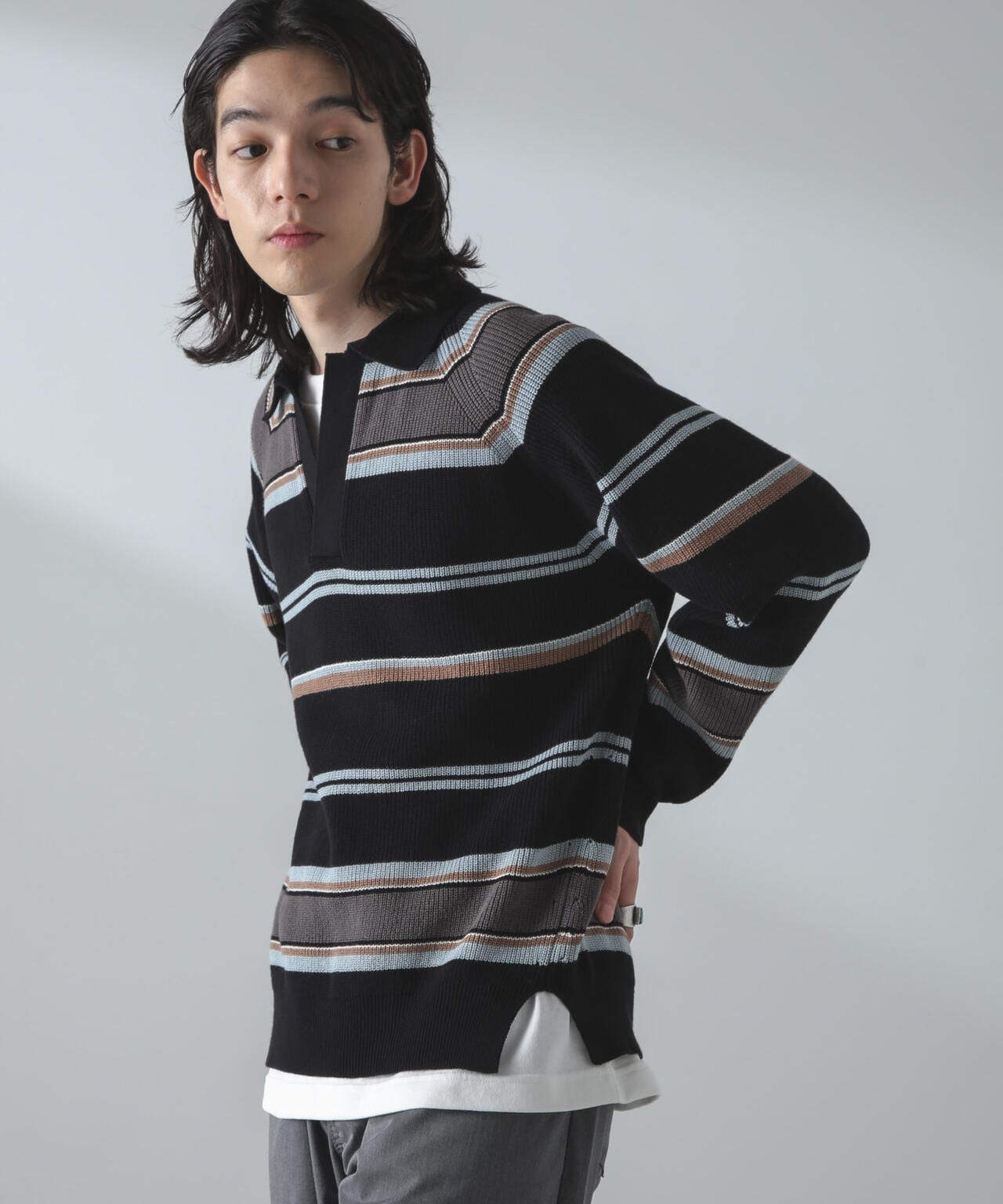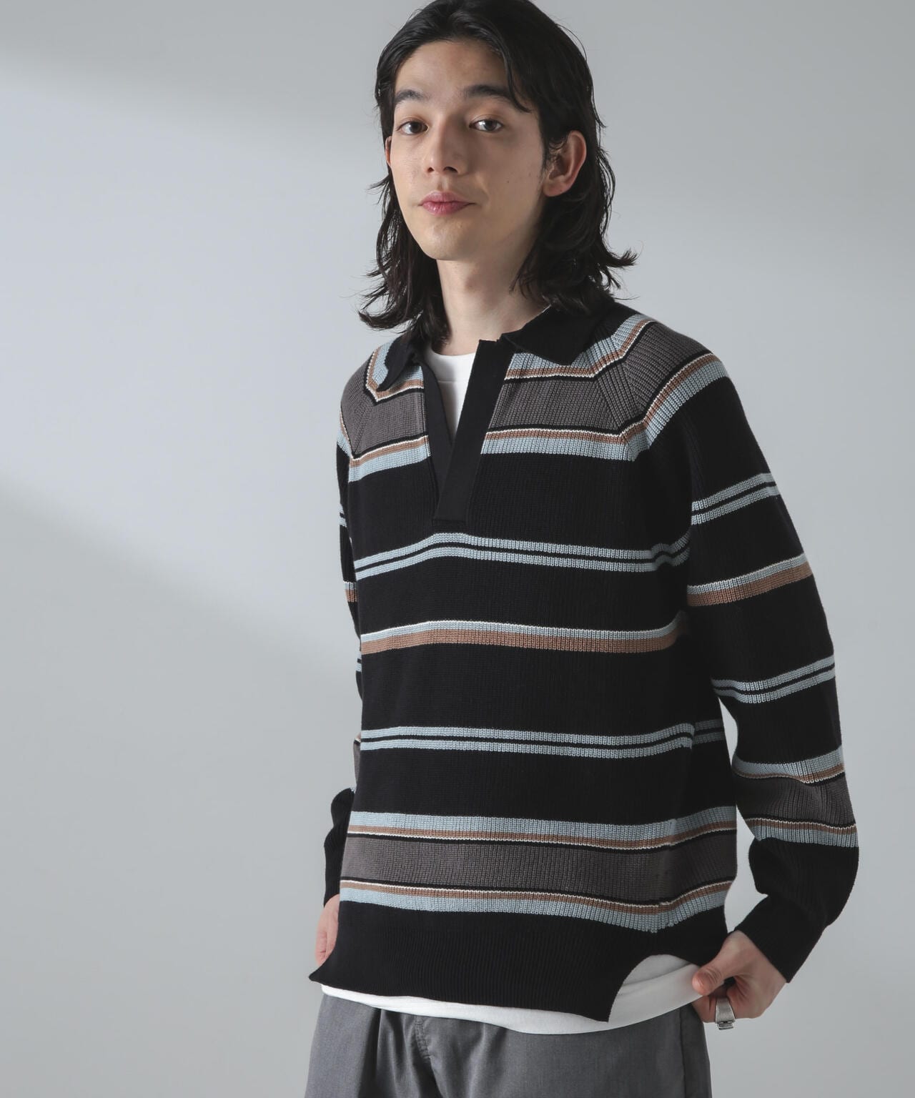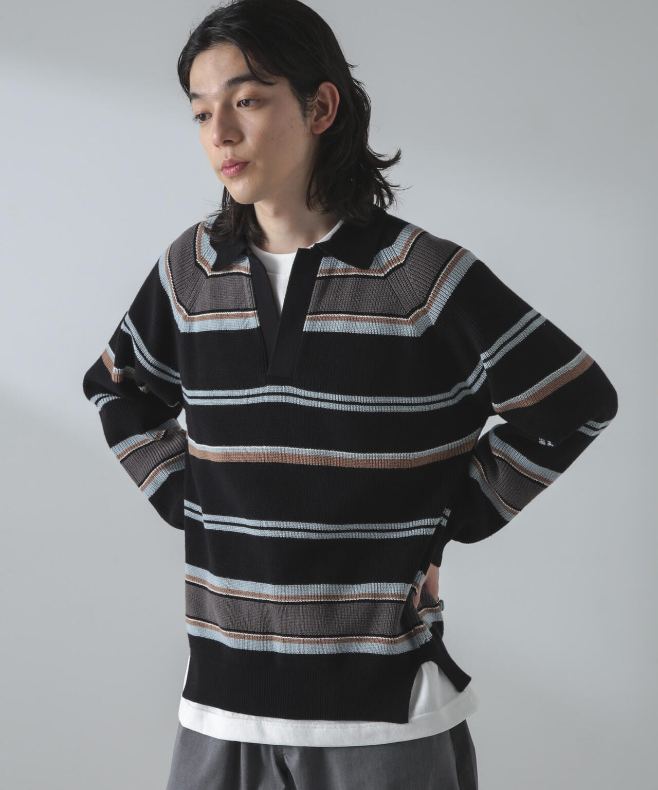 ・ランダムボーダーのトレンドポロニット