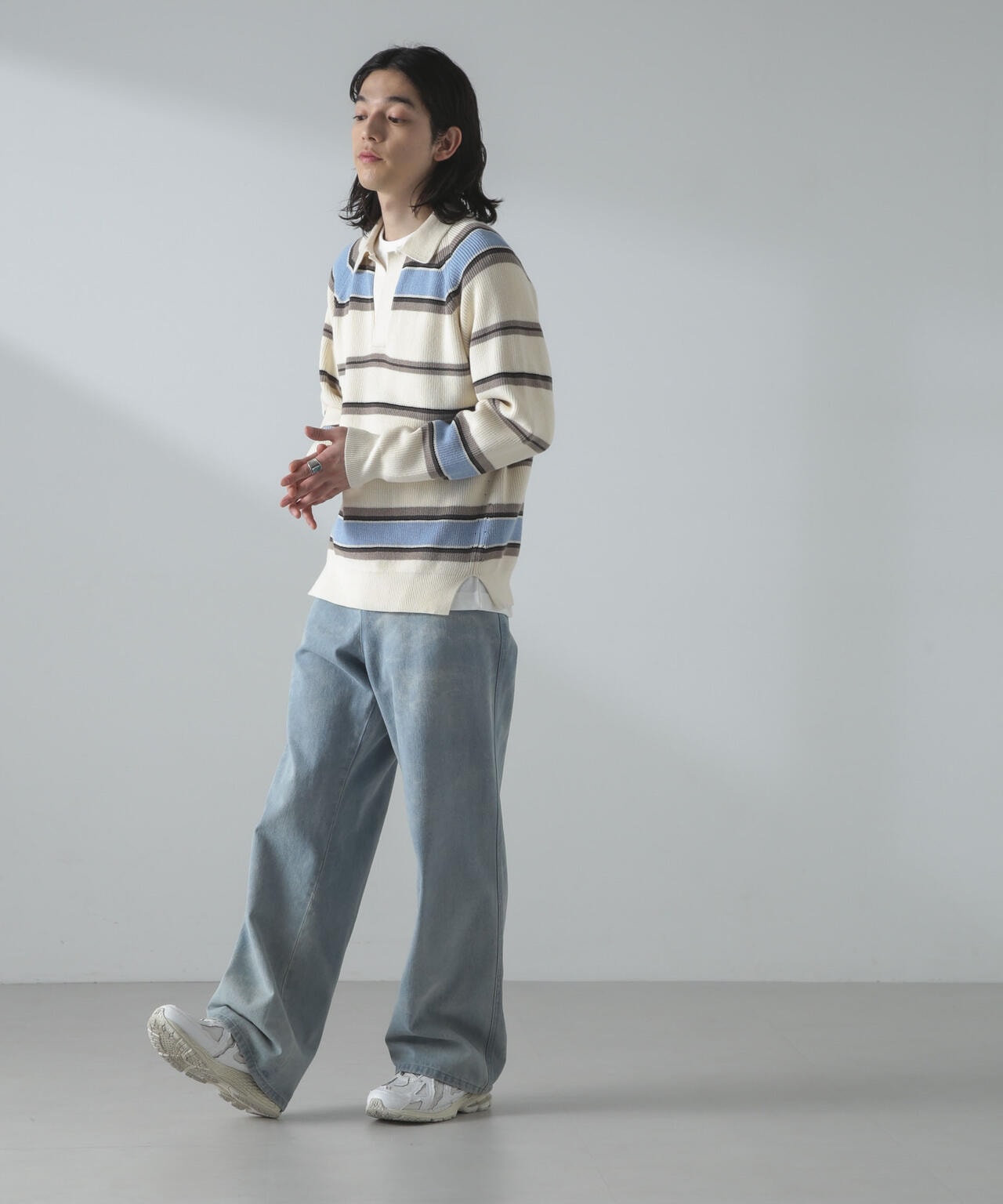 インナーにはTシャツはもちろん、シャツを重ねてダブルカラーでレイヤードするのも今年らしくてオススメです。