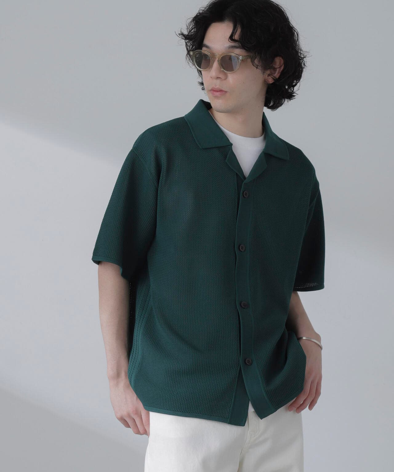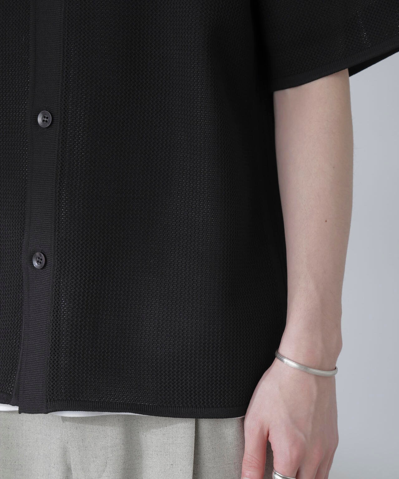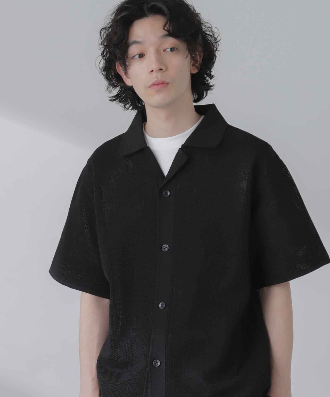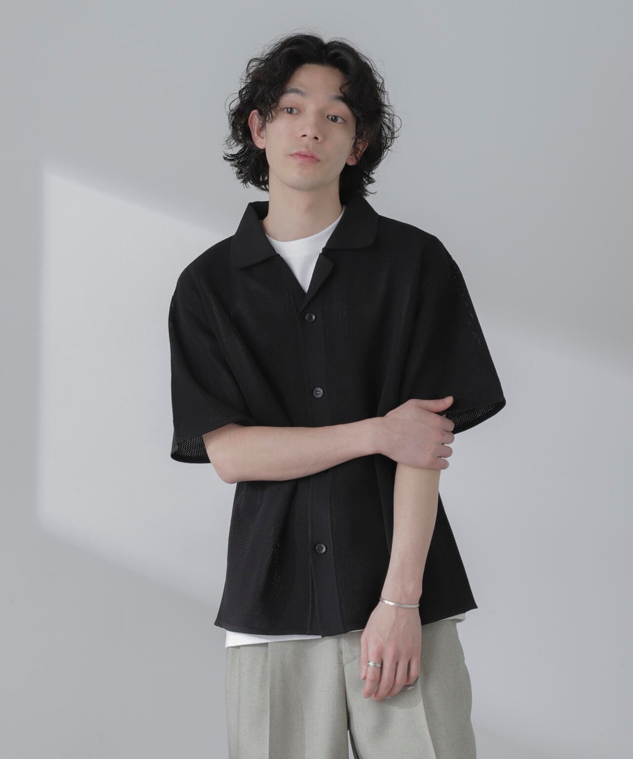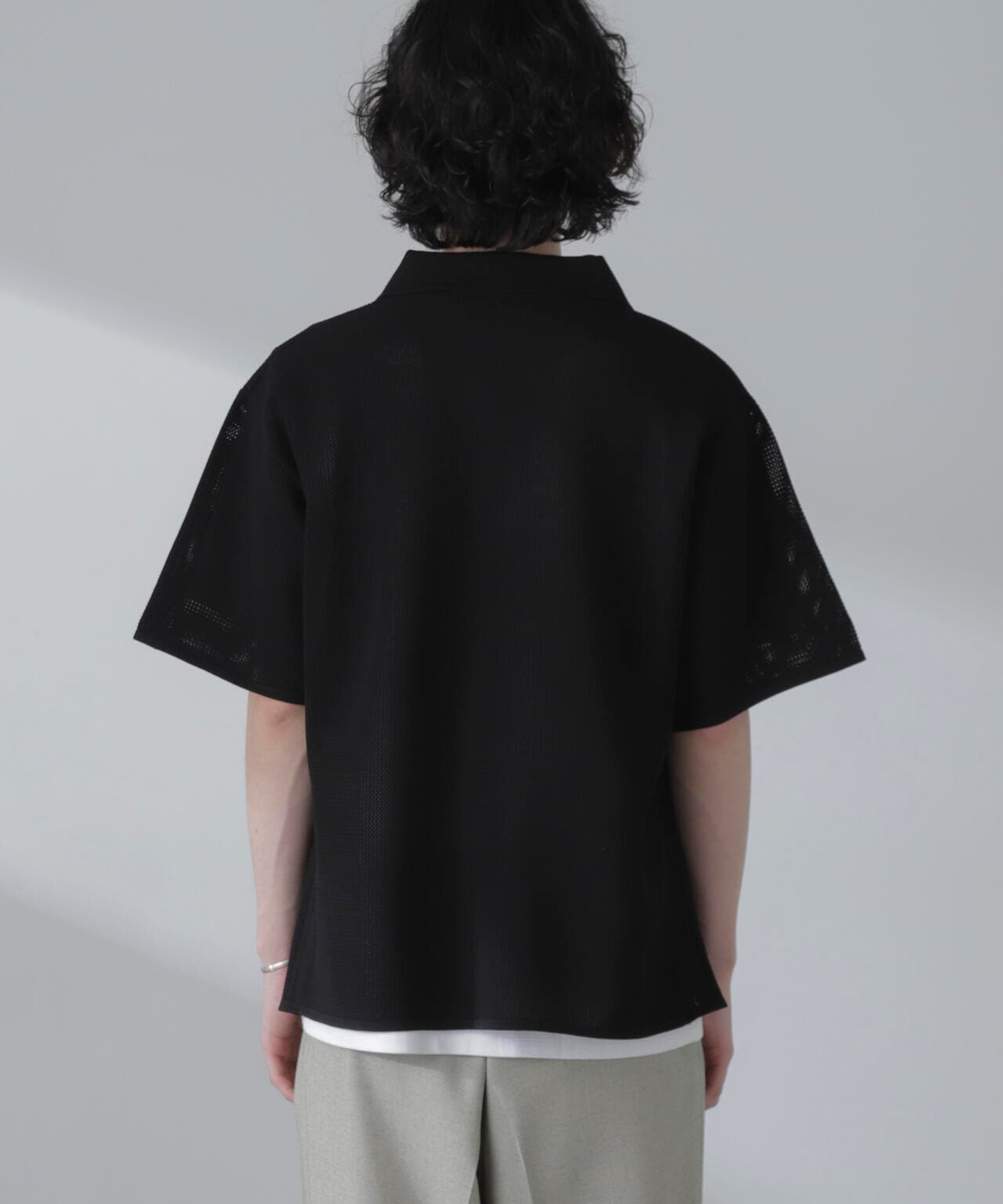 ポリエステル糸を使用したメッシュ感と軽やかさが特徴のニットウェアシリーズから登場のオープンニットカラーシャツ。