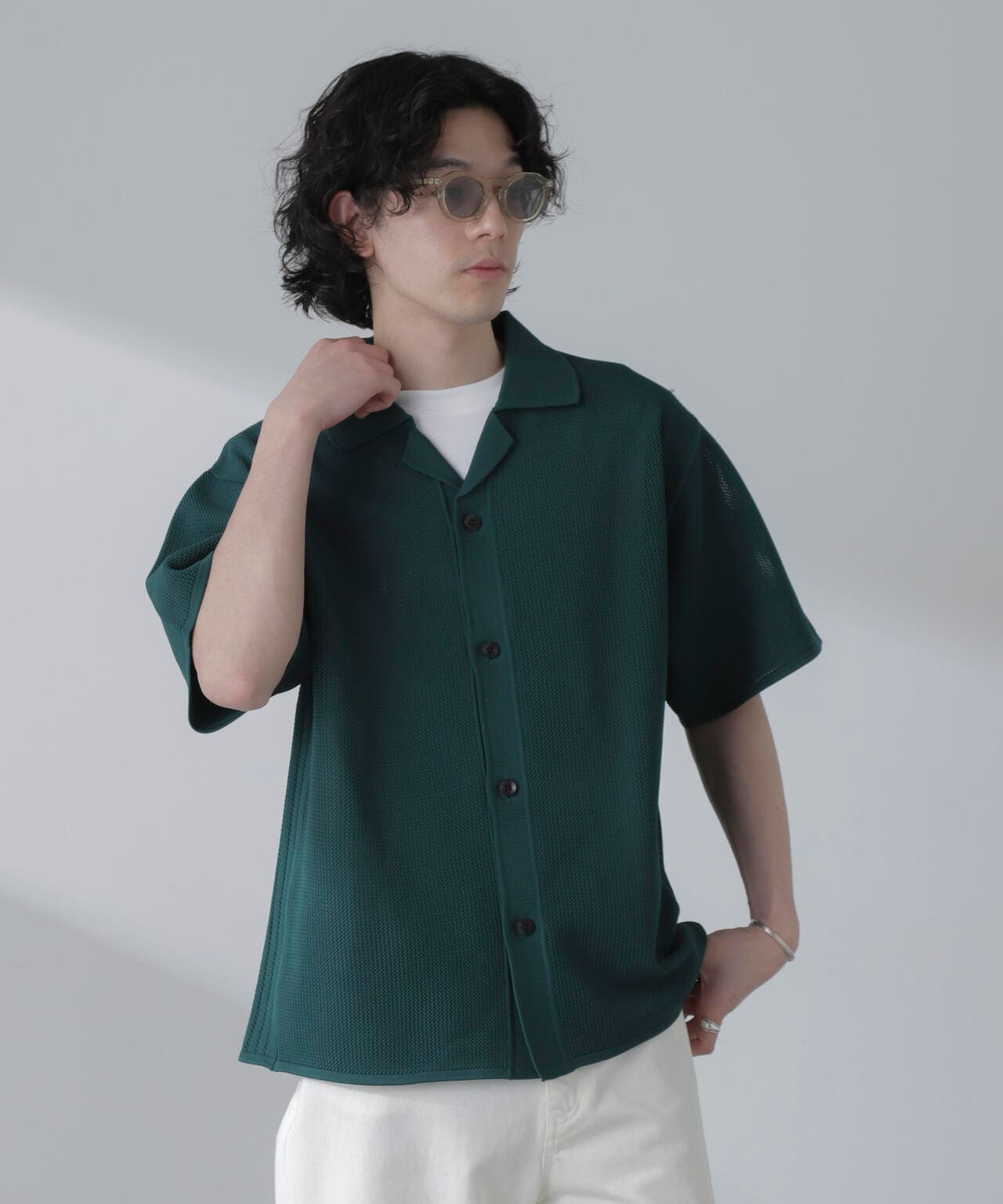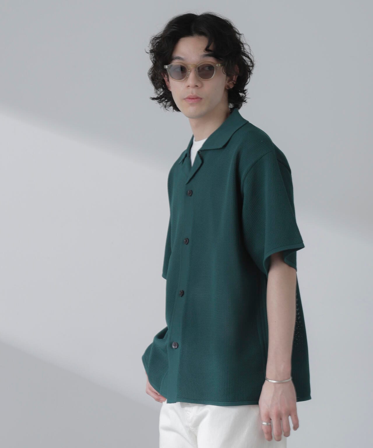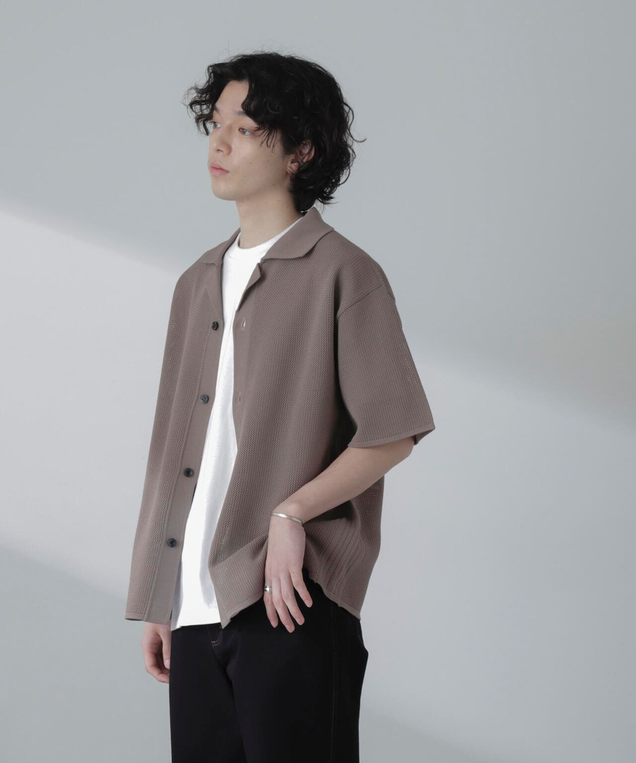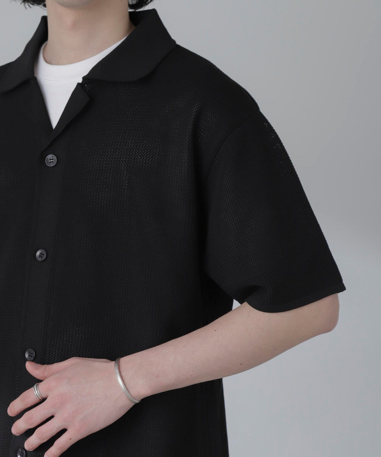 ポリエステル糸を使用したメッシュ感と軽やかさが特徴のニットウェアシリーズから登場のオープンニットカラーシャツ。