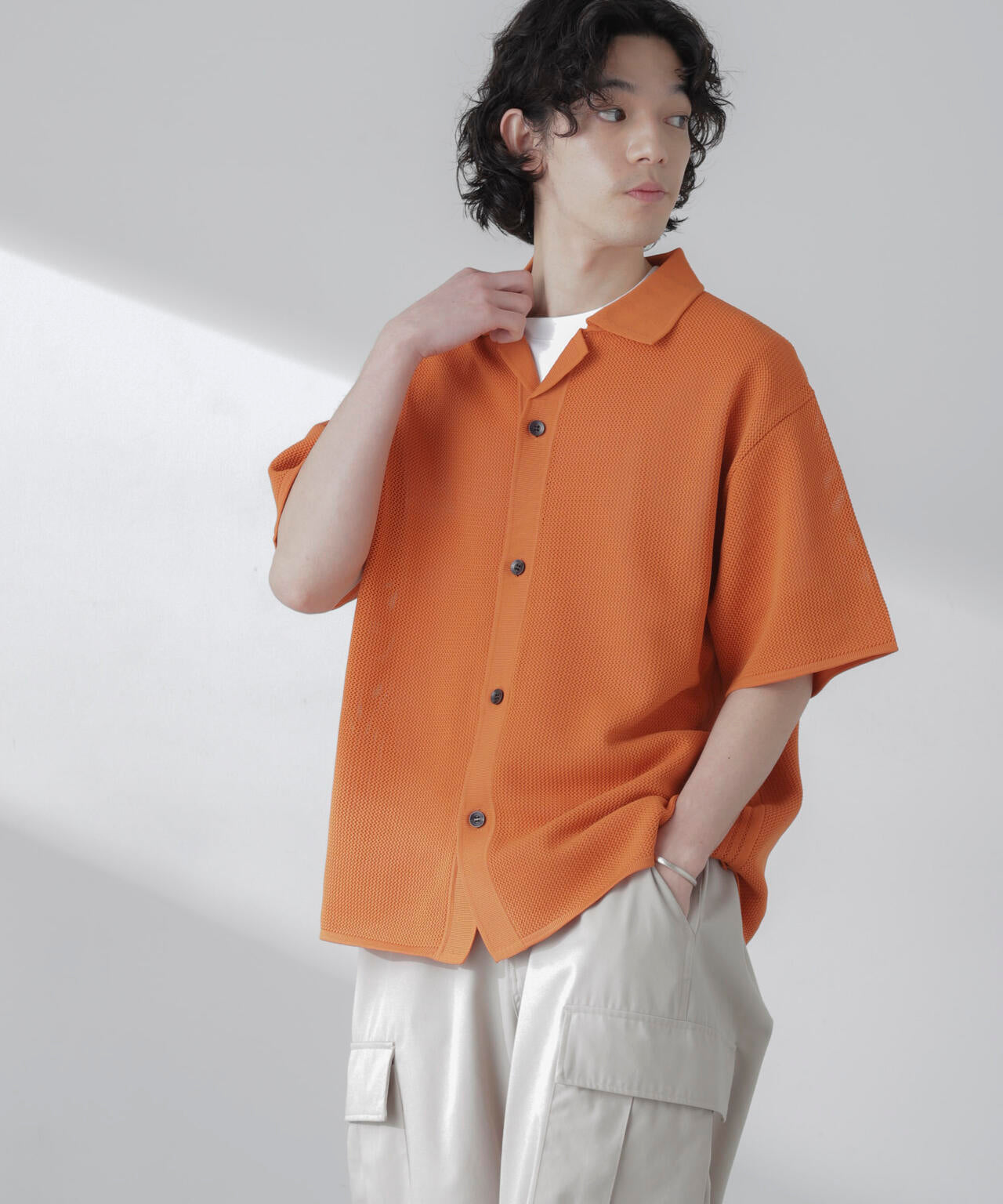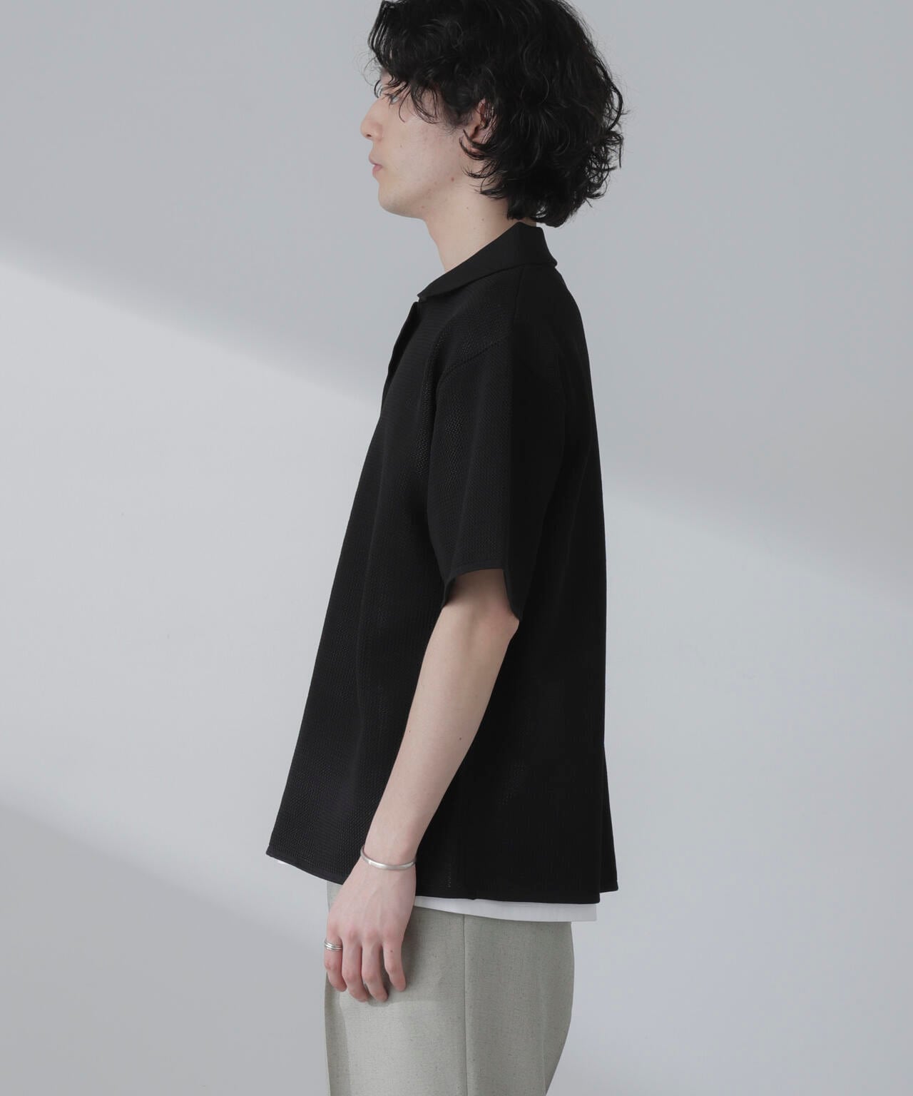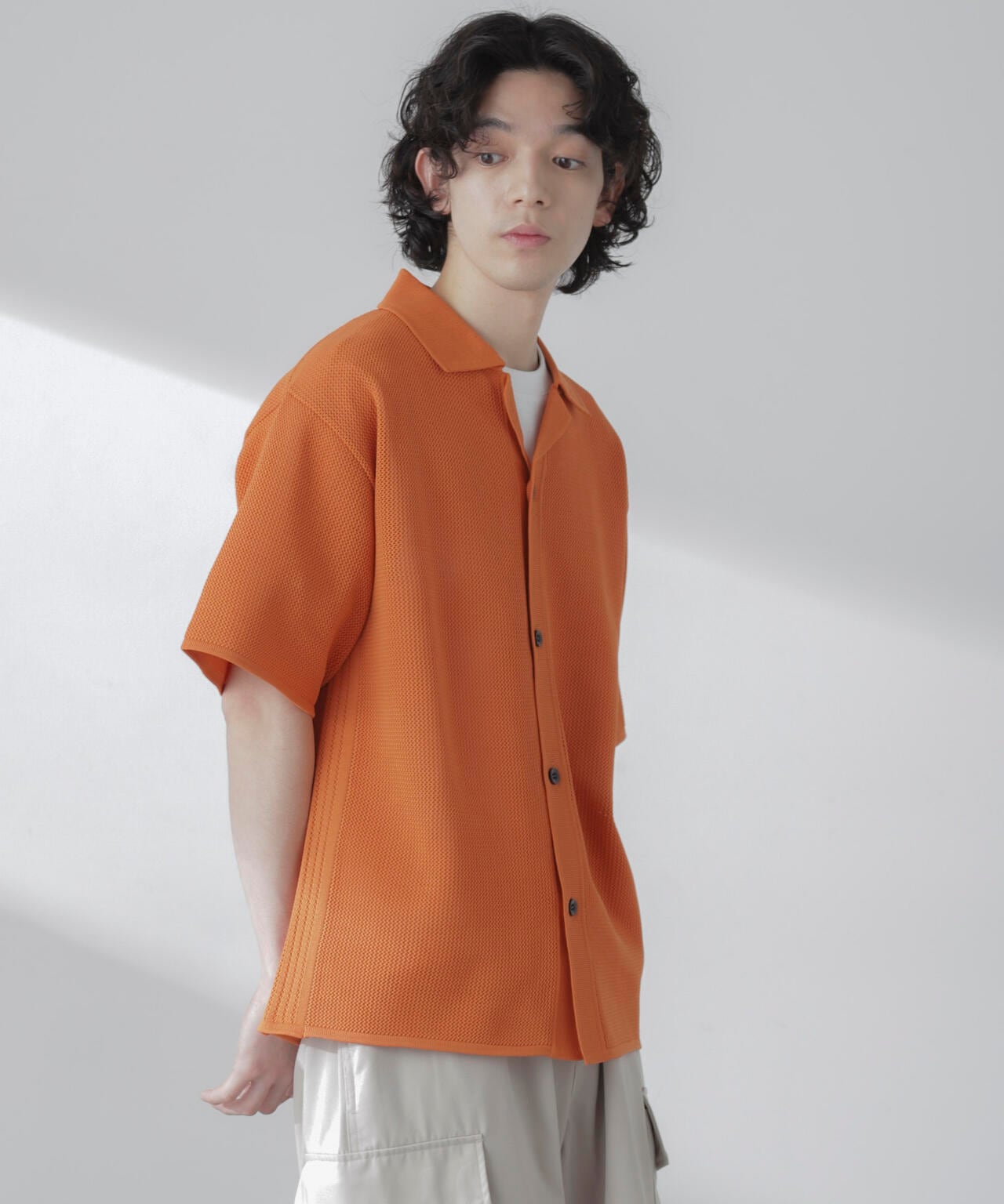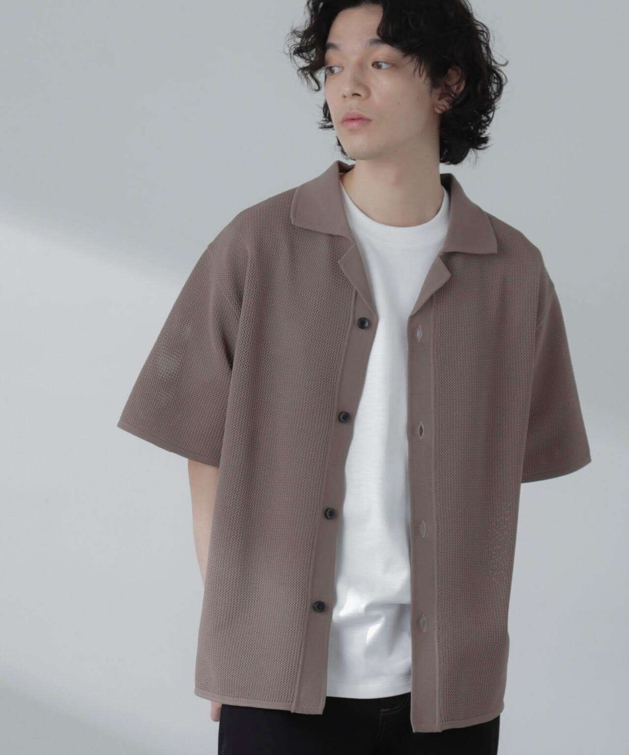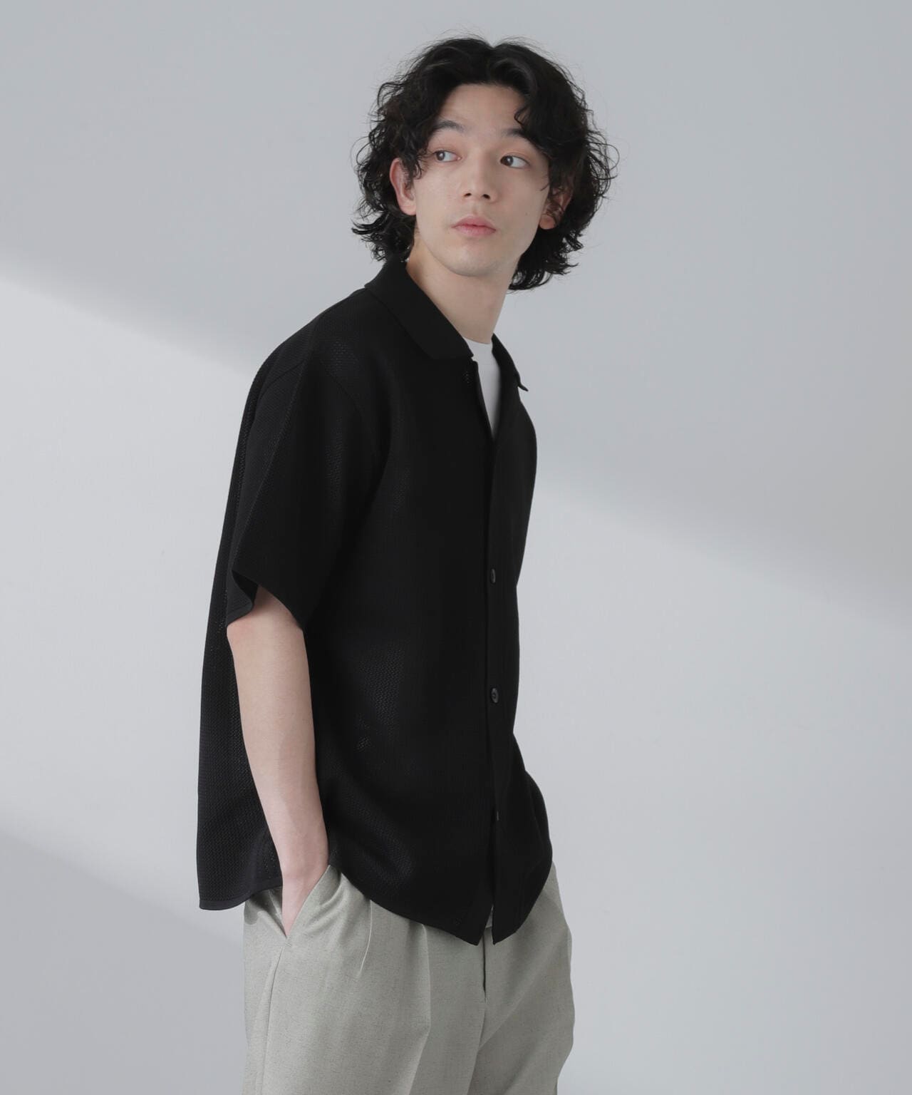 ポリエステル糸を使用したメッシュ感と軽やかさが特徴のニットウェアシリーズから登場のオープンニットカラーシャツ。