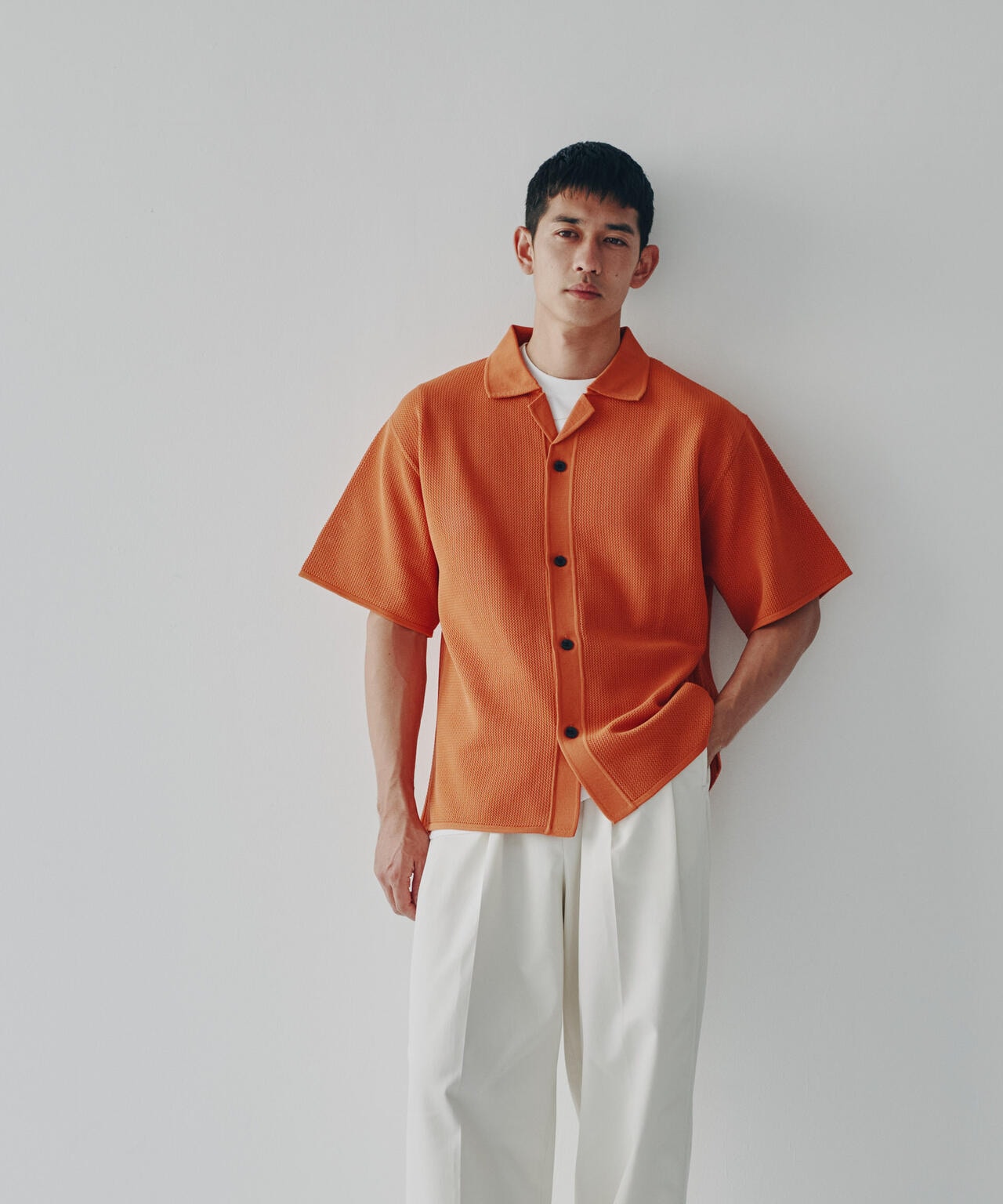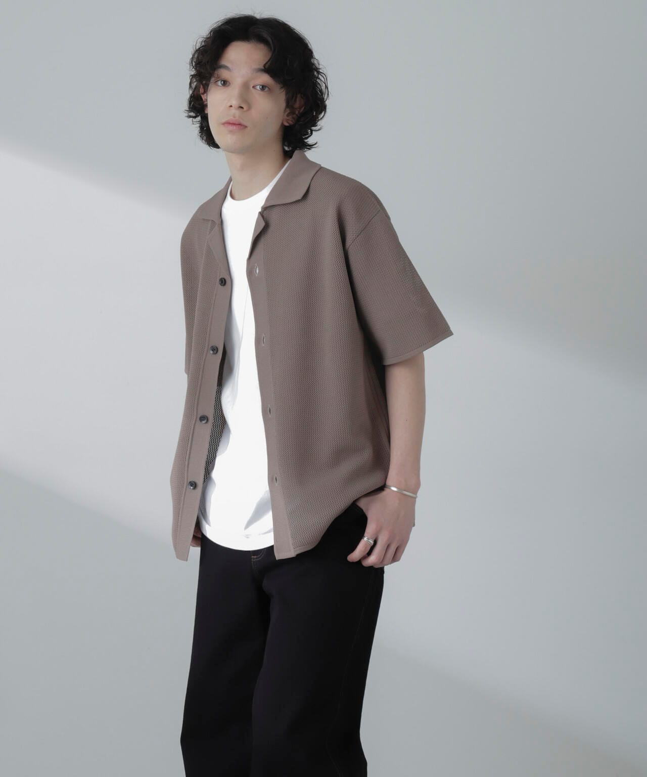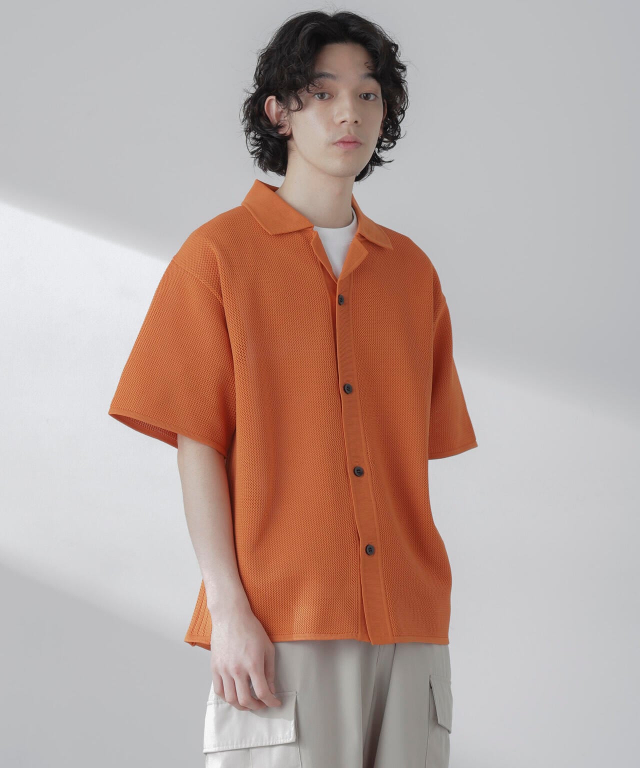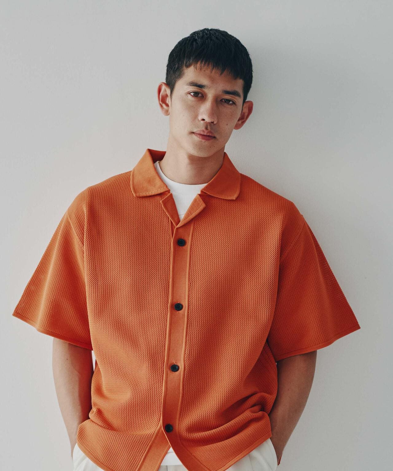 ポリエステル糸を使用したメッシュ感と軽やかさが特徴のニットウェアシリーズから登場のオープンニットカラーシャツ。