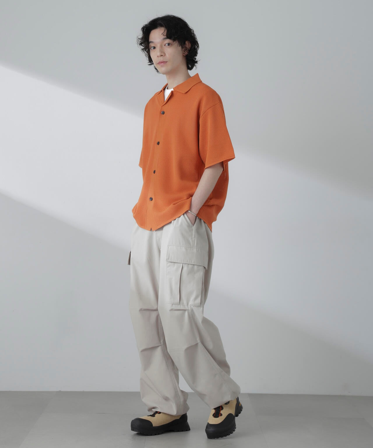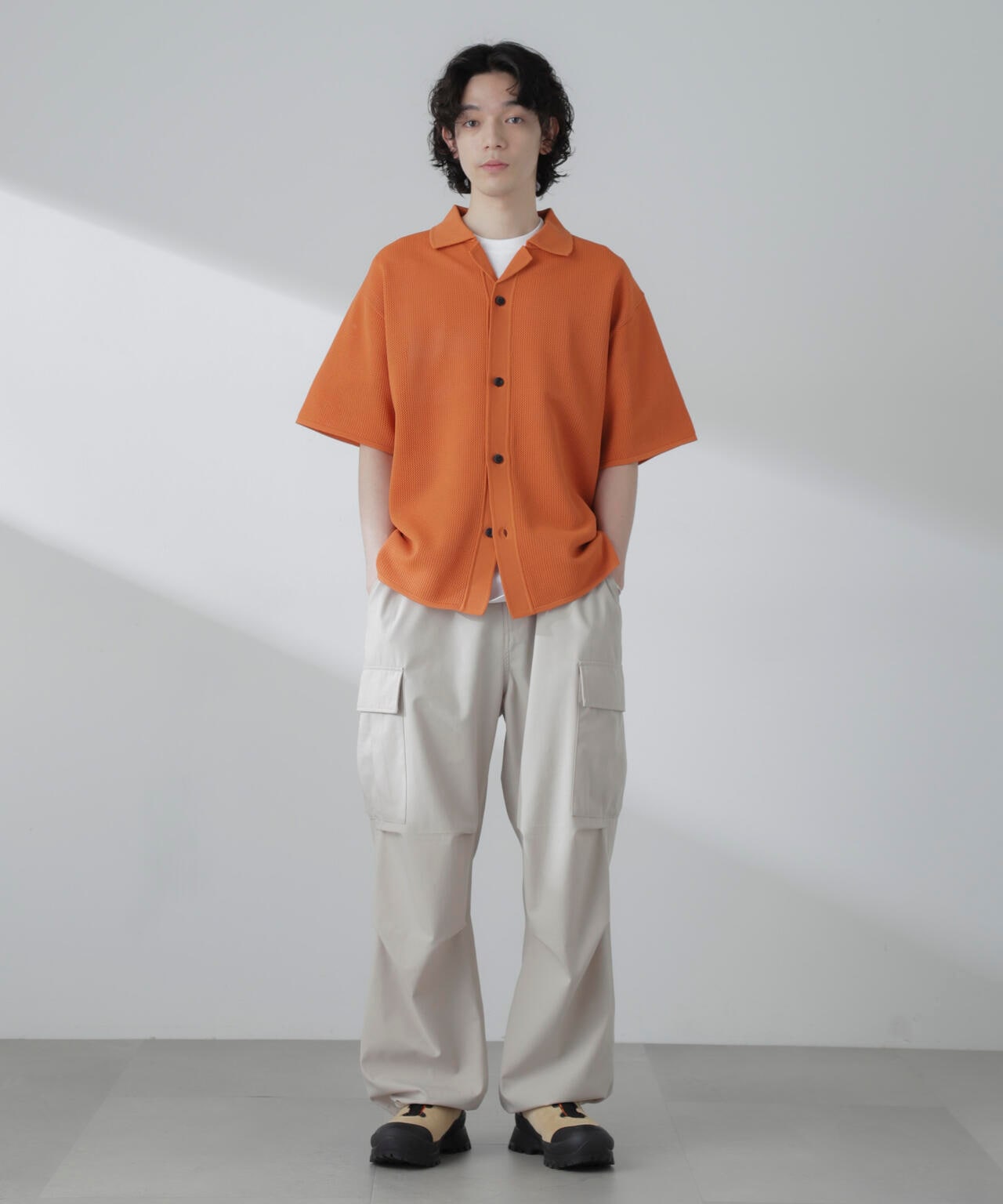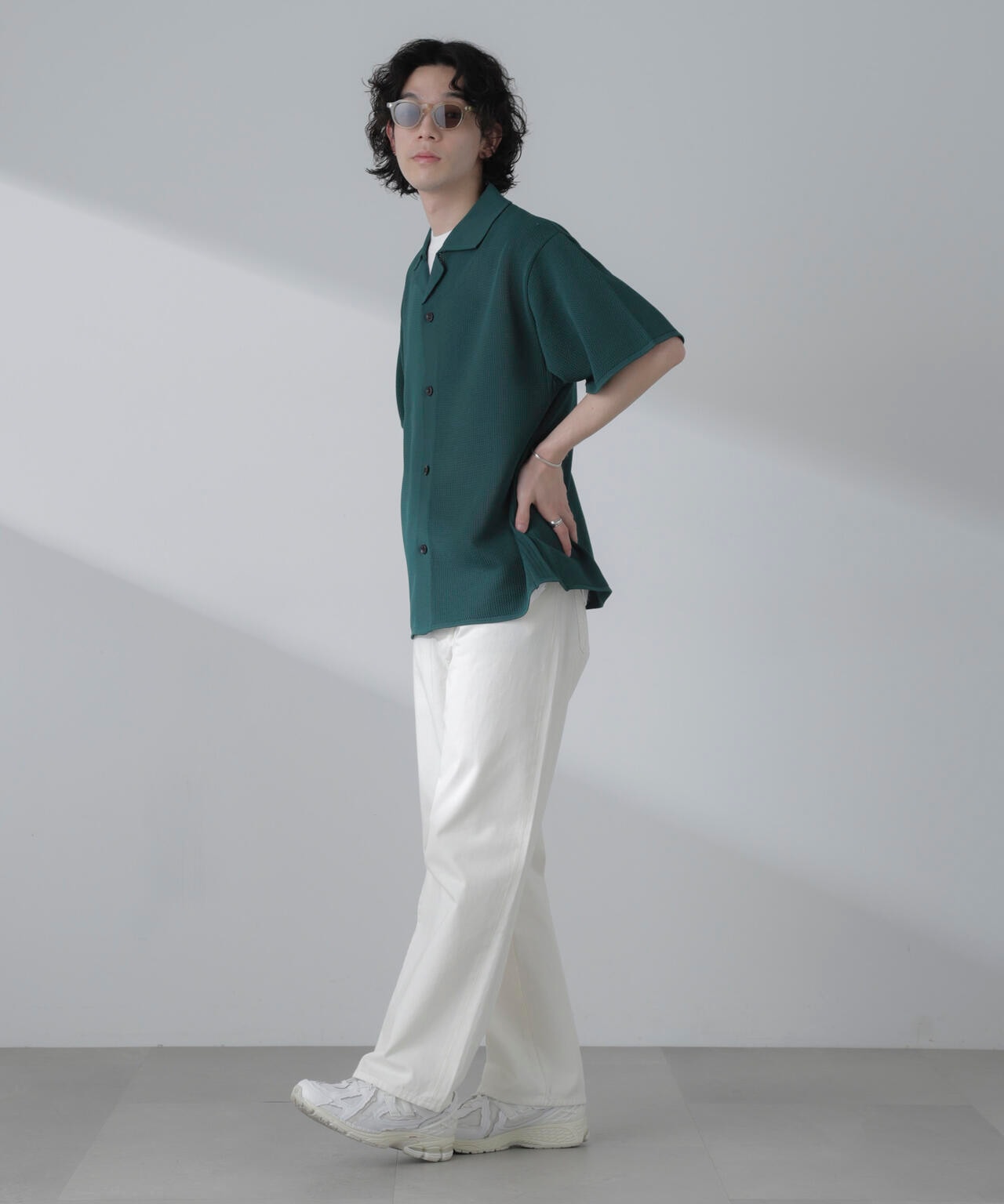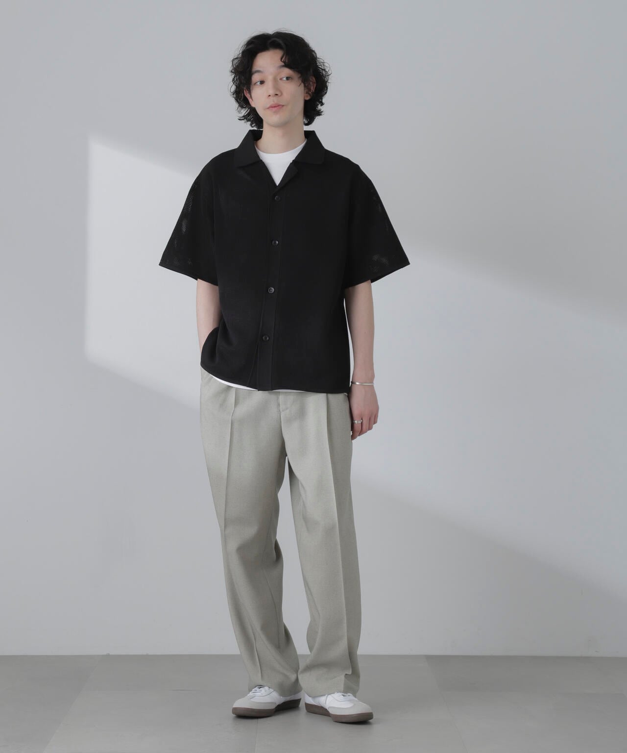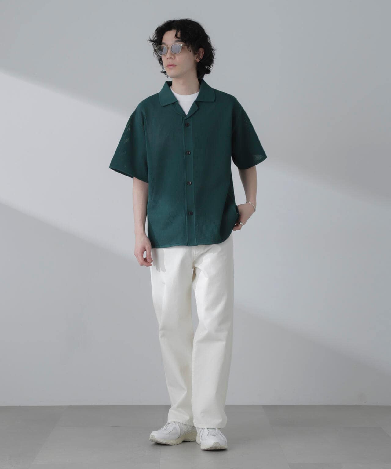 ポリエステル糸を使用したメッシュ感と軽やかさが特徴のニットウェアシリーズから登場のオープンニットカラーシャツ。