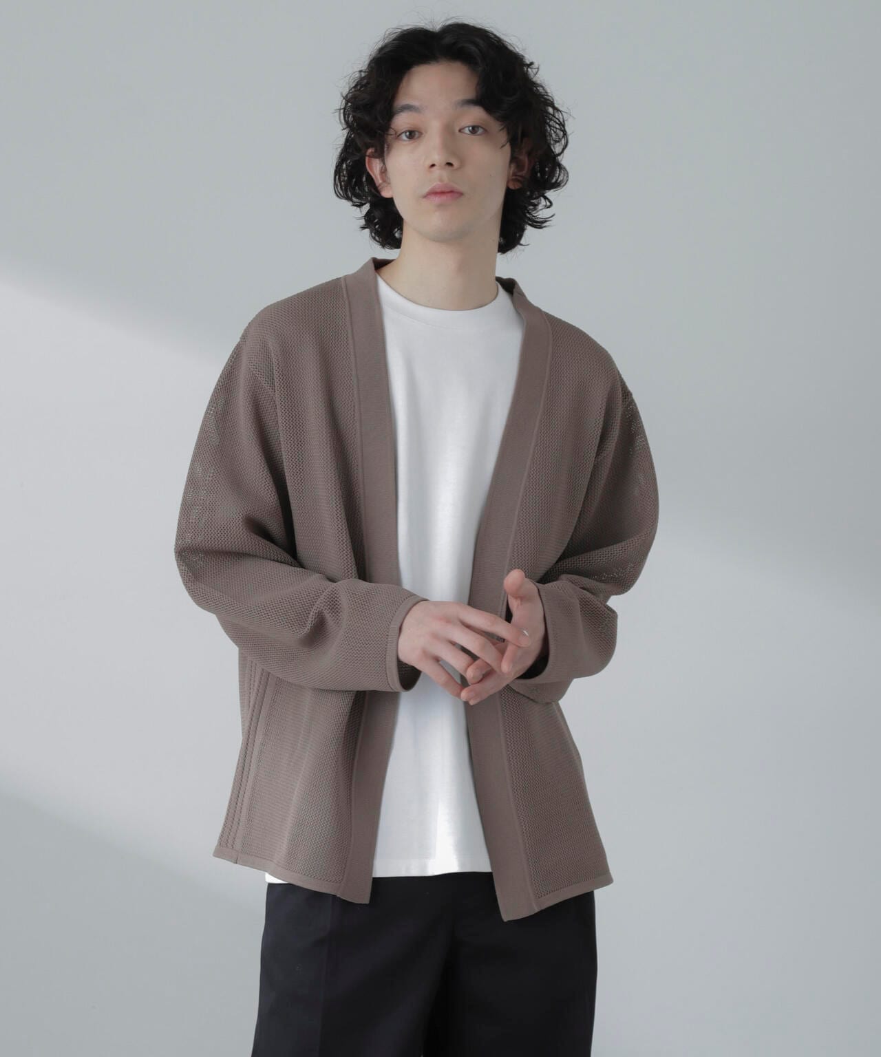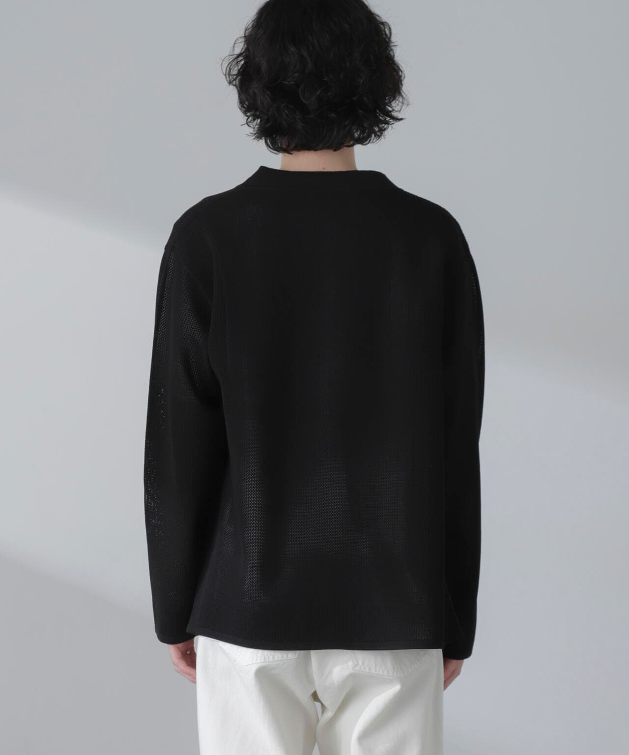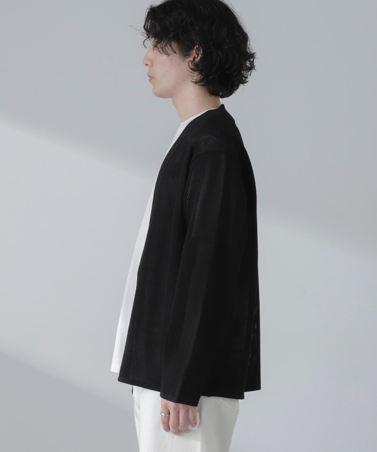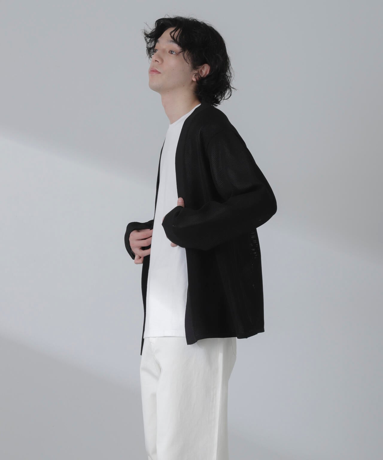 ポリエステル糸を使用したメッシュ感と軽さが特徴のニットウェアシリーズから登場のニットカーディガン。