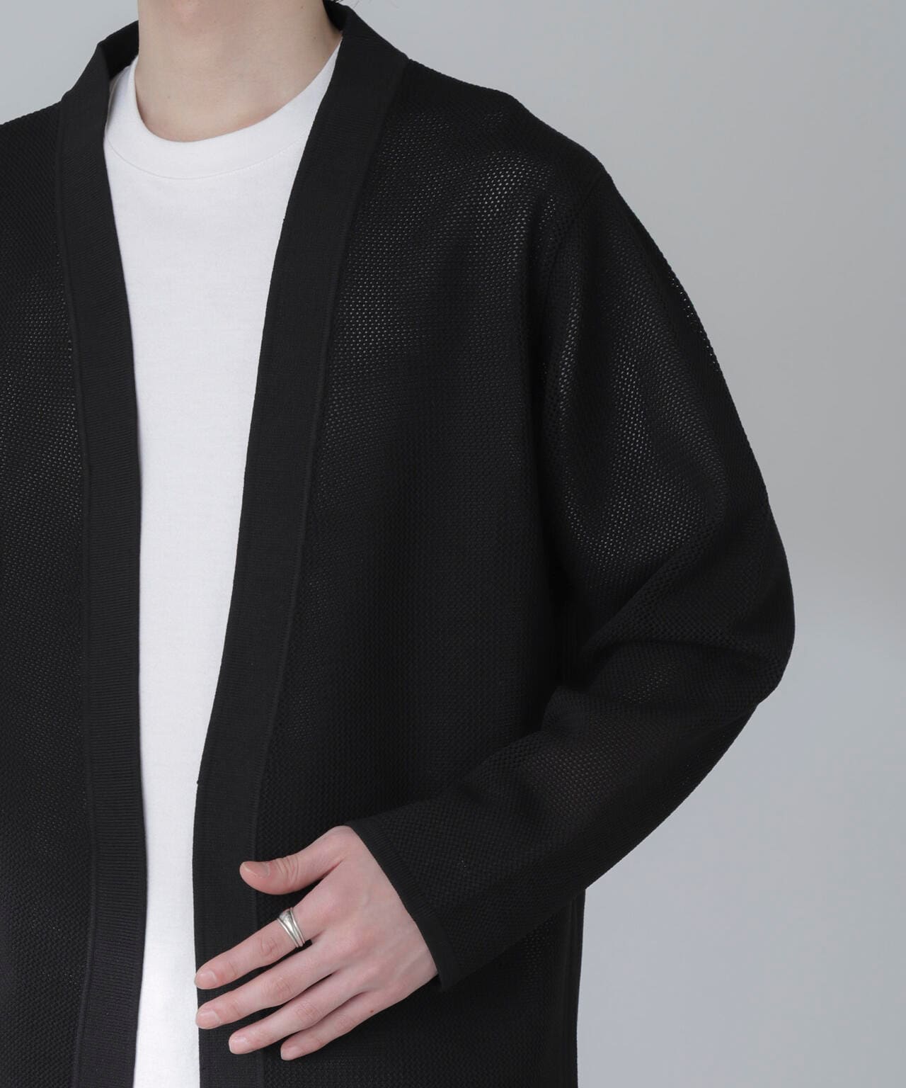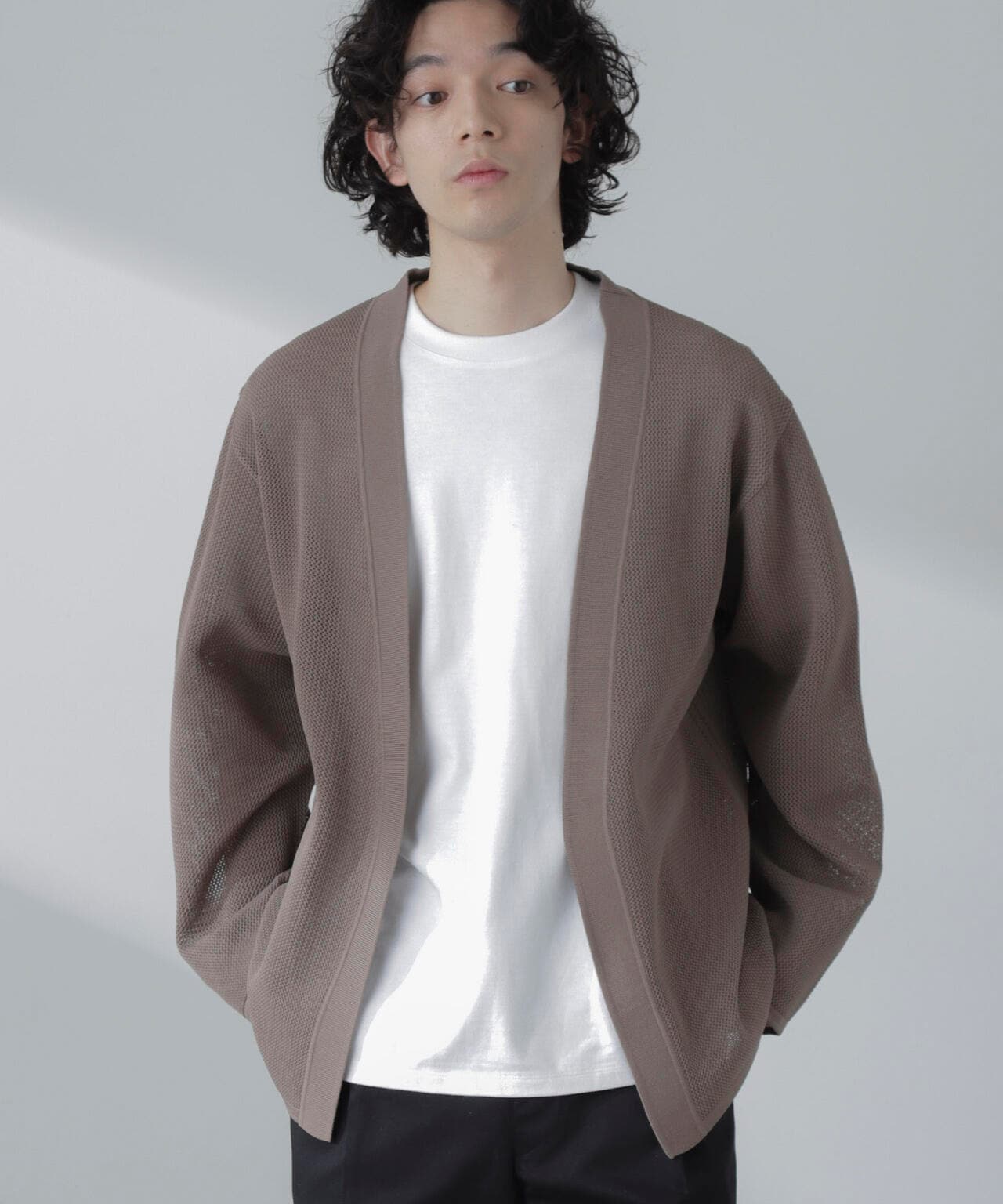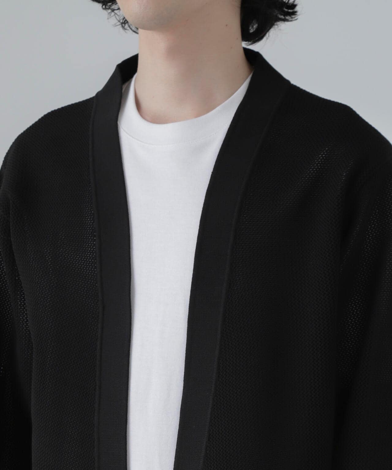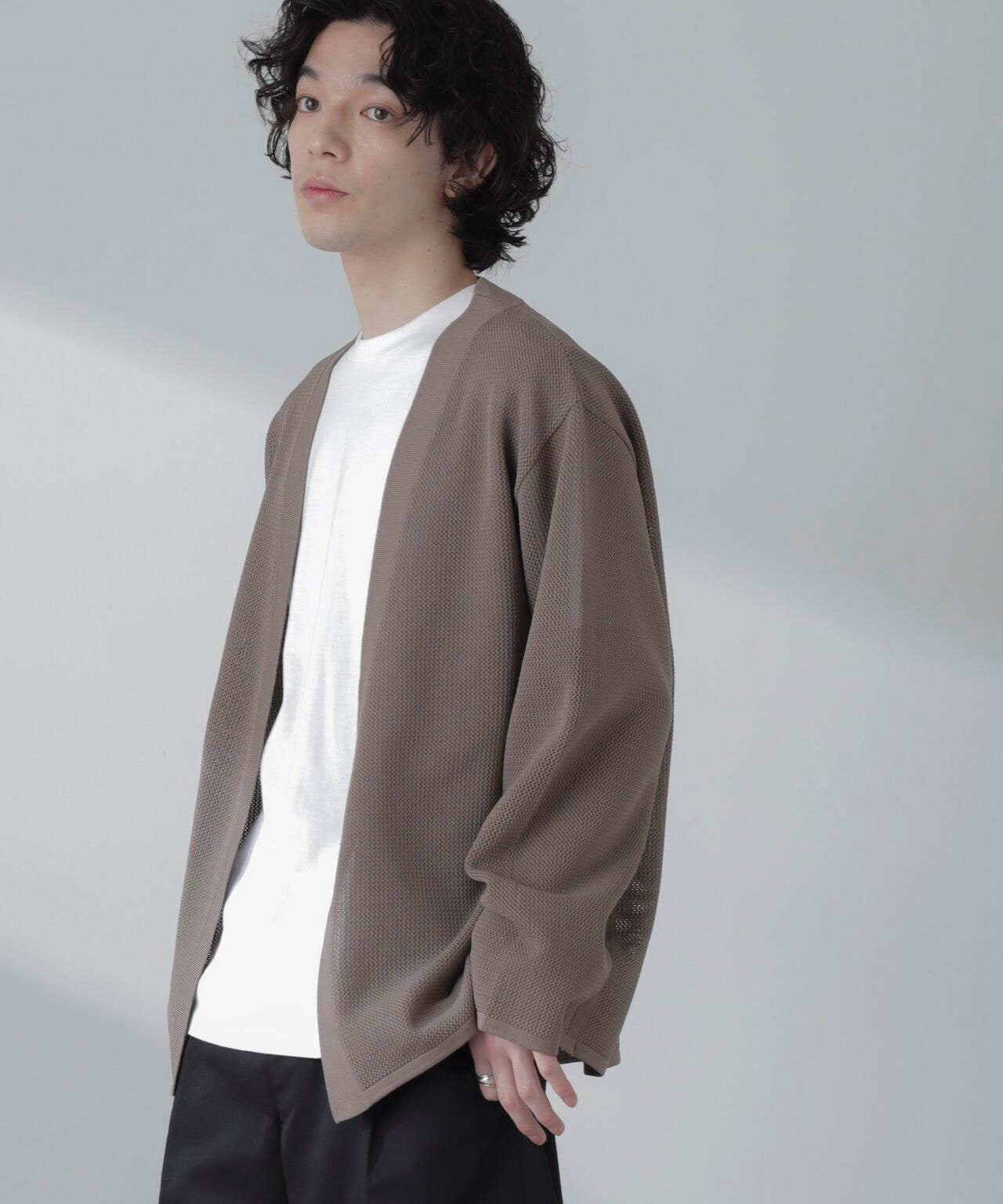 ポリエステル糸を使用したメッシュ感と軽さが特徴のニットウェアシリーズから登場のニットカーディガン。