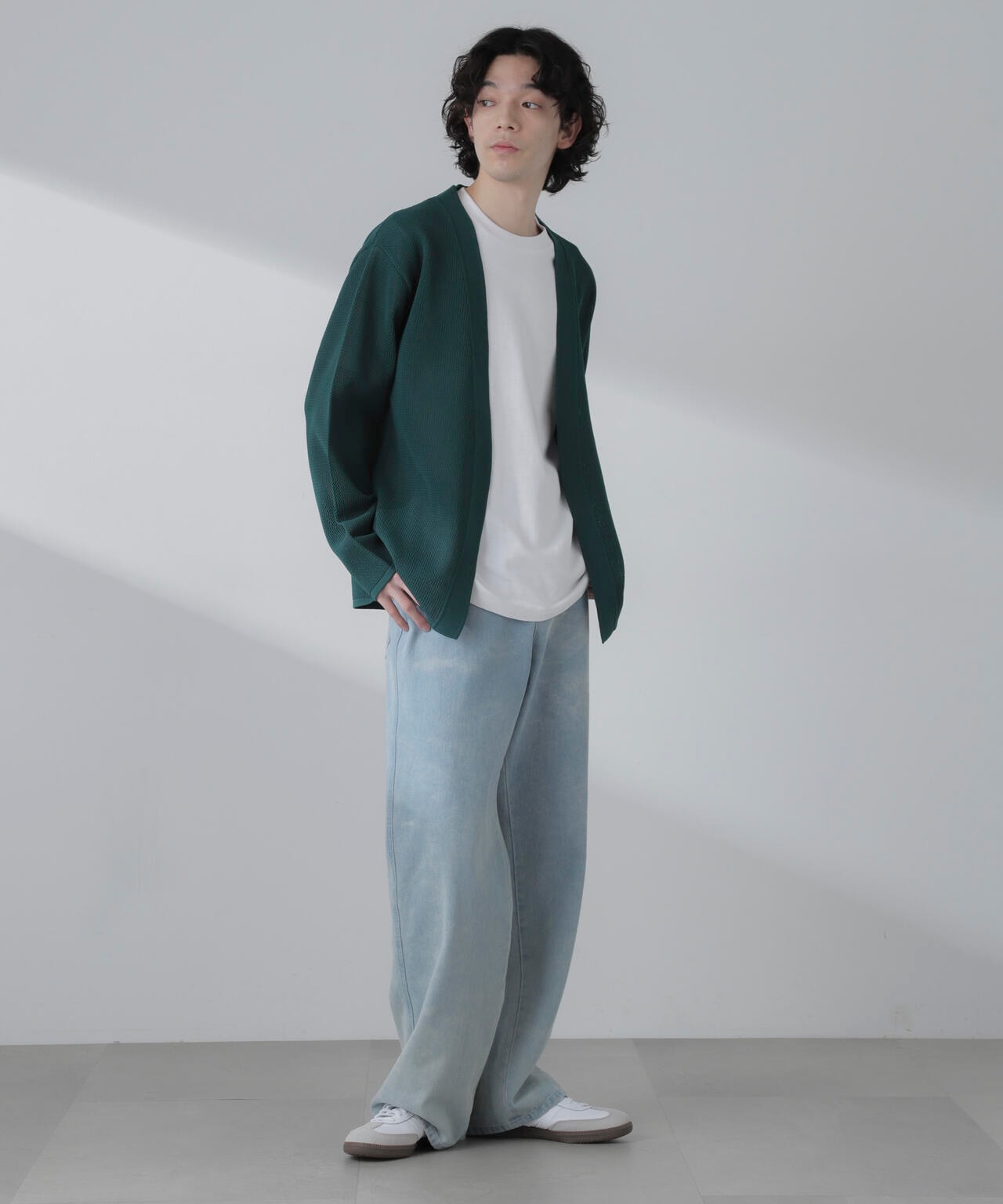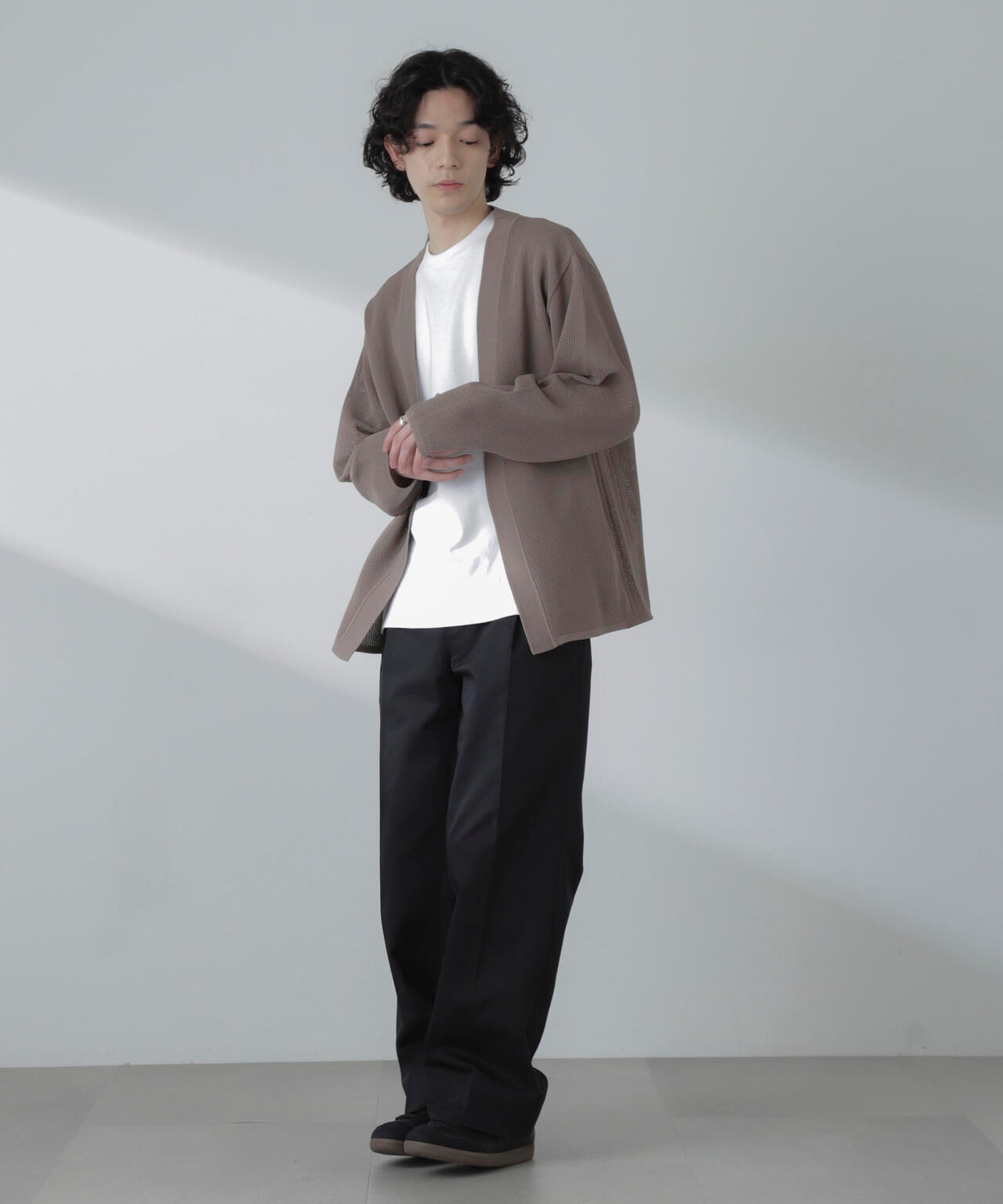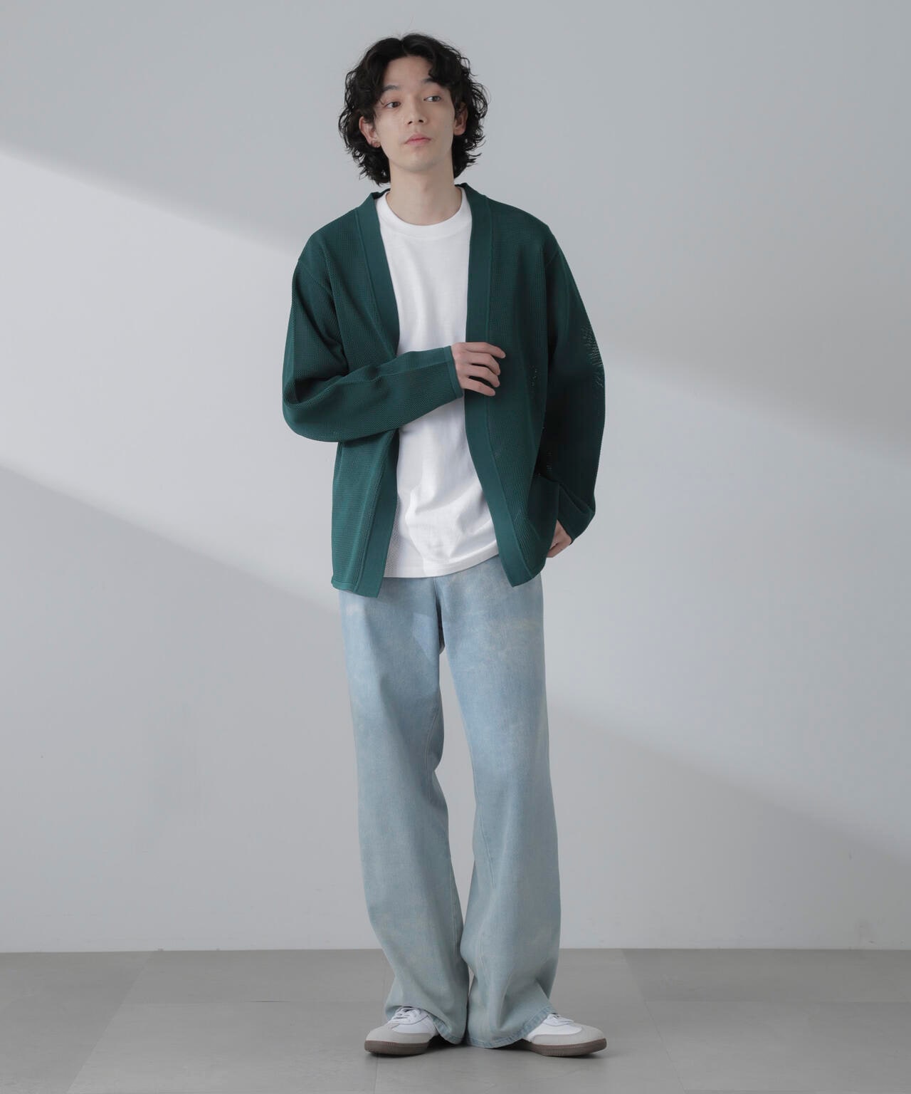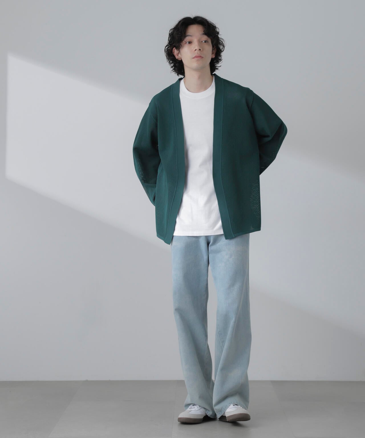 ポリエステル糸を使用したメッシュ感と軽さが特徴のニットウェアシリーズから登場のニットカーディガン。
