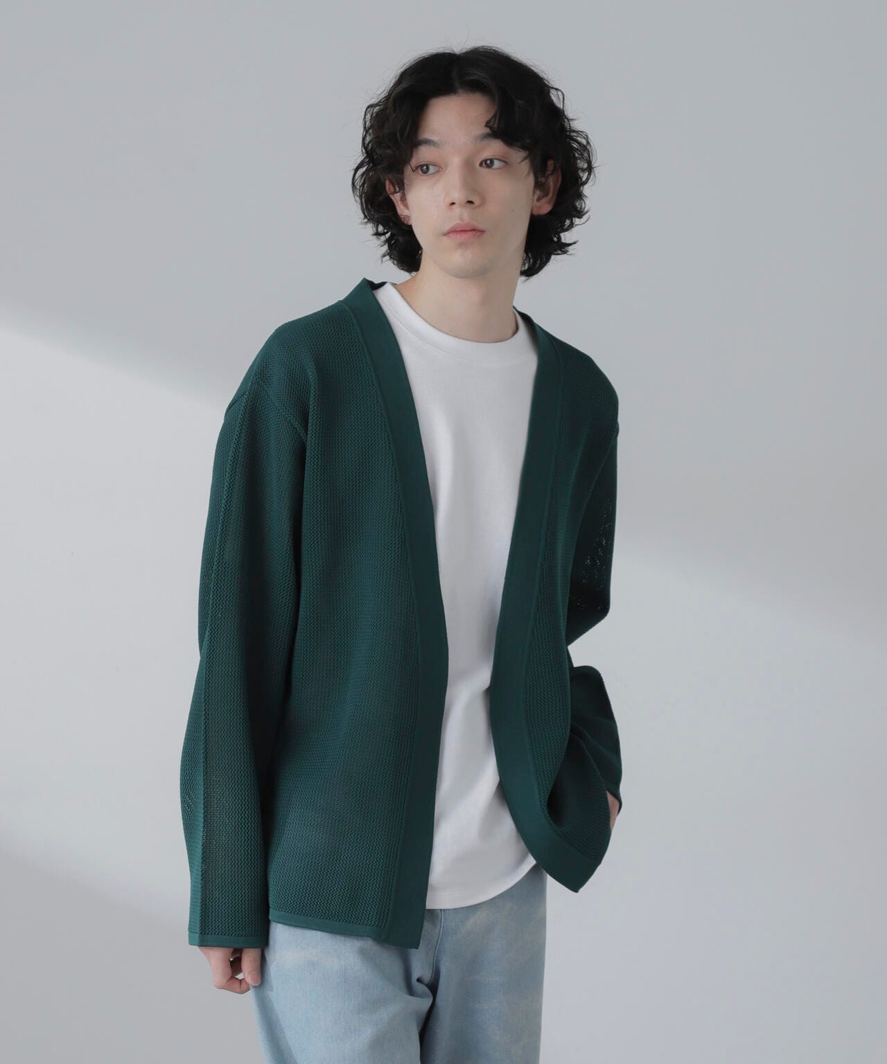 ・ポリエステル糸を使用したメッシュ感と軽さが特徴のニットウェアシリーズから登場のニットカーディガン