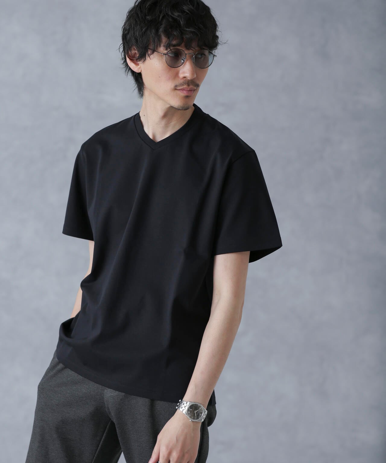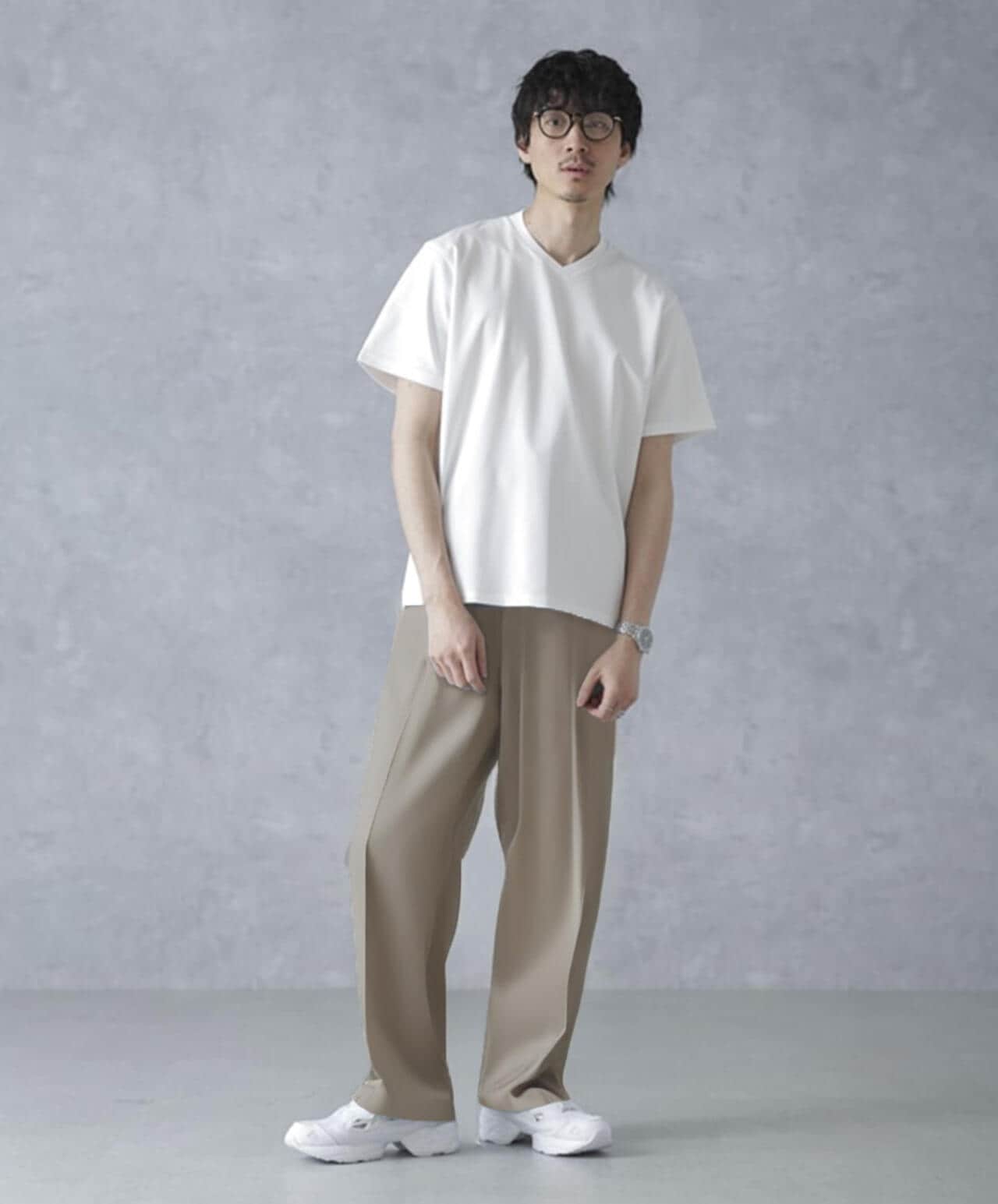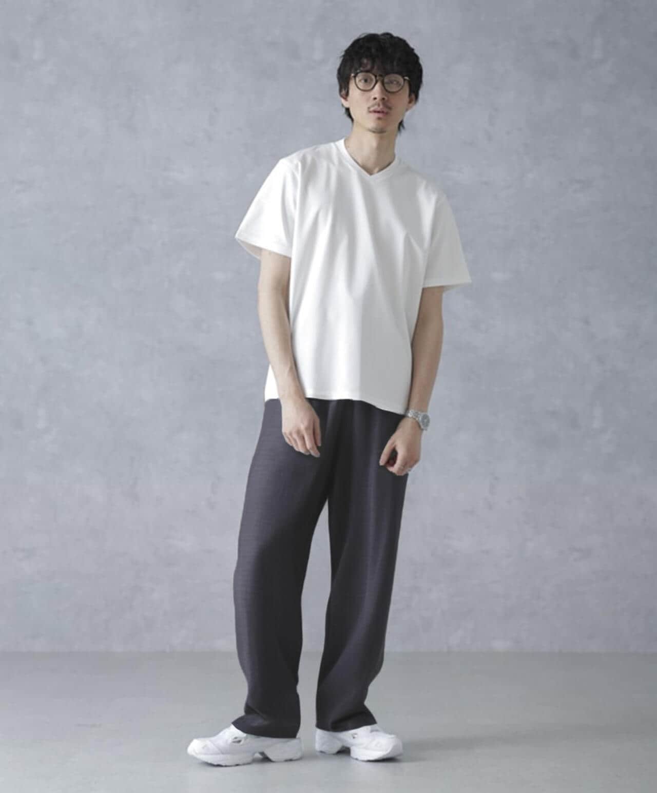 ・スマートな印象のVネックデザイン