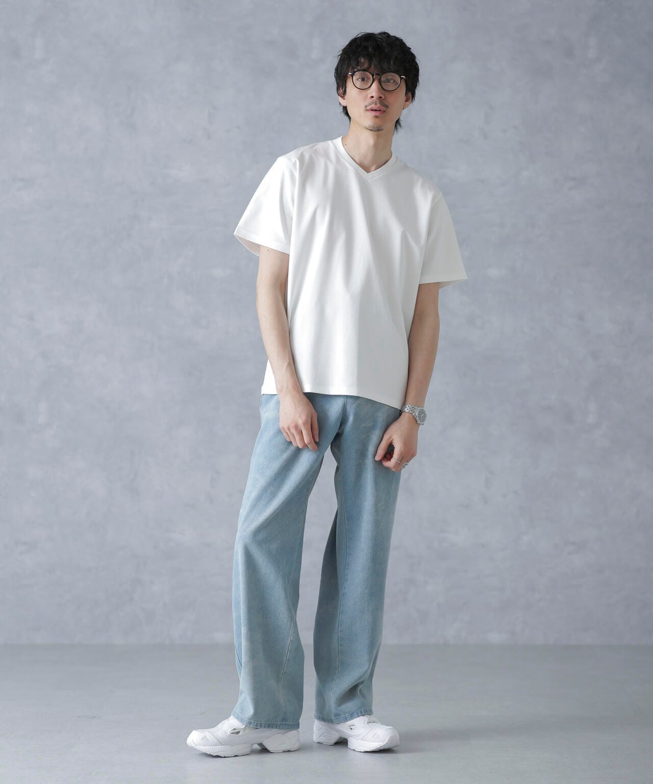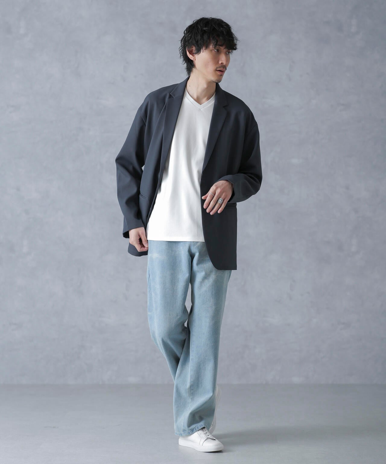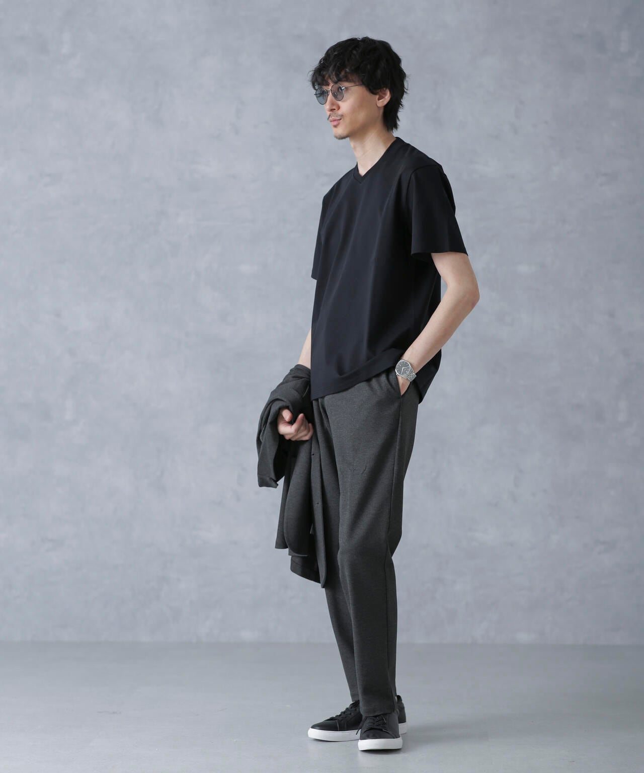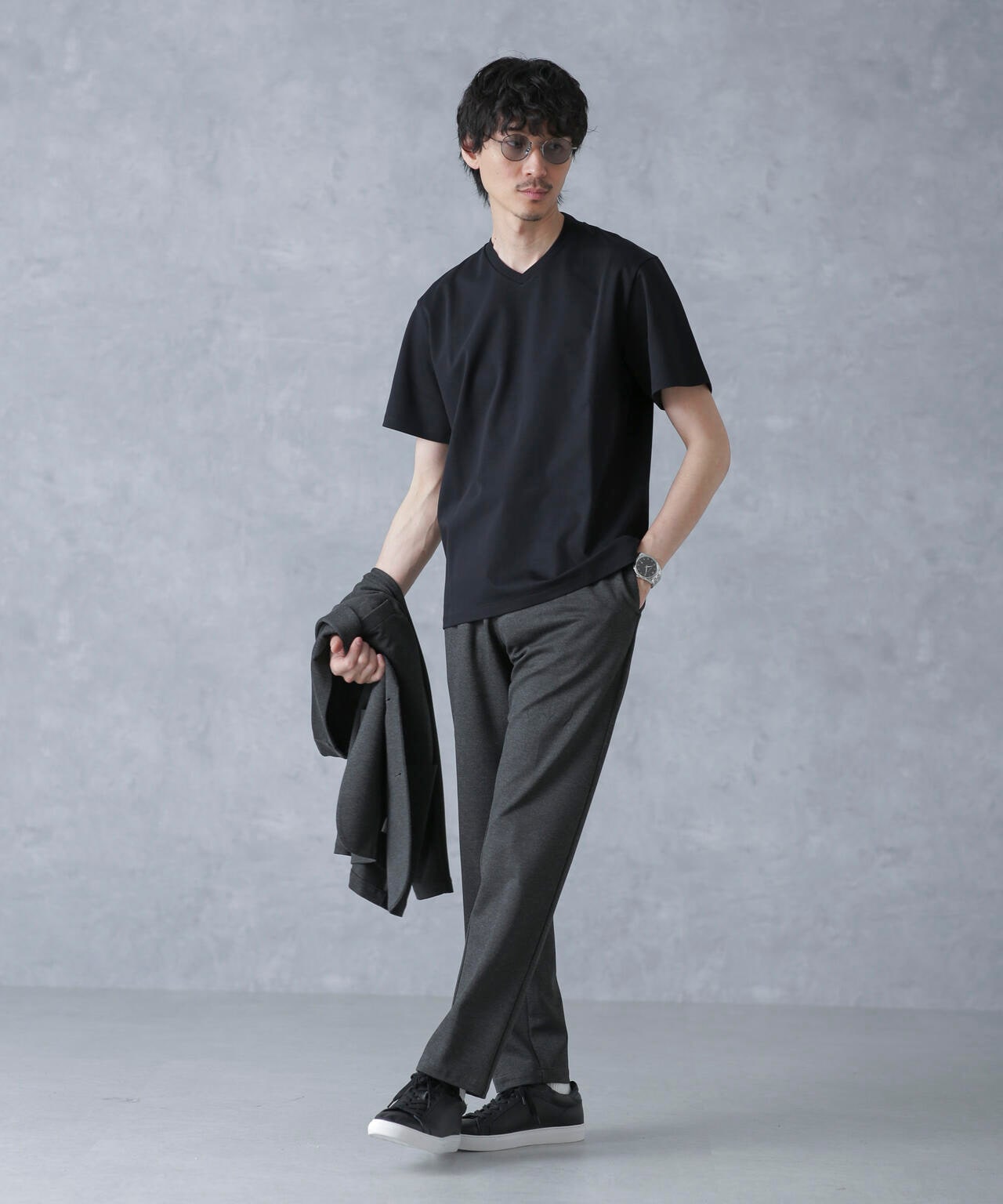 ・スマートな印象のVネックデザイン