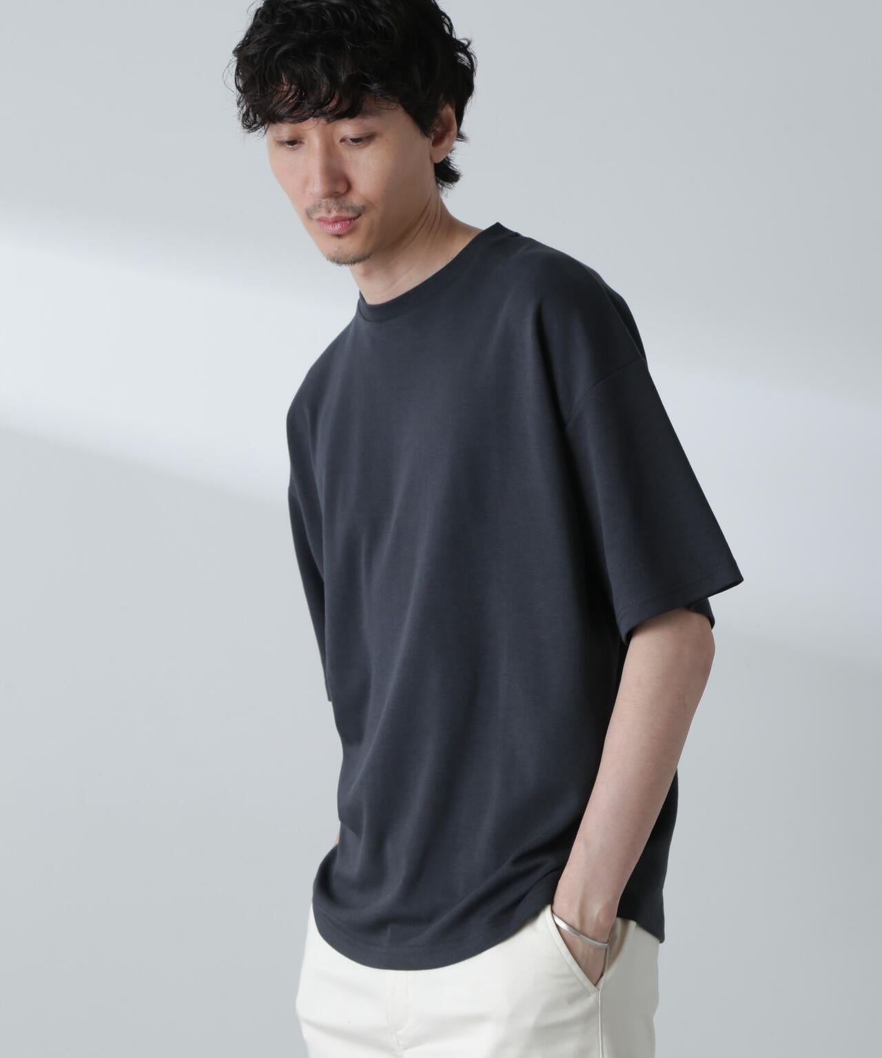 ・上品な光沢感としなやかな風合いが特徴的なプレーティング天竺Tシャツ