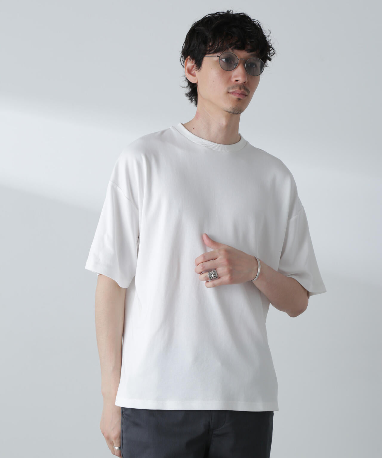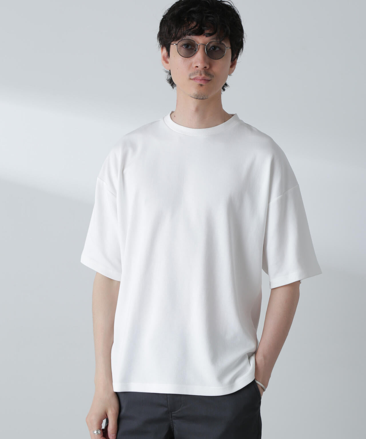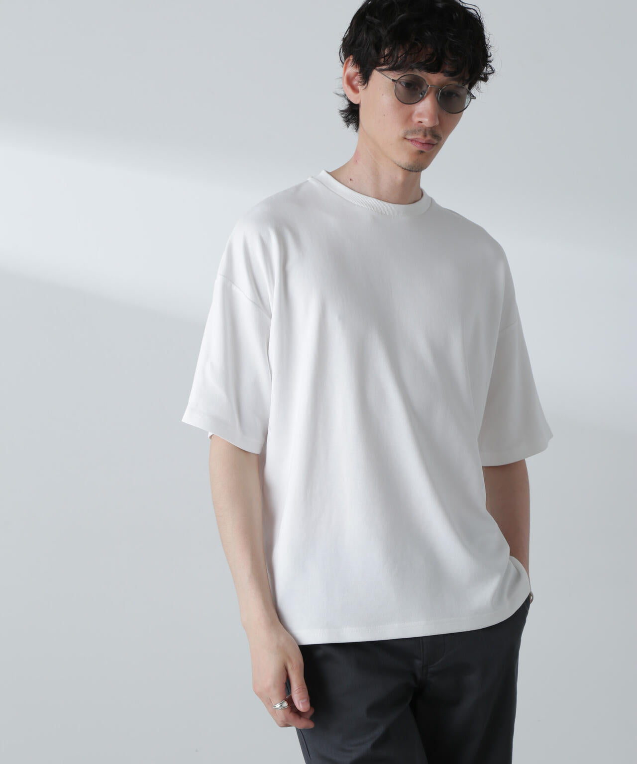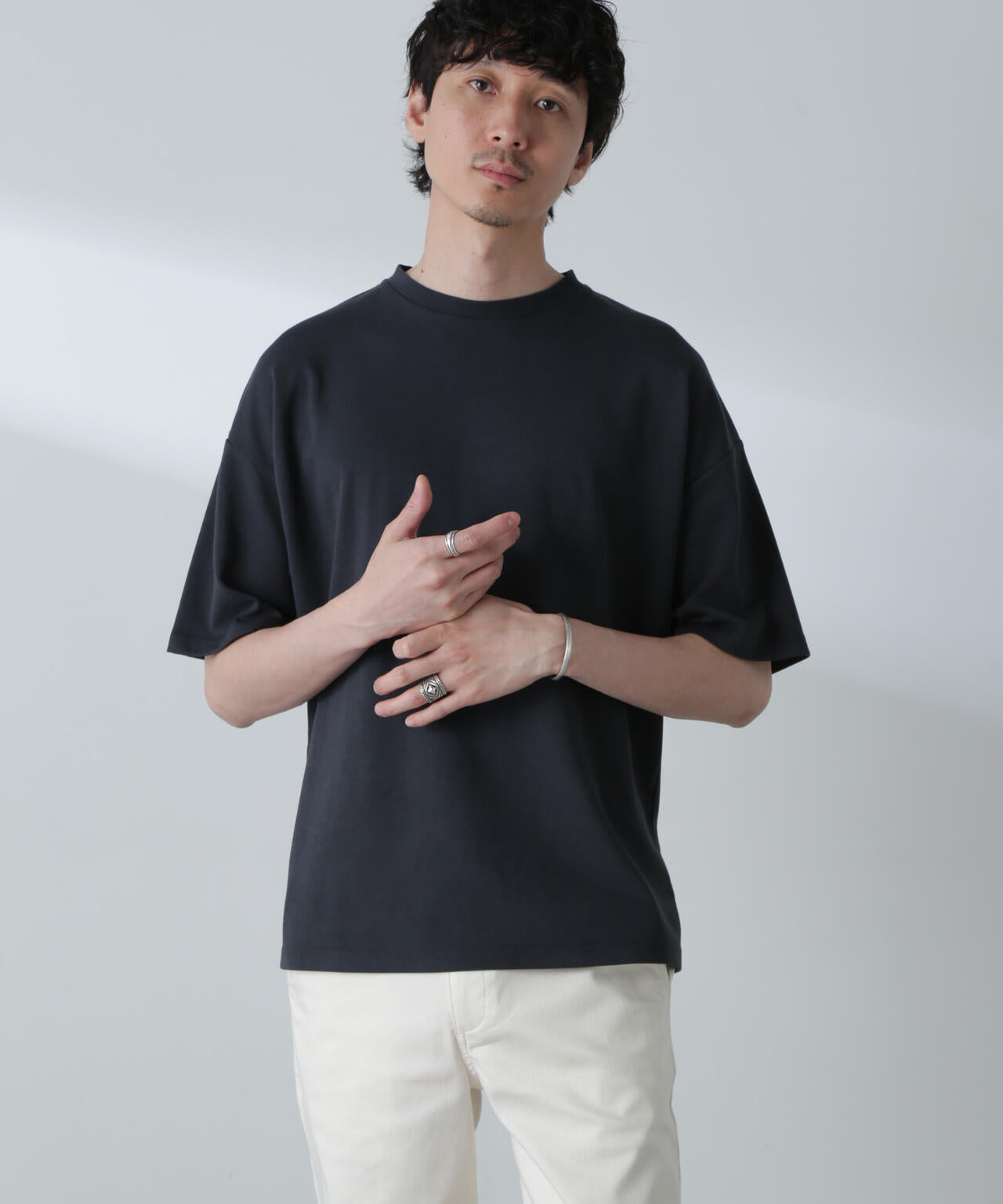 上品な光沢感としなやかな風合いが特徴的なプレーティング天竺Tシャツ。