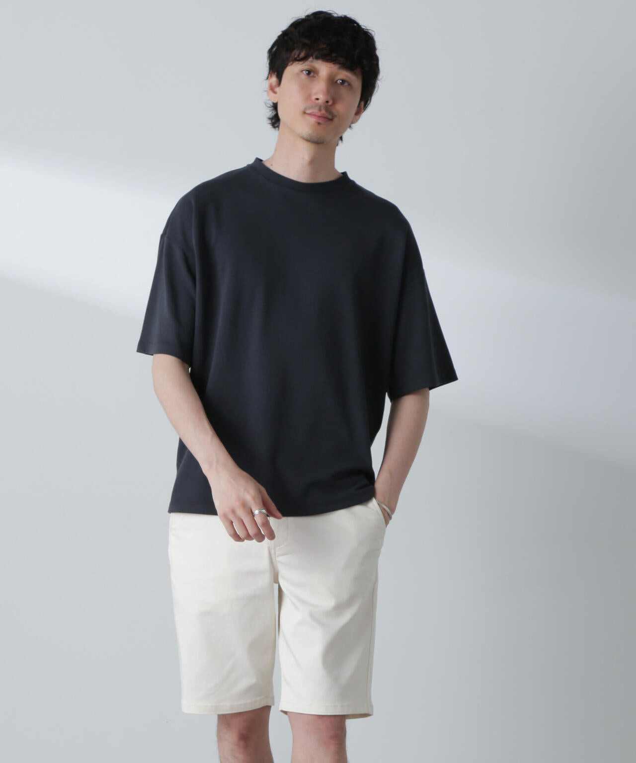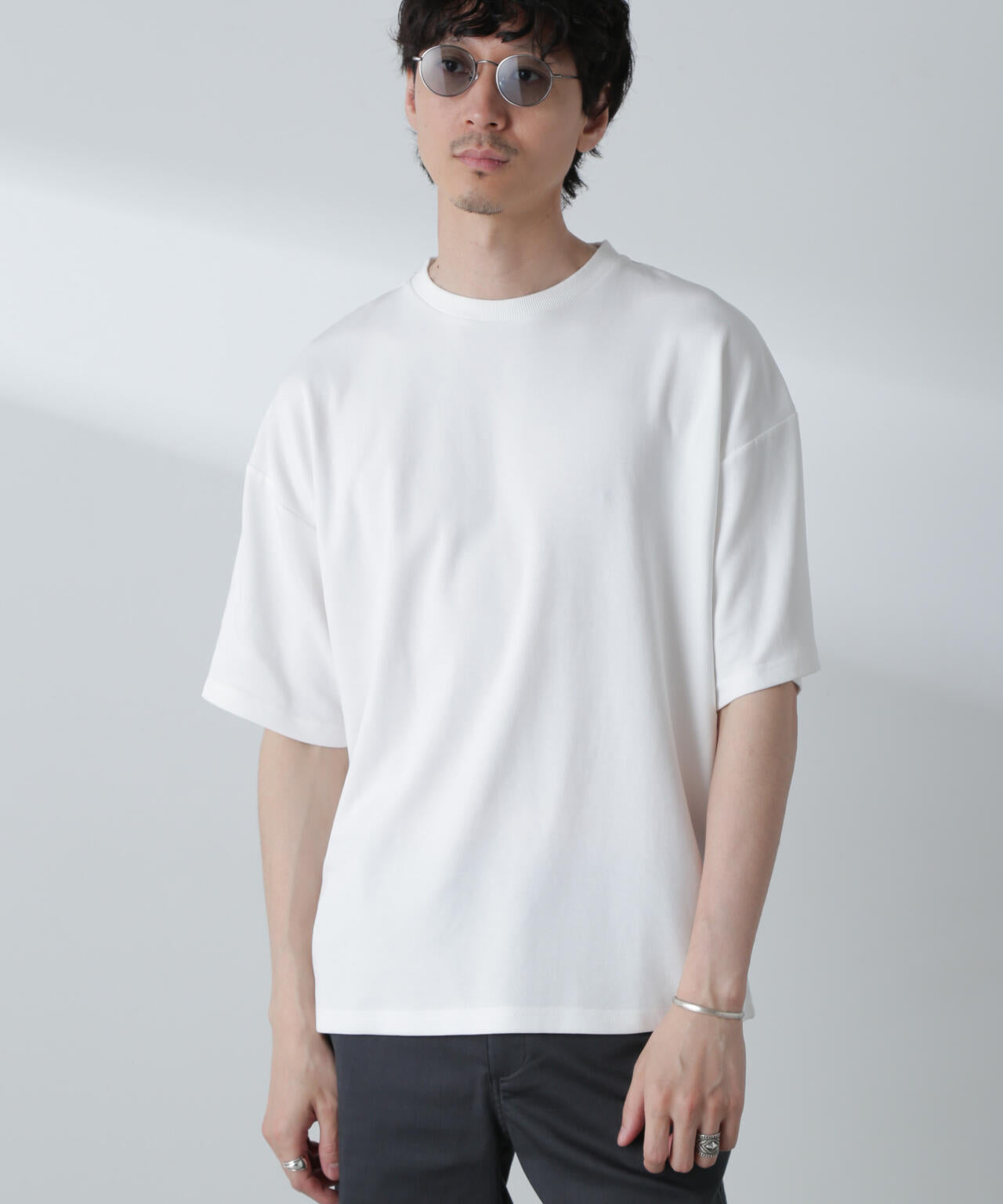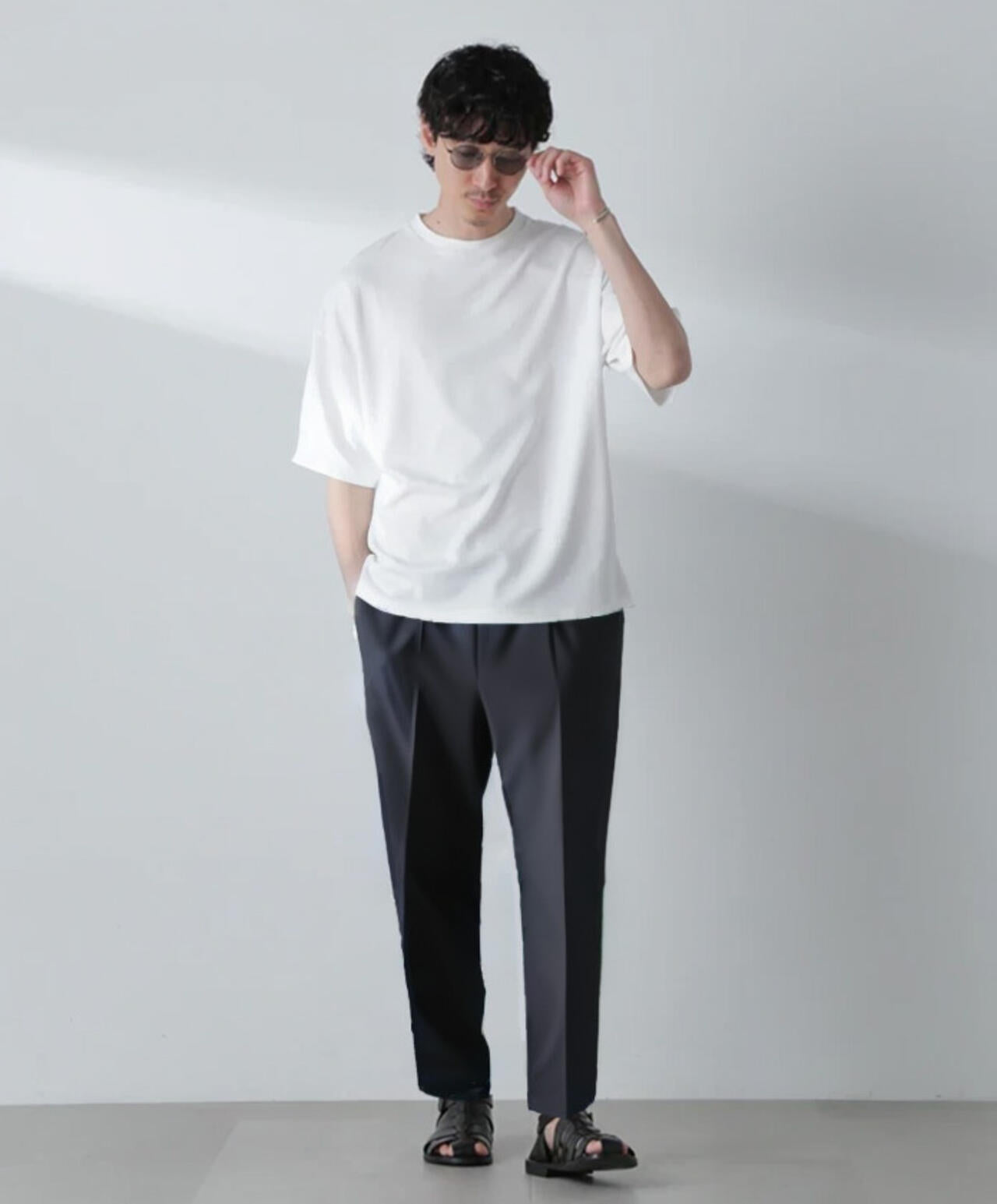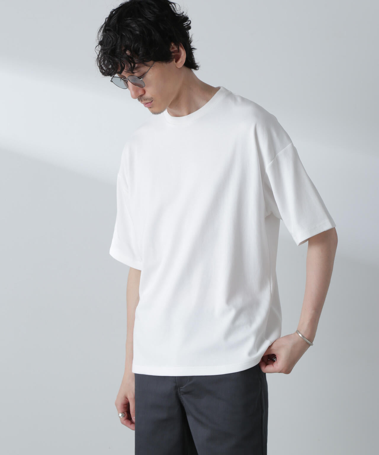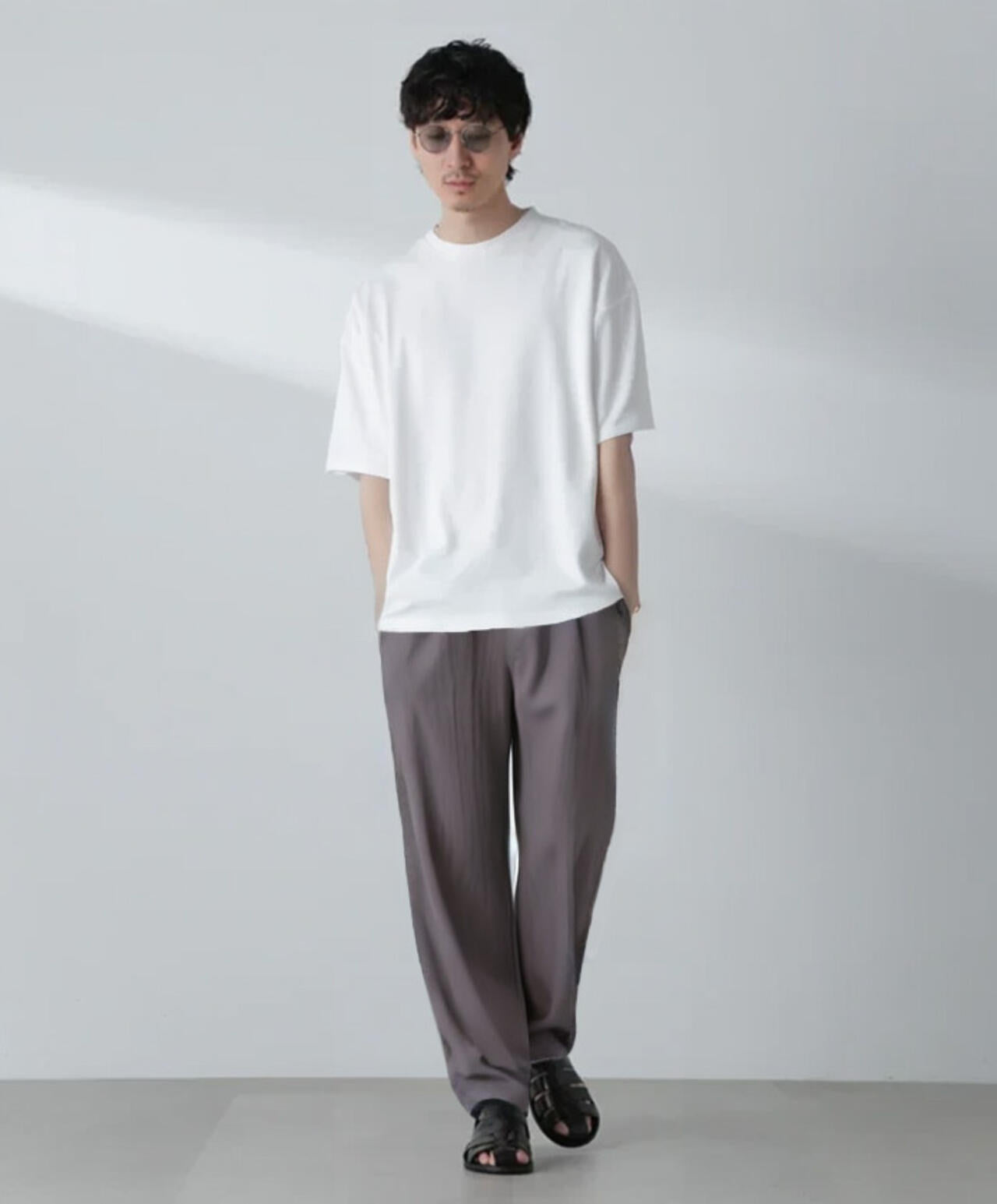 上品な光沢感としなやかな風合いが特徴的なプレーティング天竺Tシャツ。