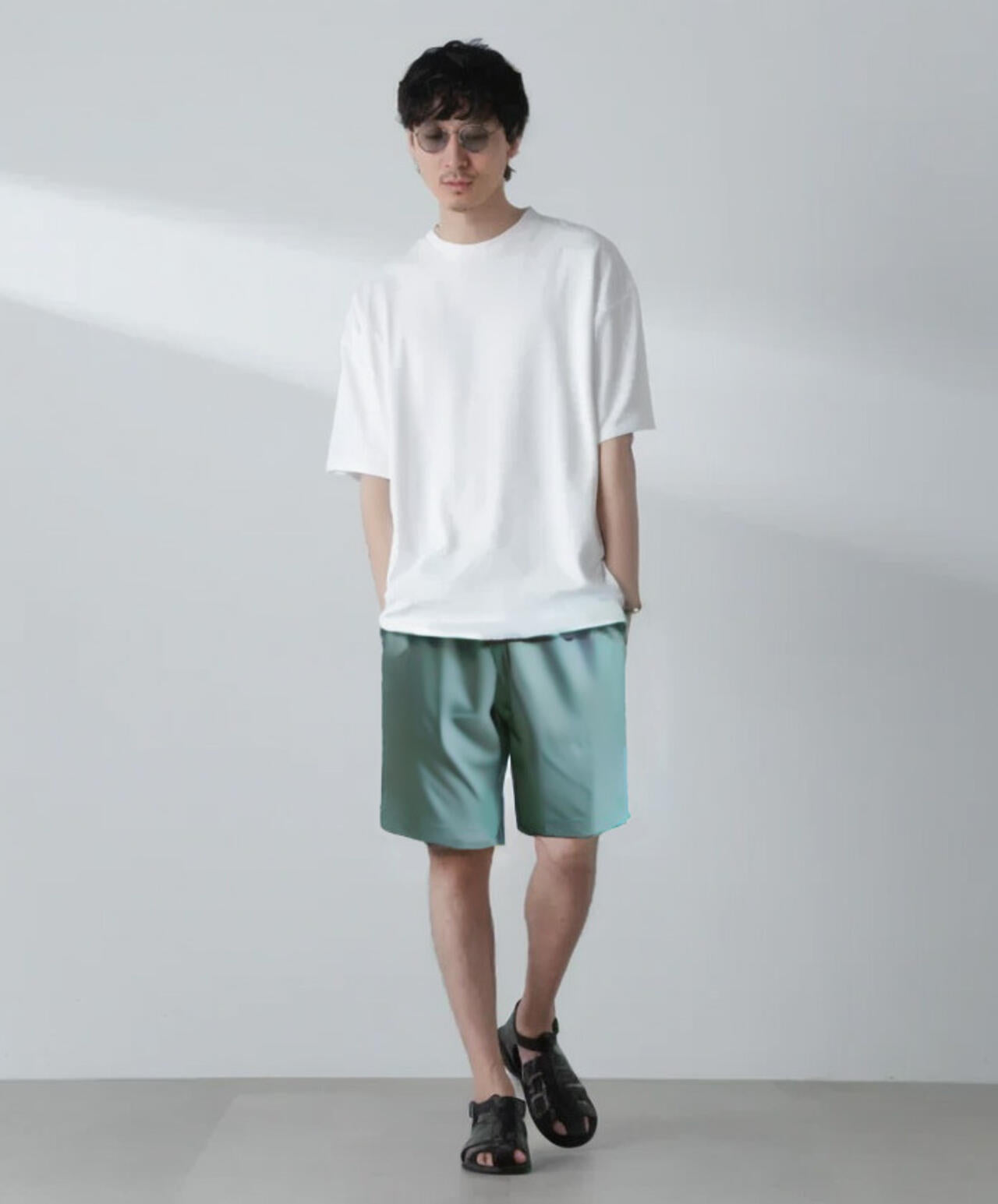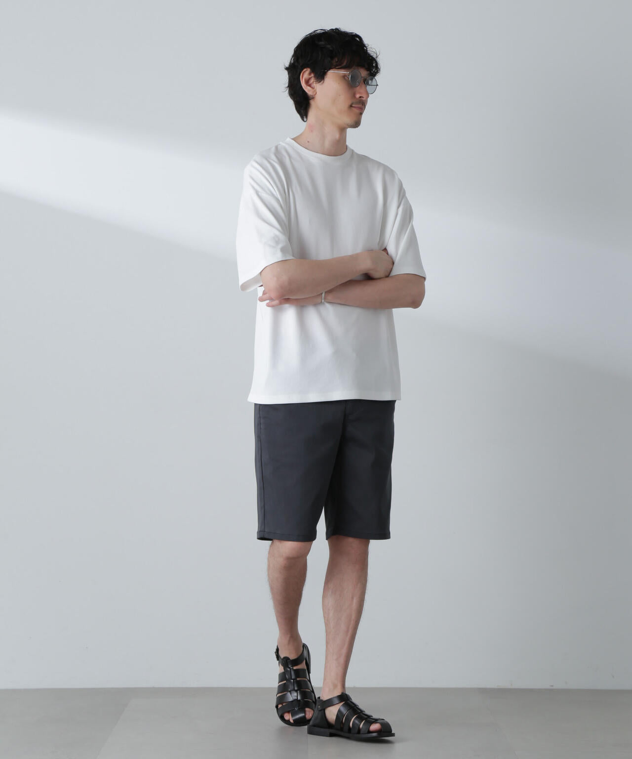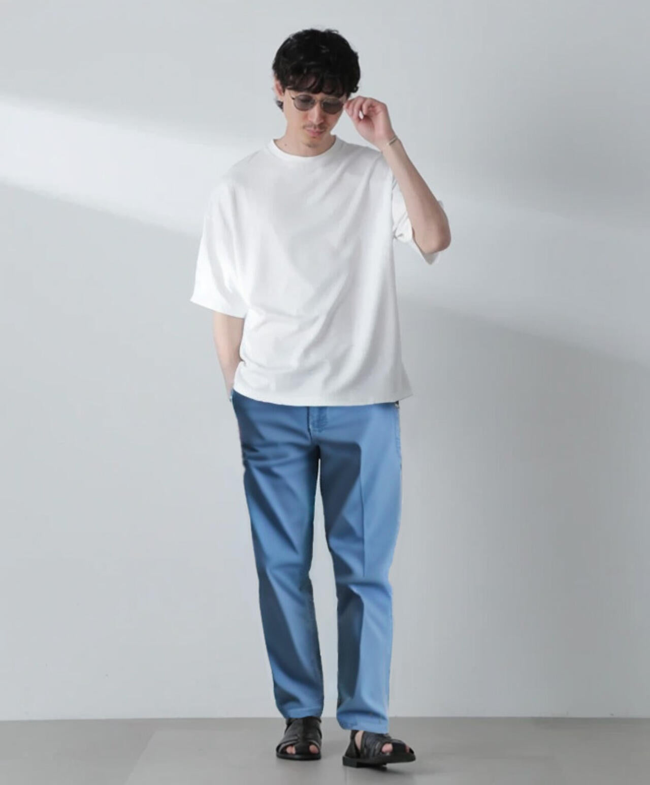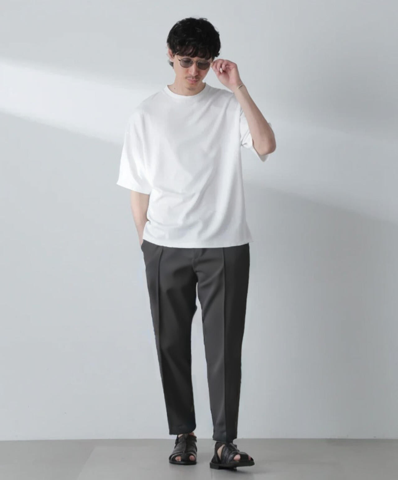 上品な光沢感としなやかな風合いが特徴的なプレーティング天竺Tシャツ。