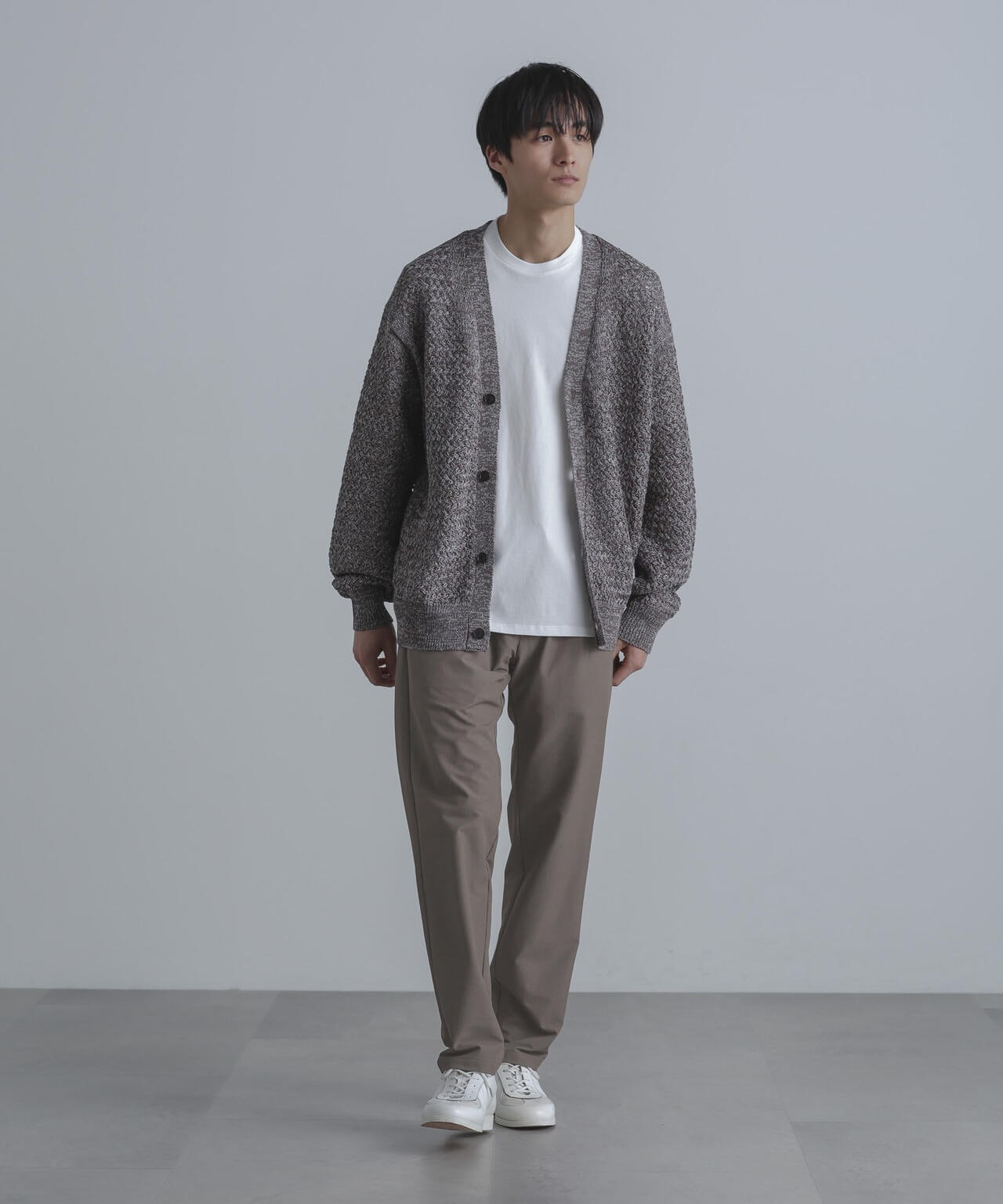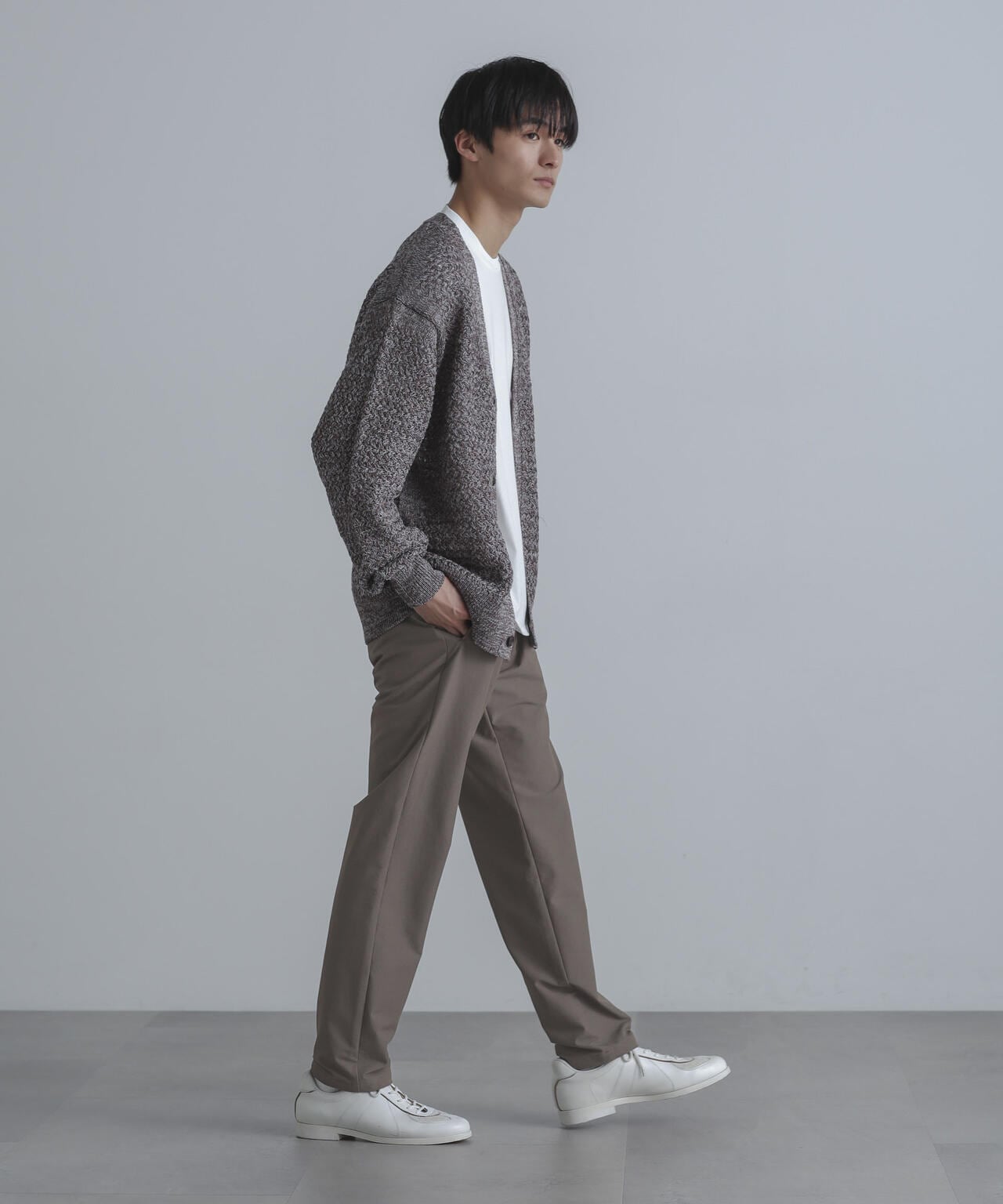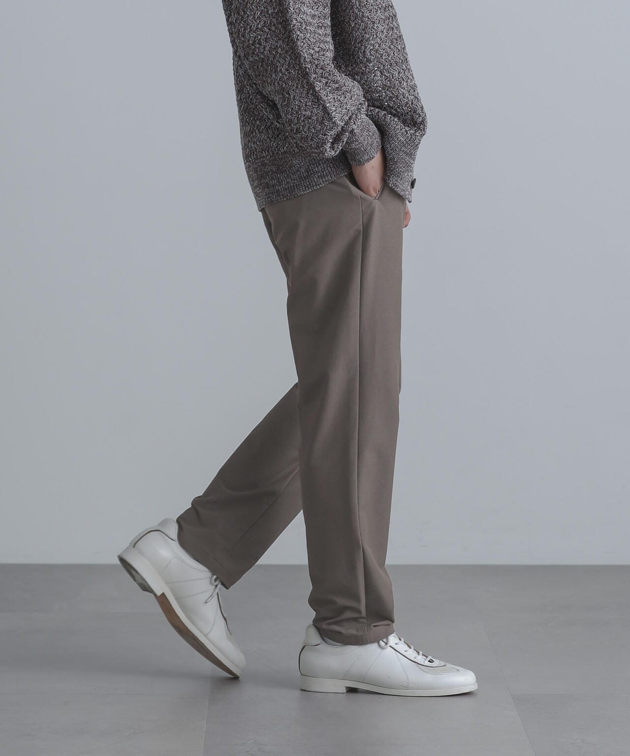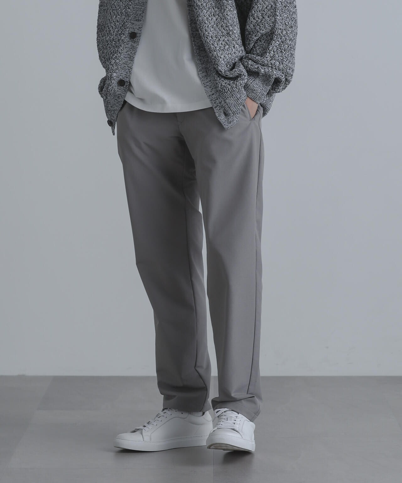 裾に向かってテーパードが効いたナノ・ユニバースらしい細身のシルエット。