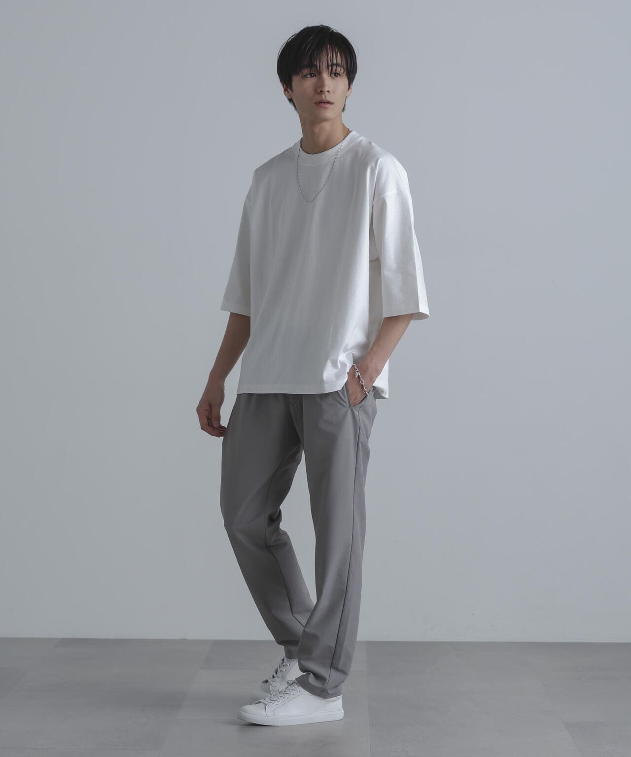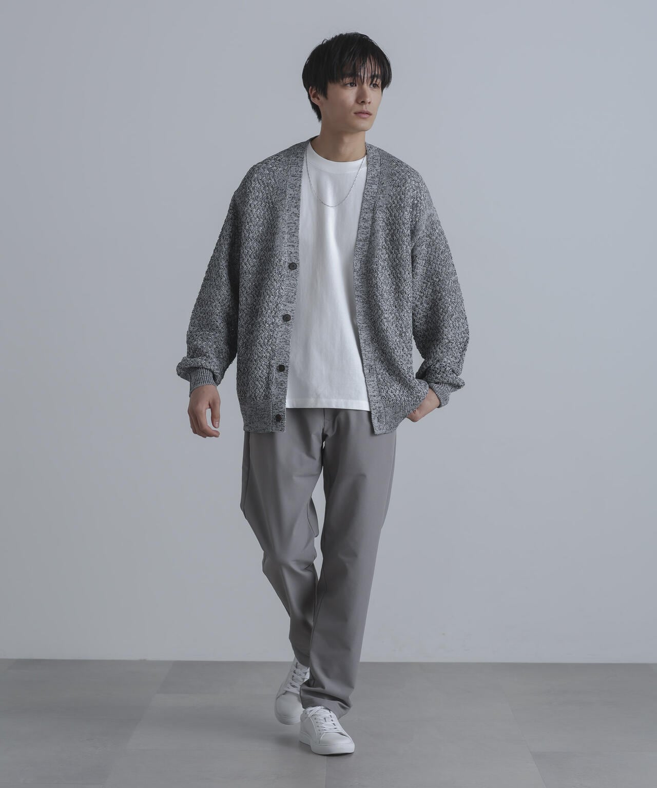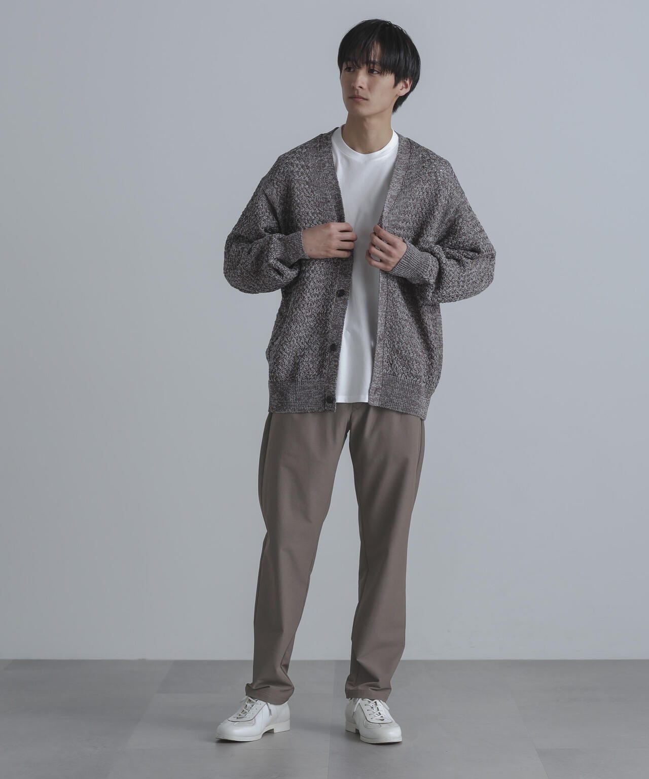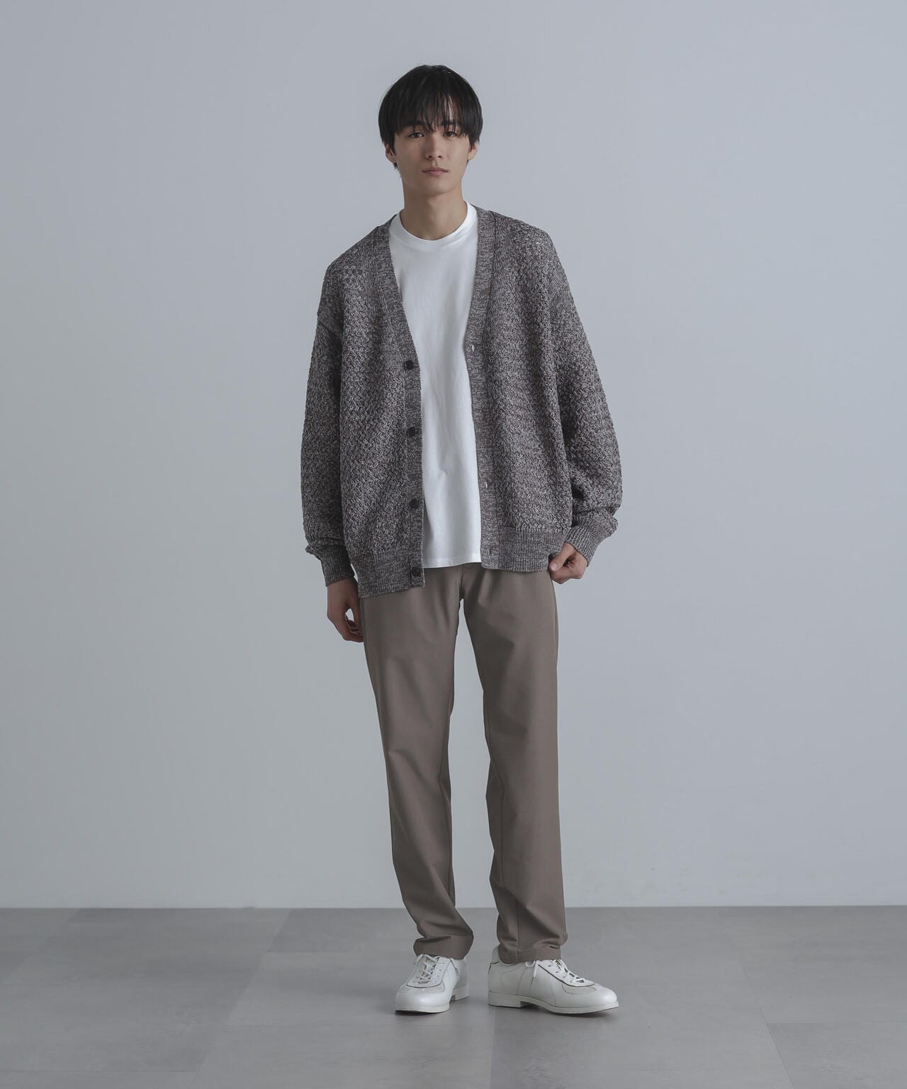 裾に向かってテーパードが効いたナノ・ユニバースらしい細身のシルエット。