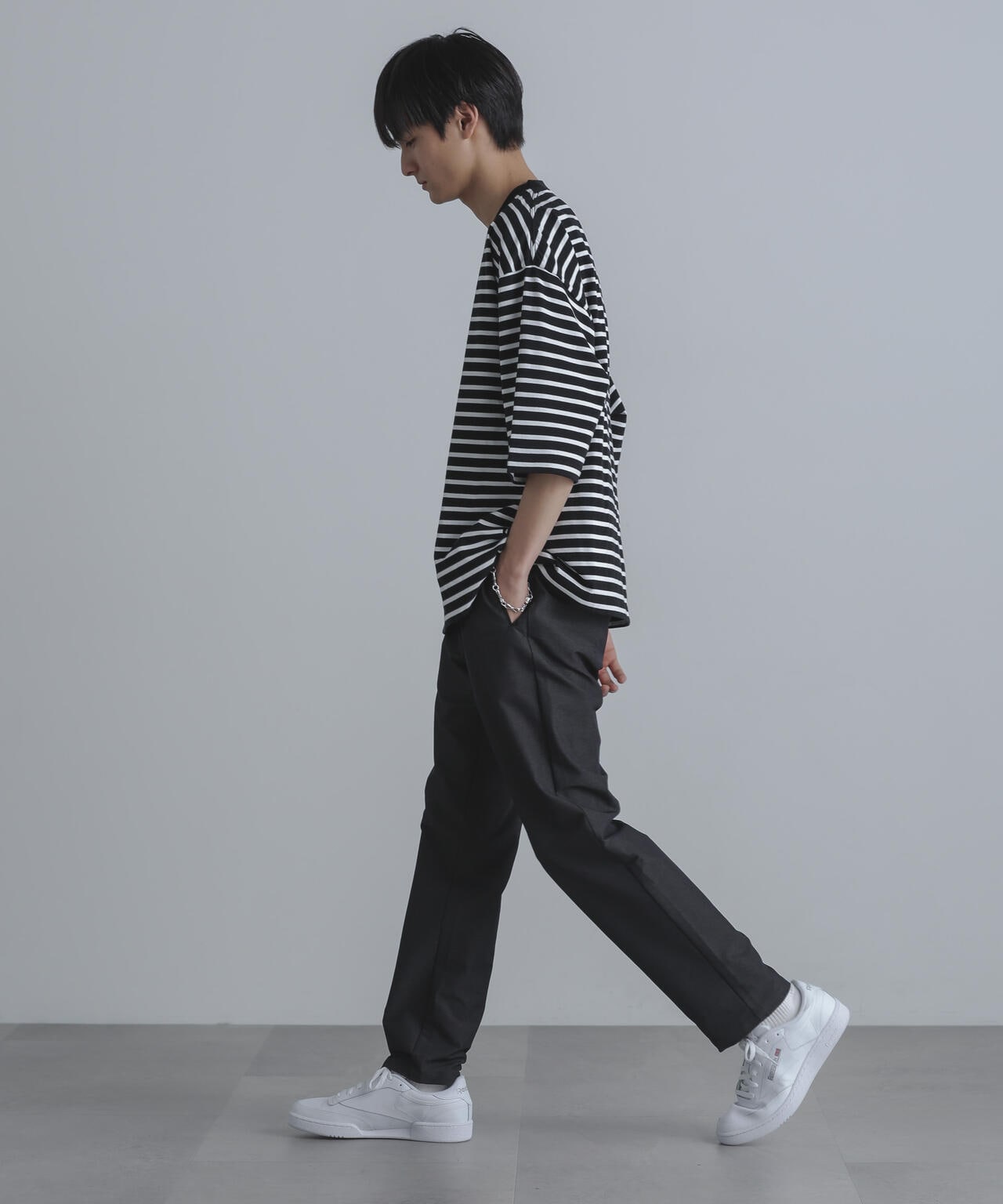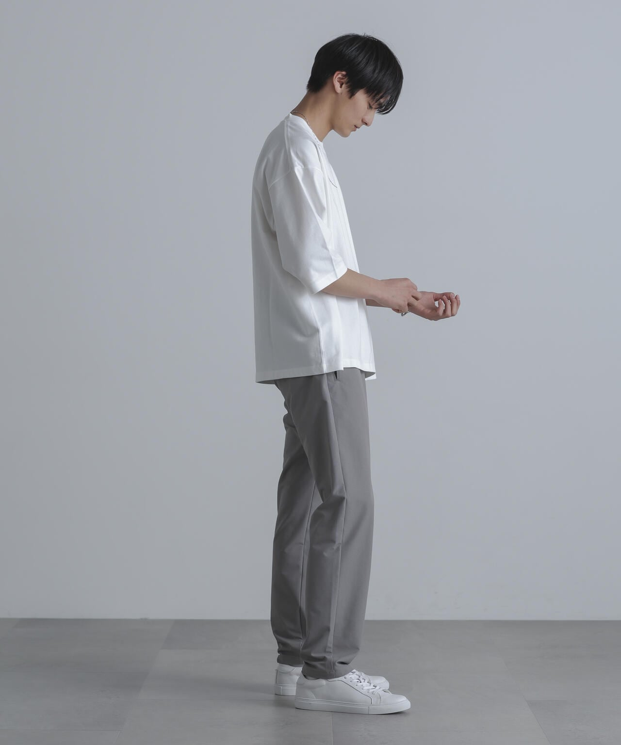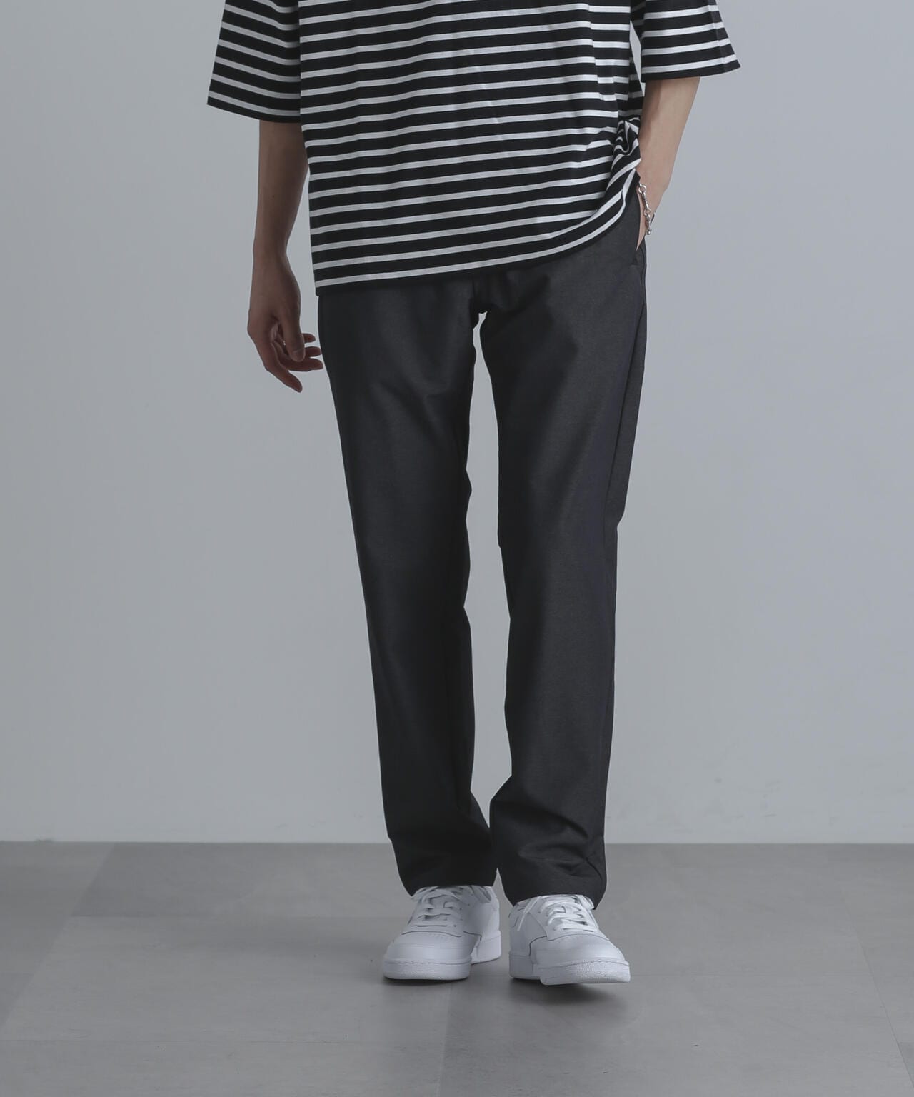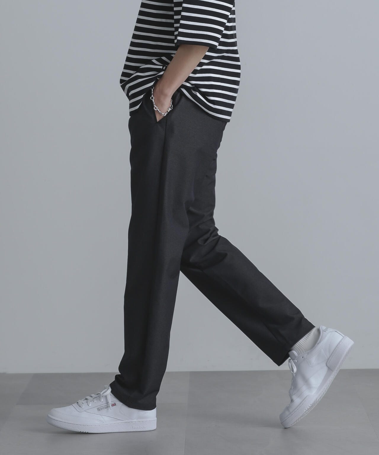 ・裾に向かってテーパードが効いた細身のシルエット