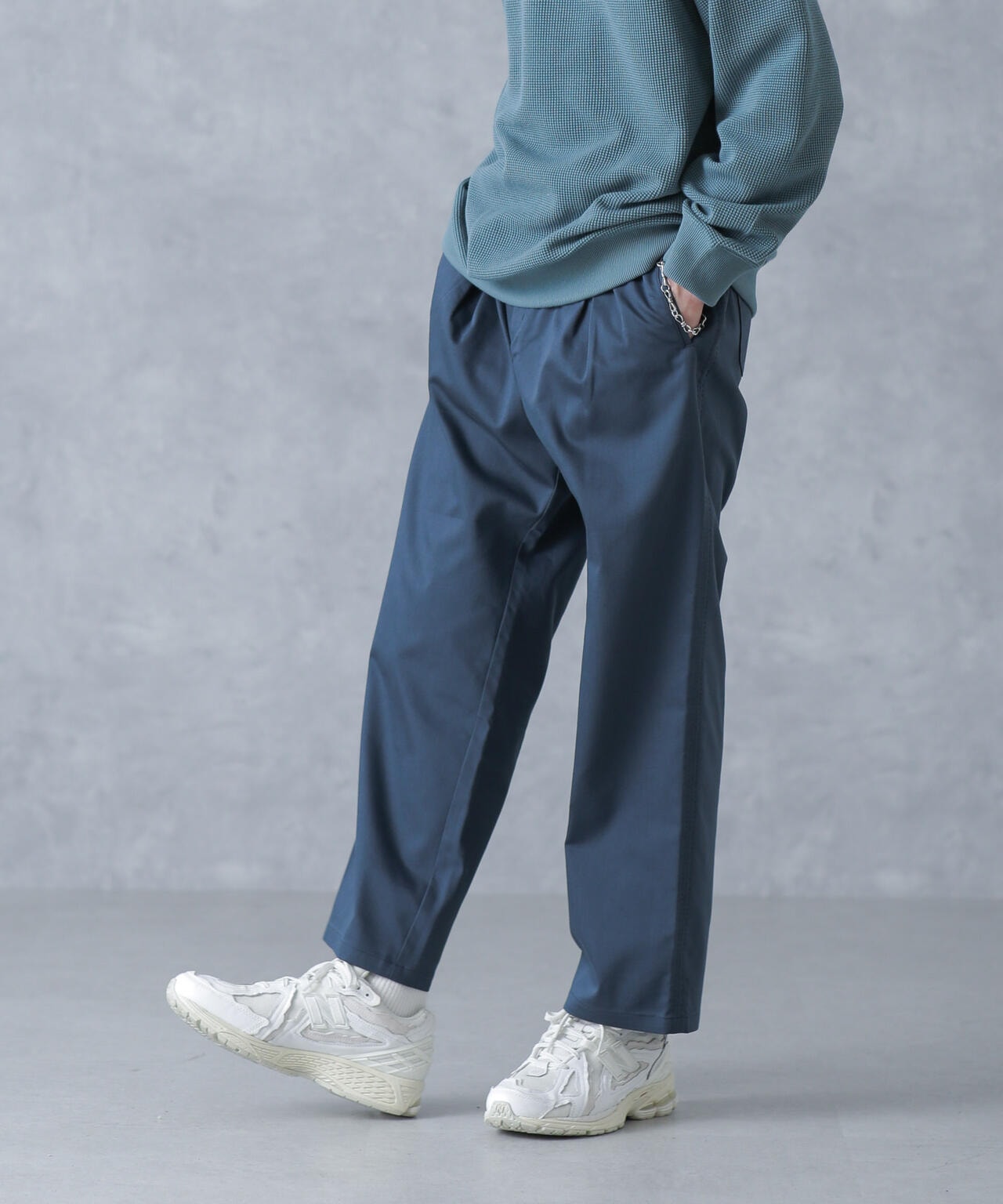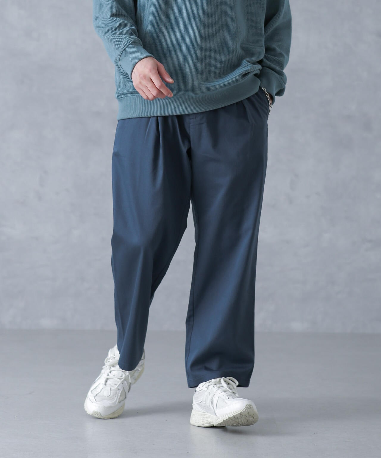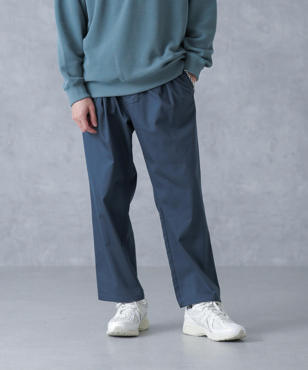 ON/OFF兼用で重宝するストレートパンツ。