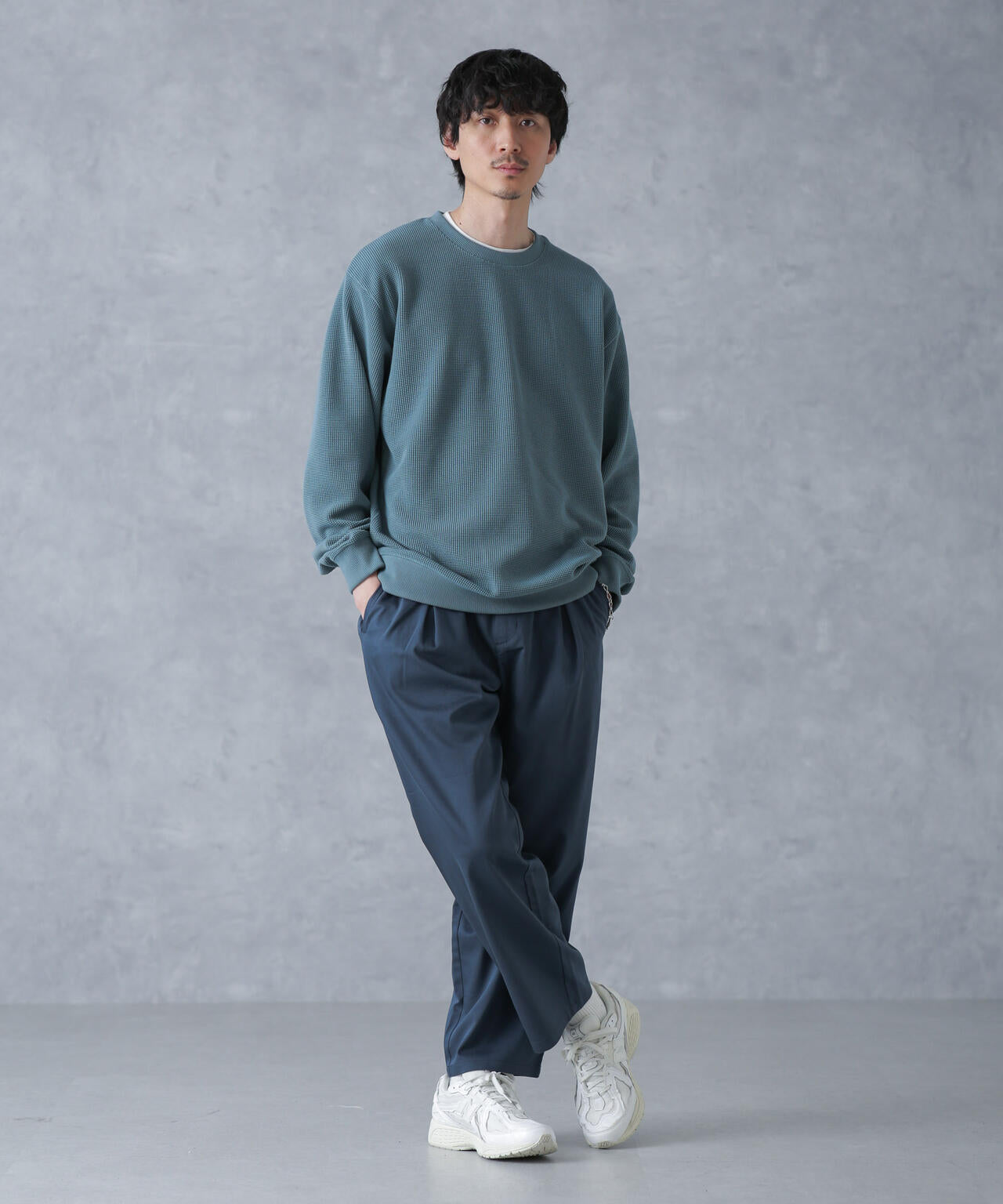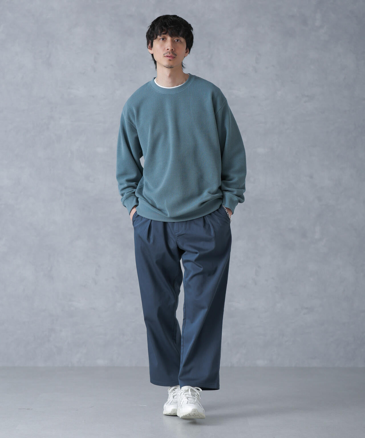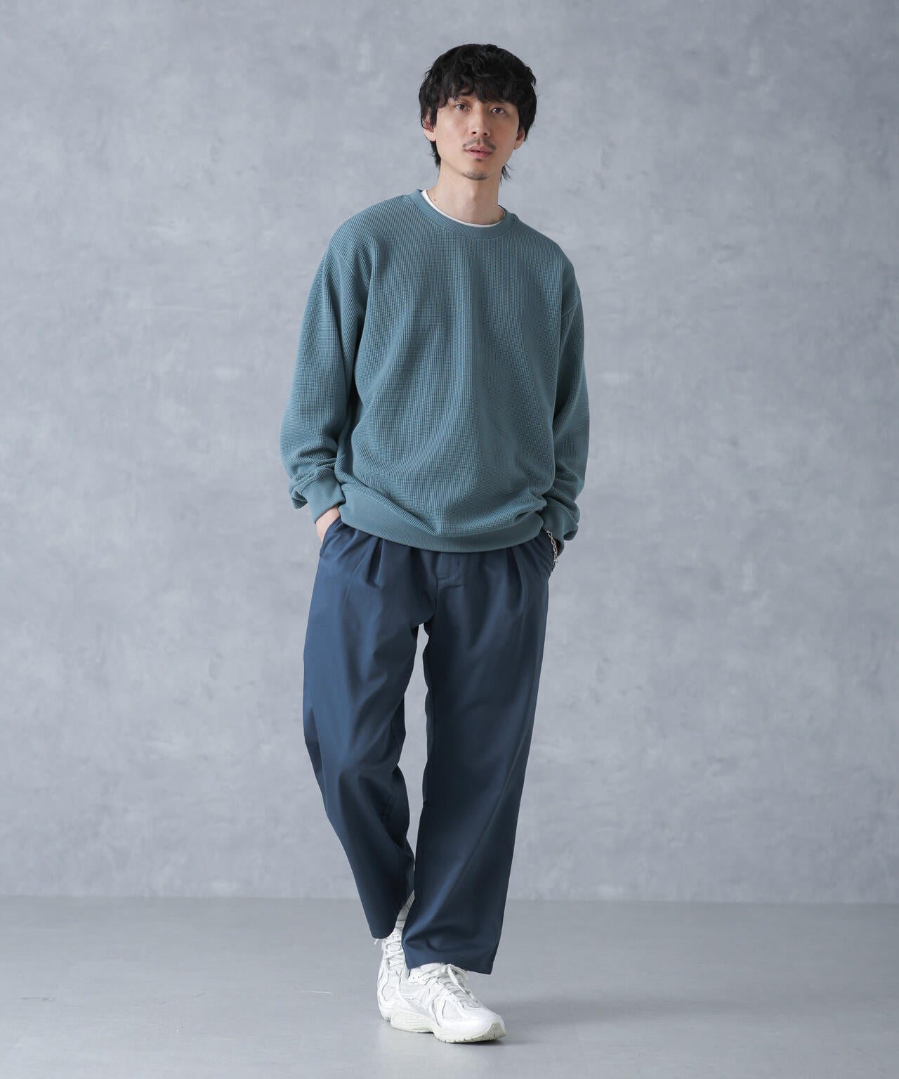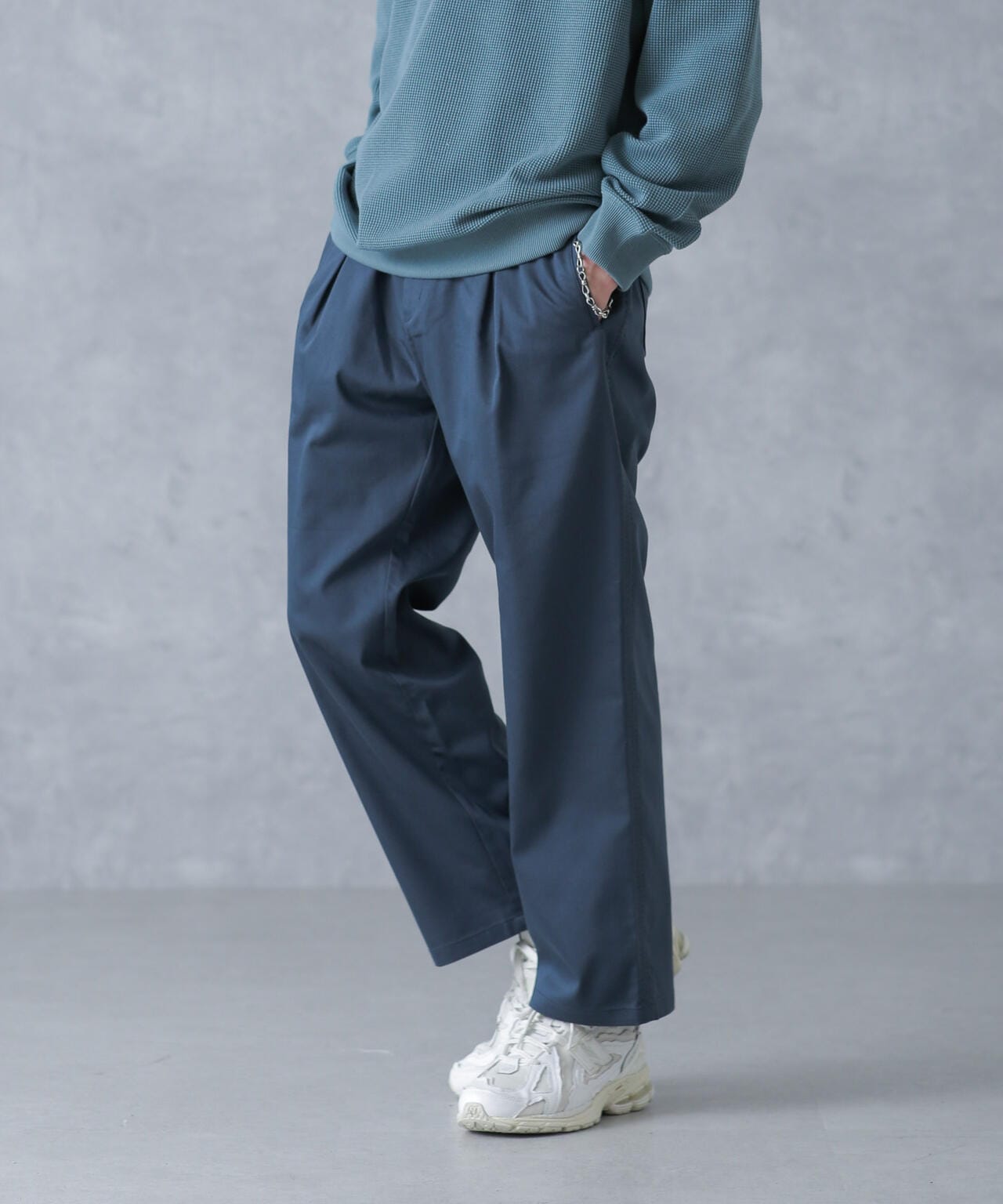 ON/OFF兼用で重宝するストレートパンツ。