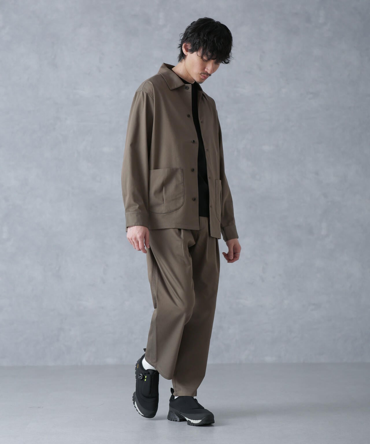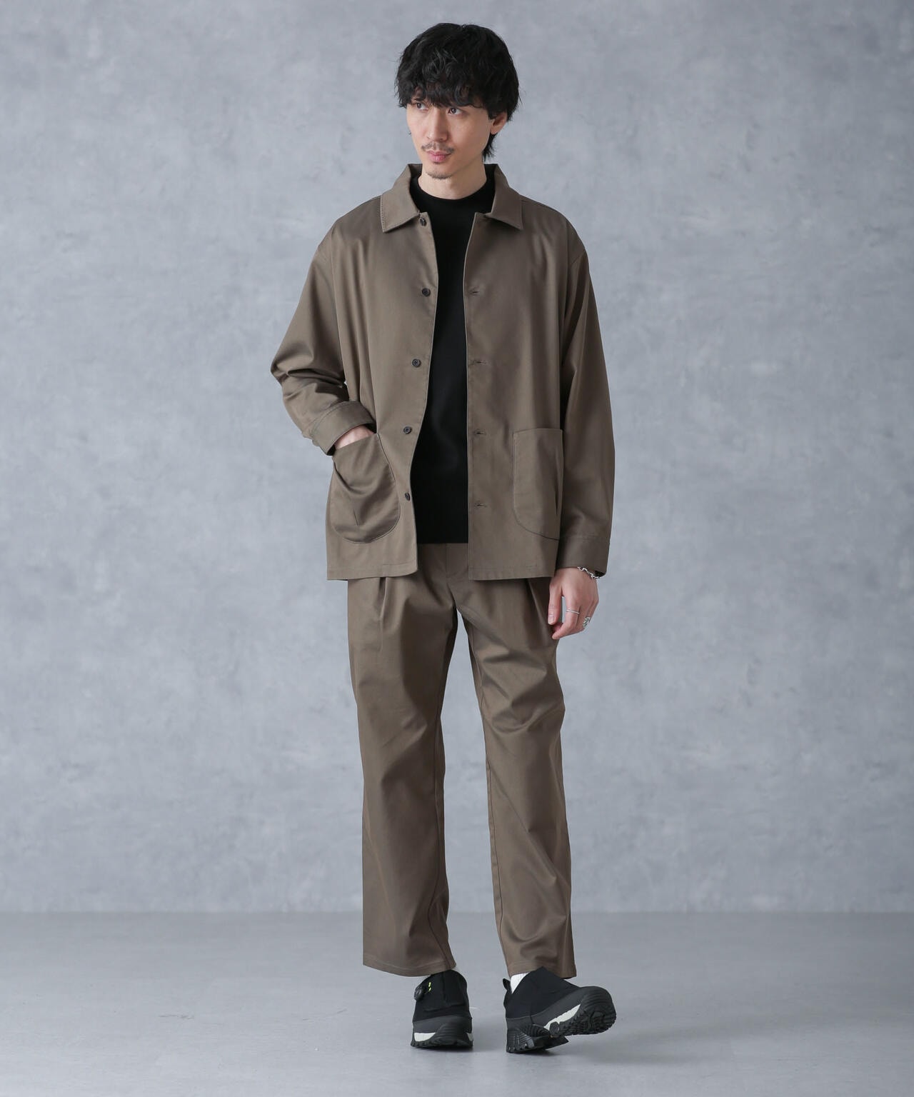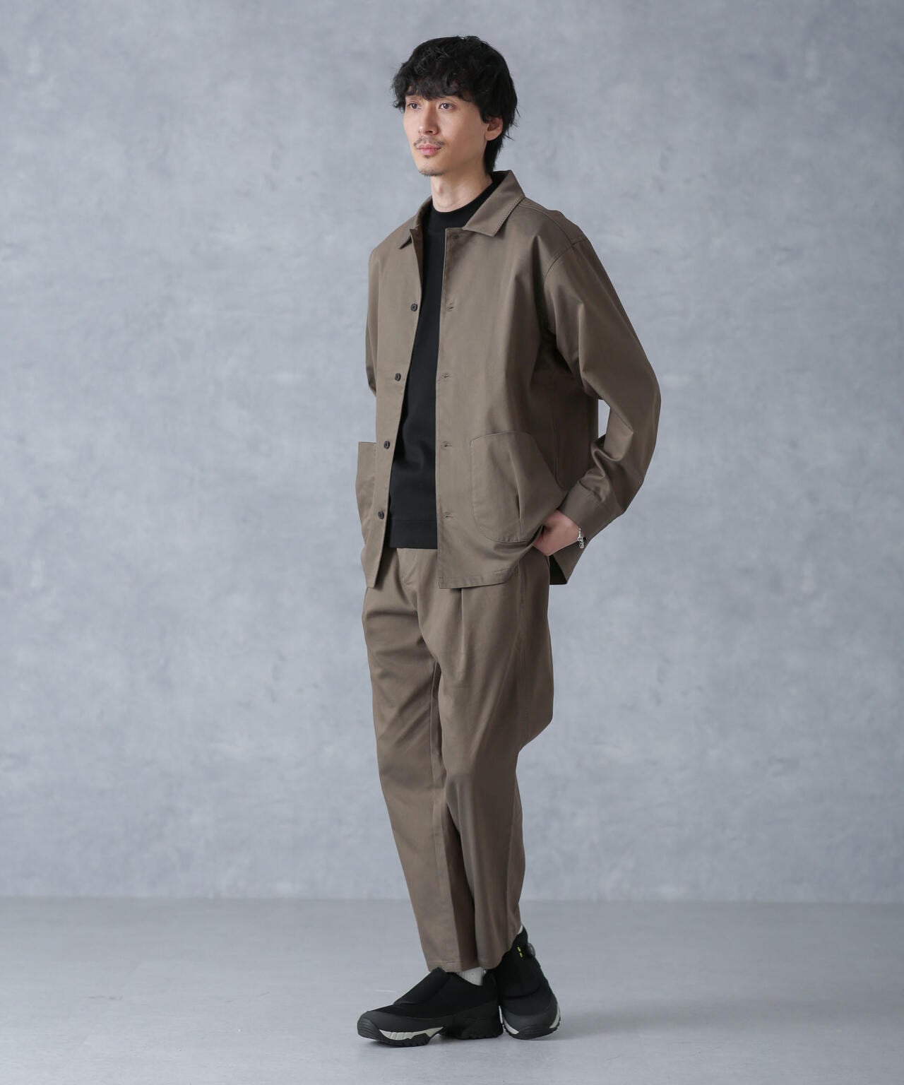 ・同素材のジャケットとのセットアップスタイルもおすすめ