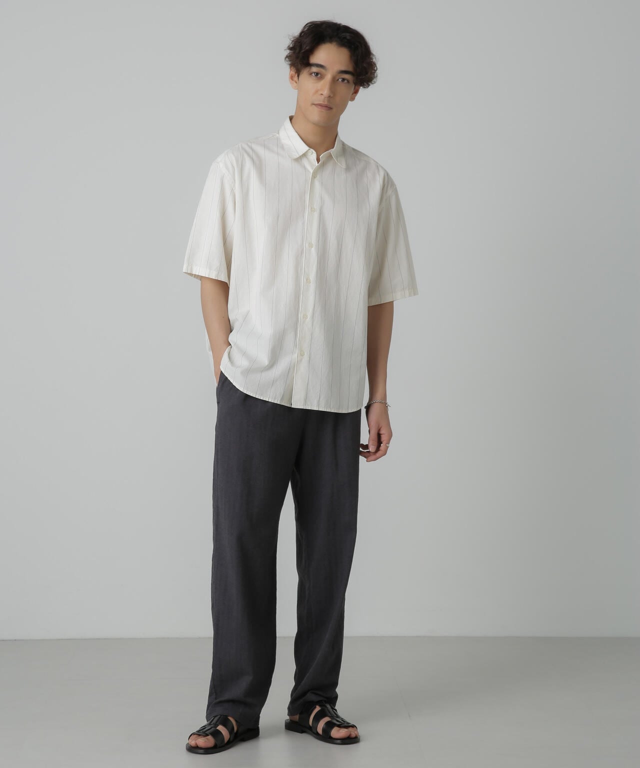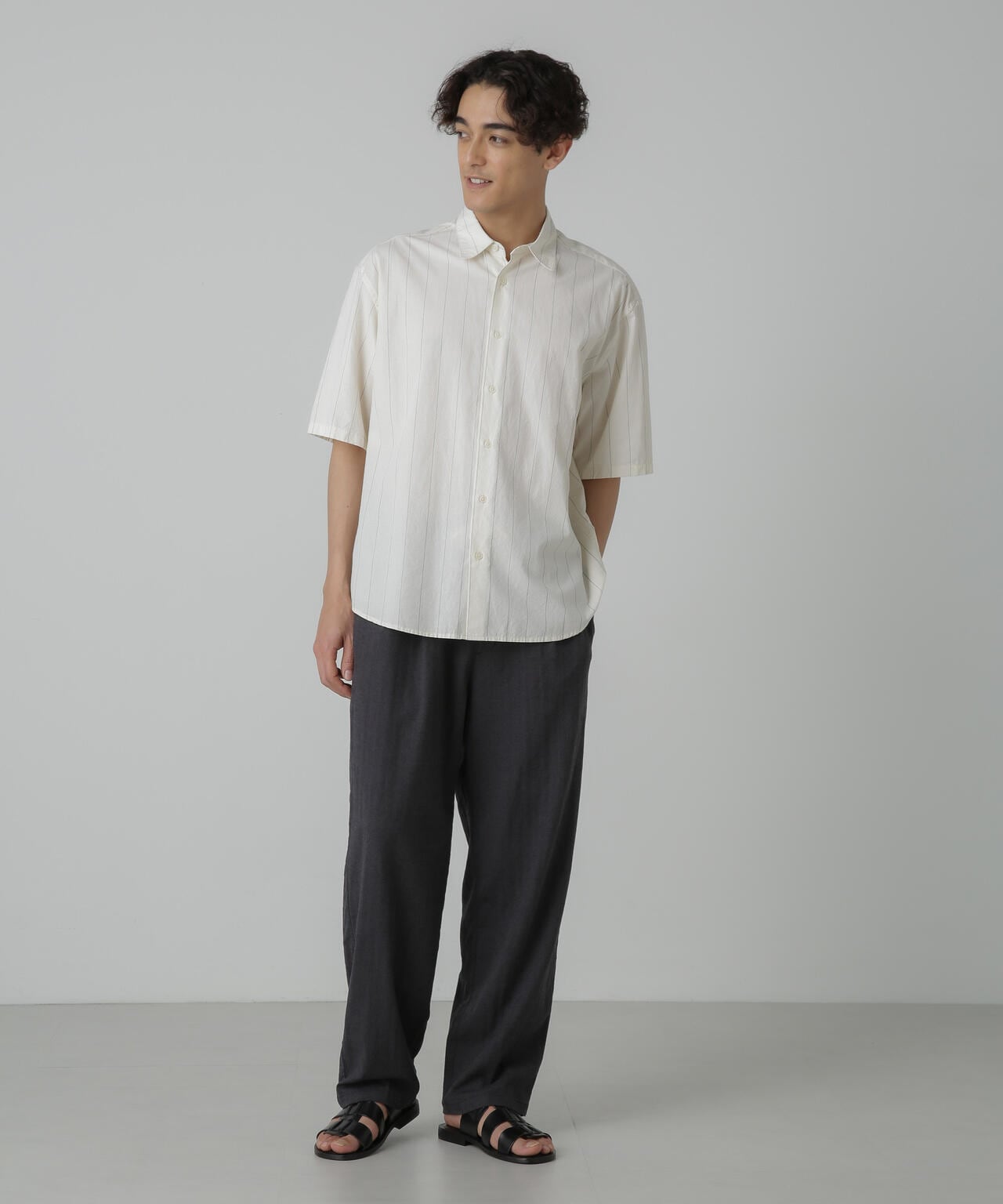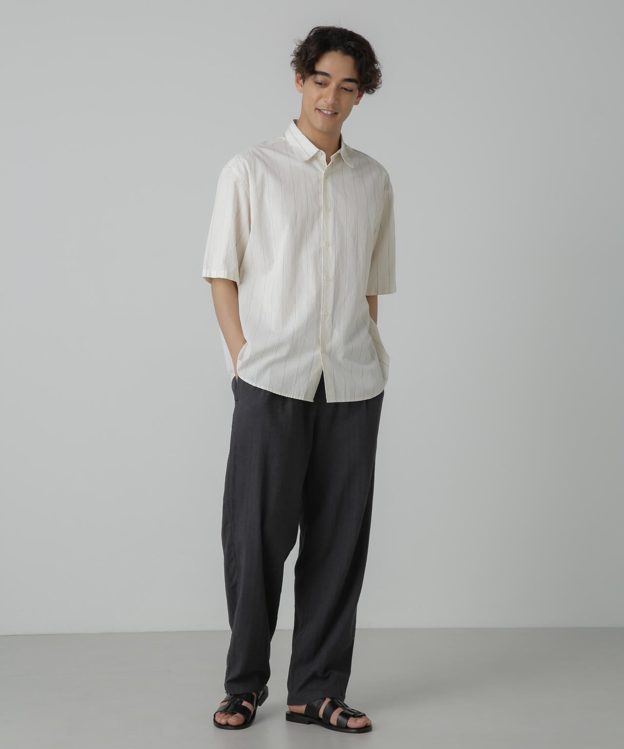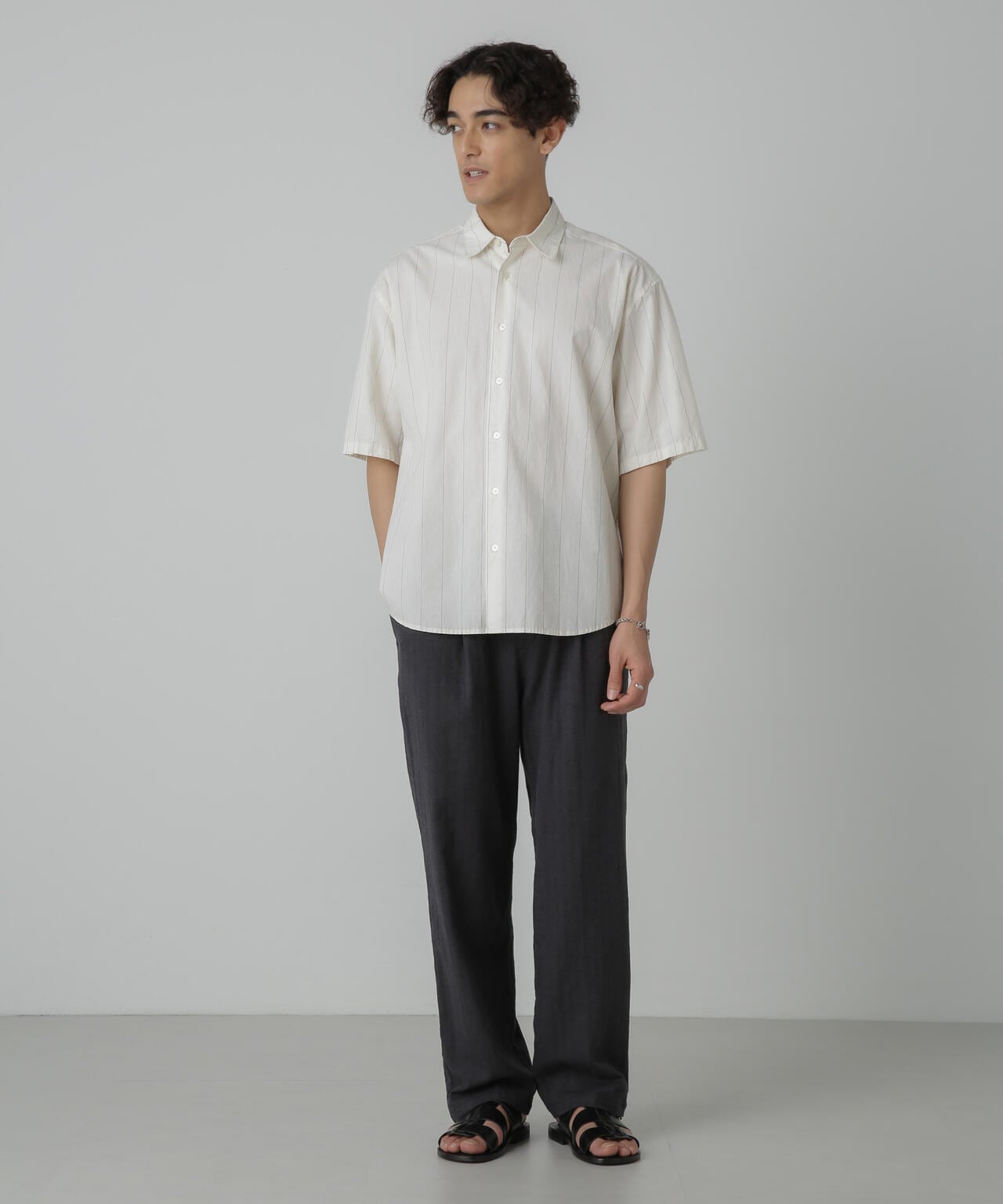 6684121211 リネンブレンドピンストライプワイドカラーシャツ(セットアップ可)