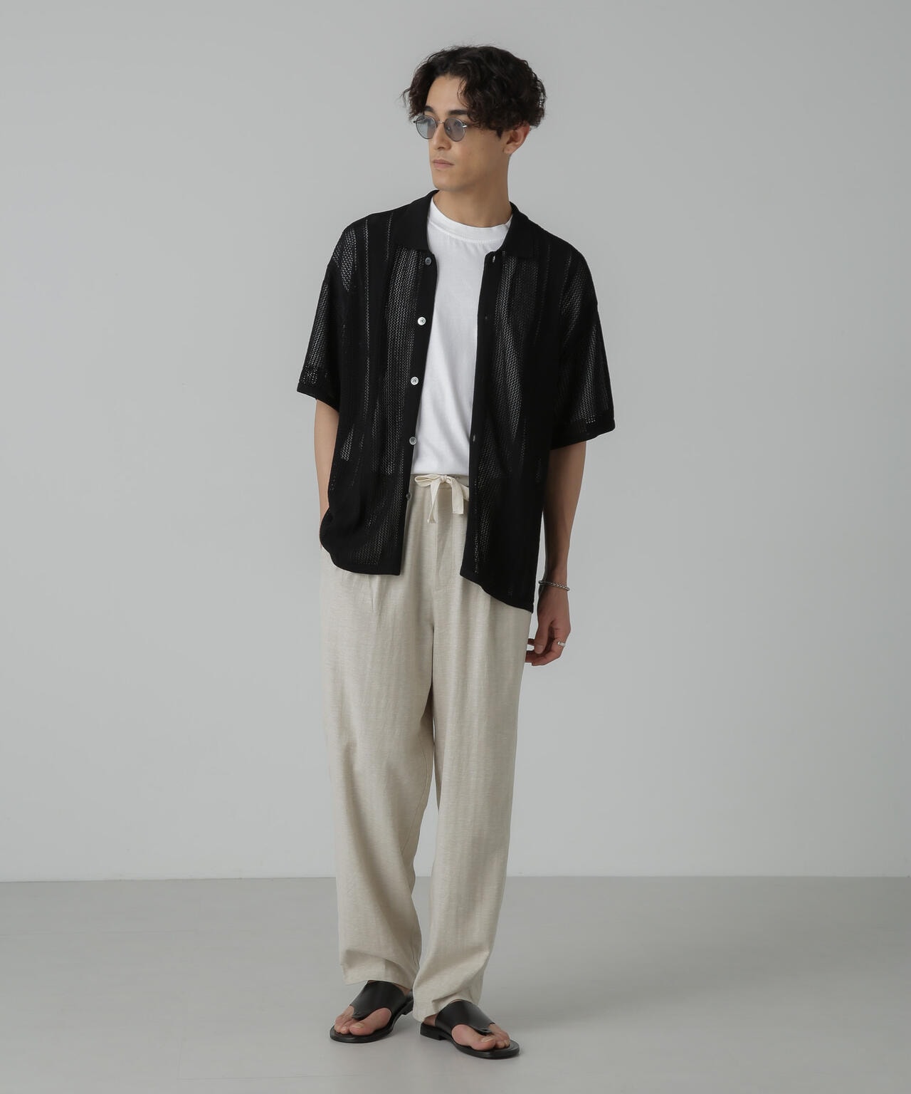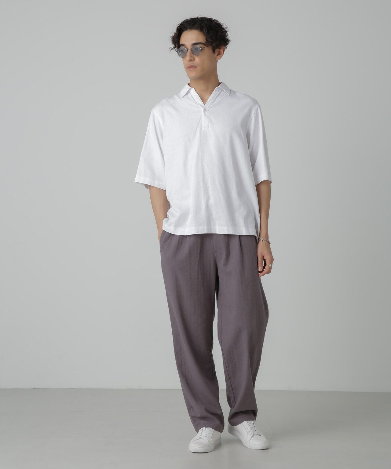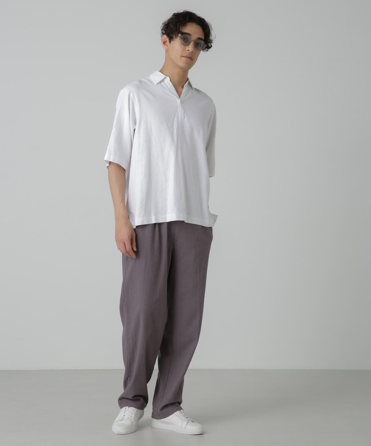 リネンブレンドイージーヘリンボンリラックスパンツ