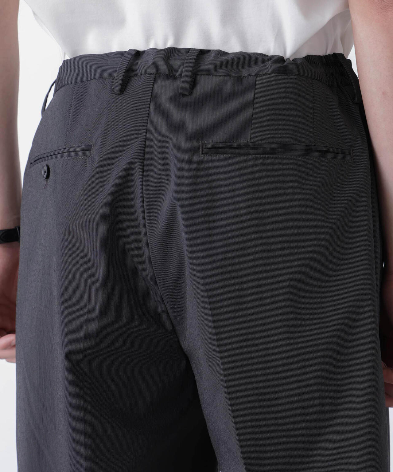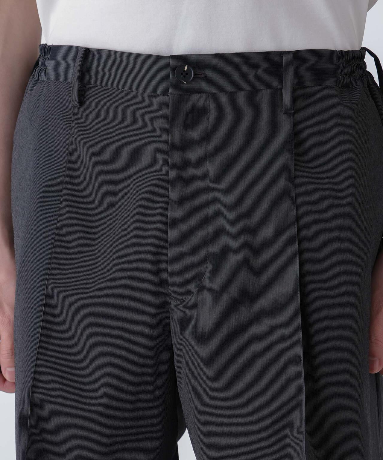 ゆとりのあるシルエットでナイロン素材を使用した、ライトナイロンピンストライプパンツ。
